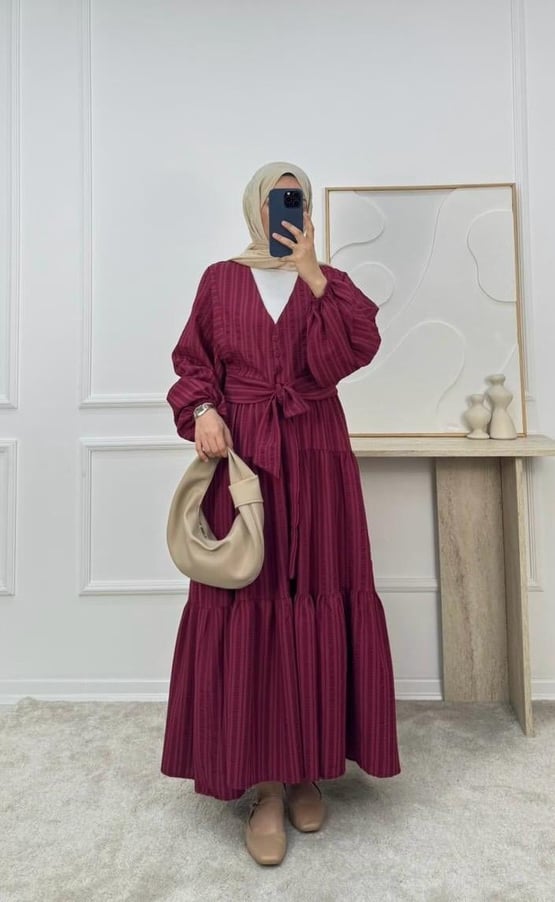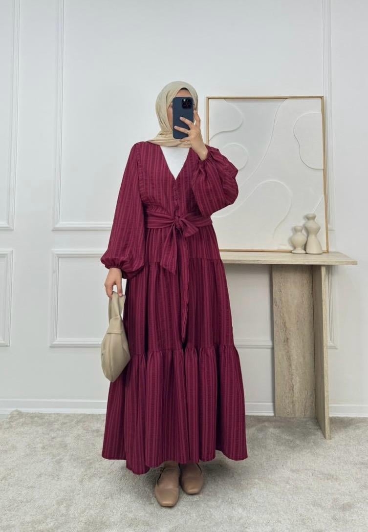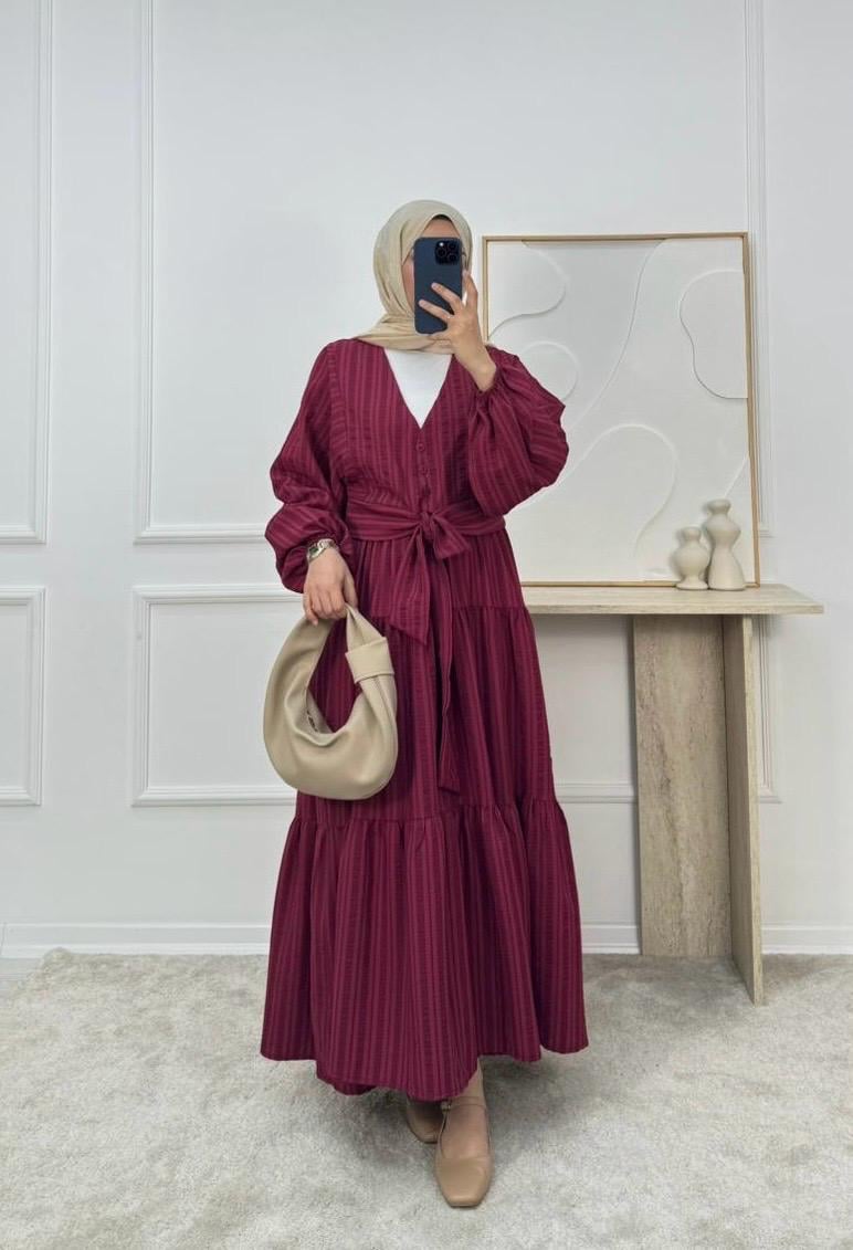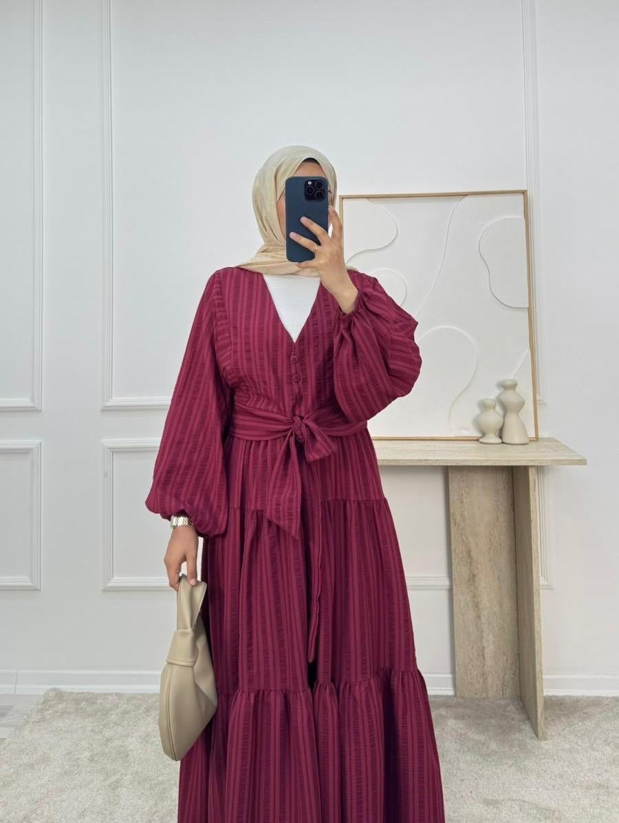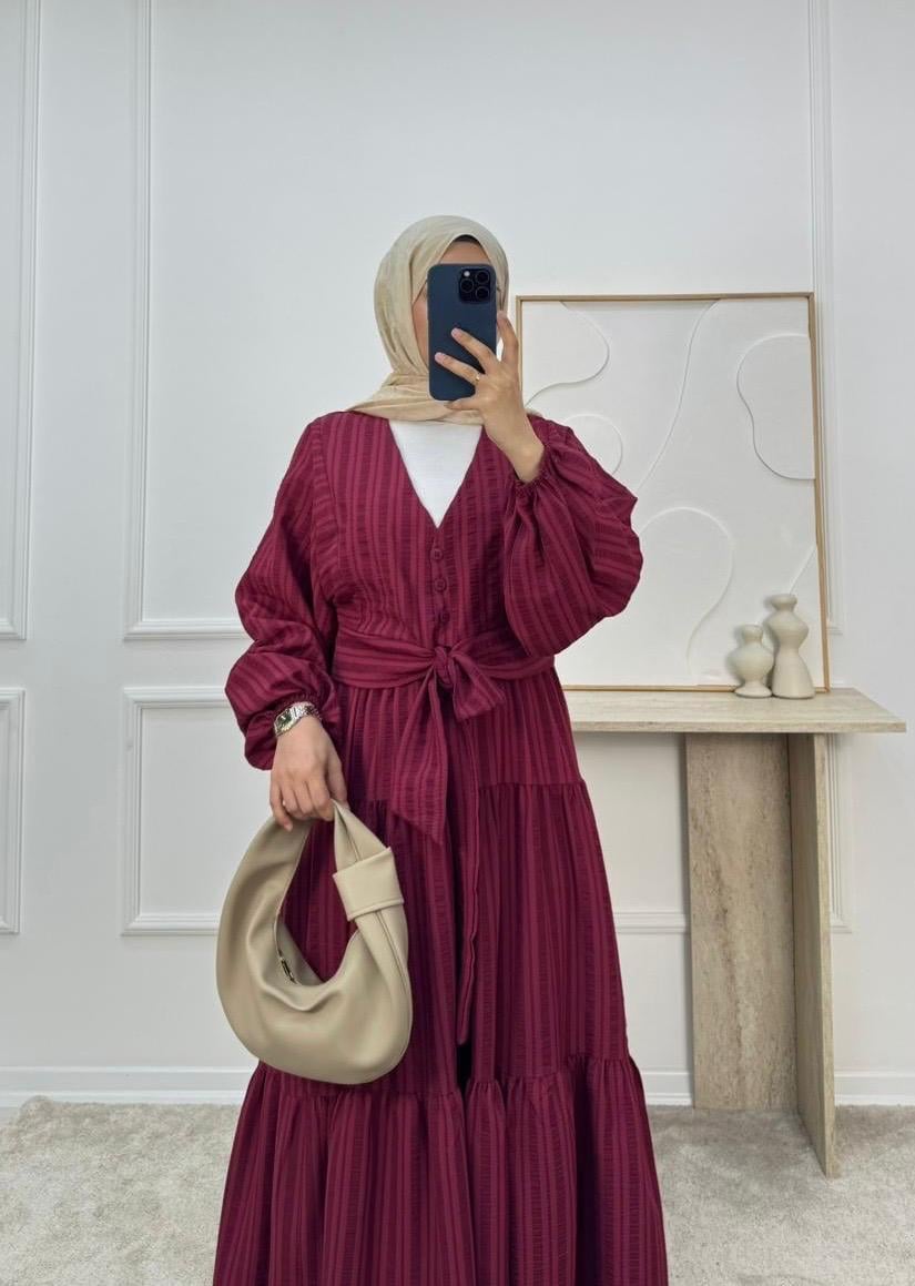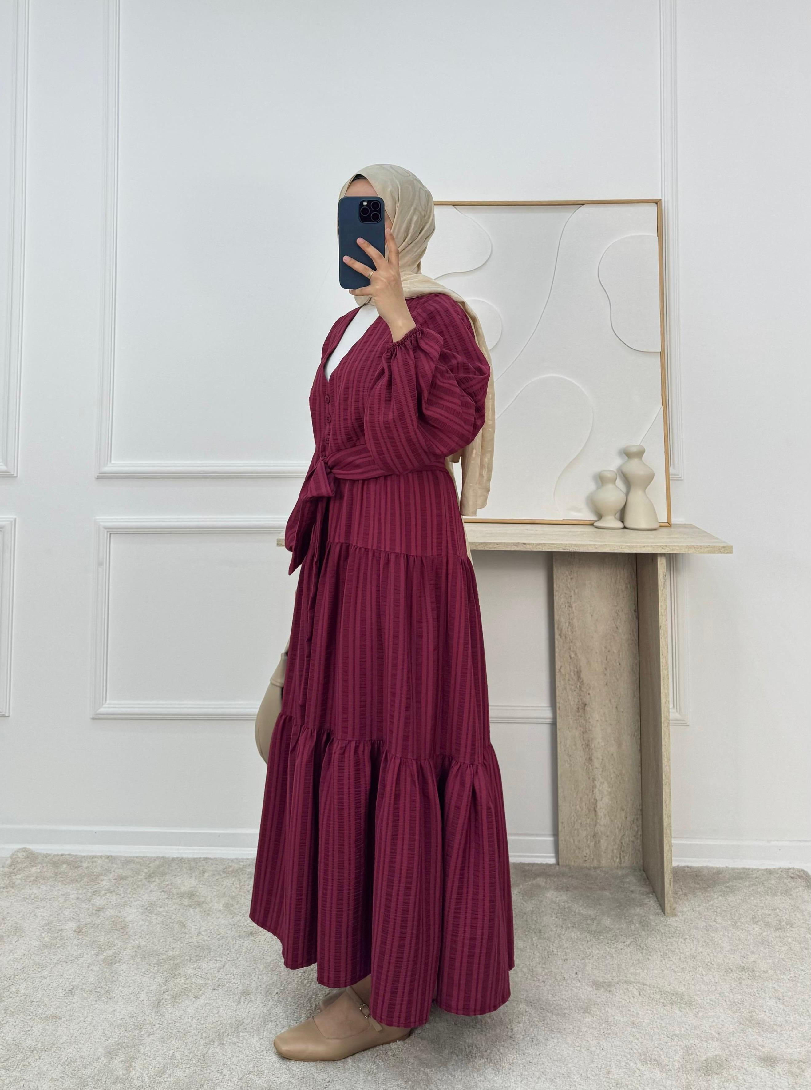 2113-maria kumaş önü bağlamalı etekli takım-bordo (2113)