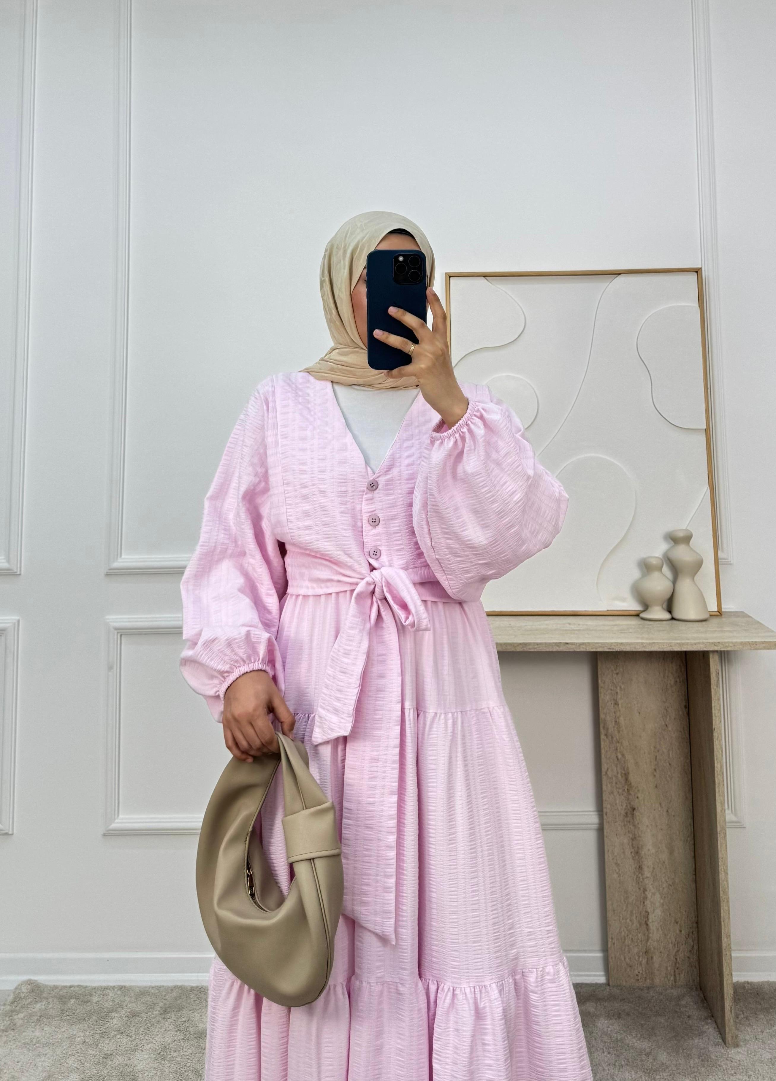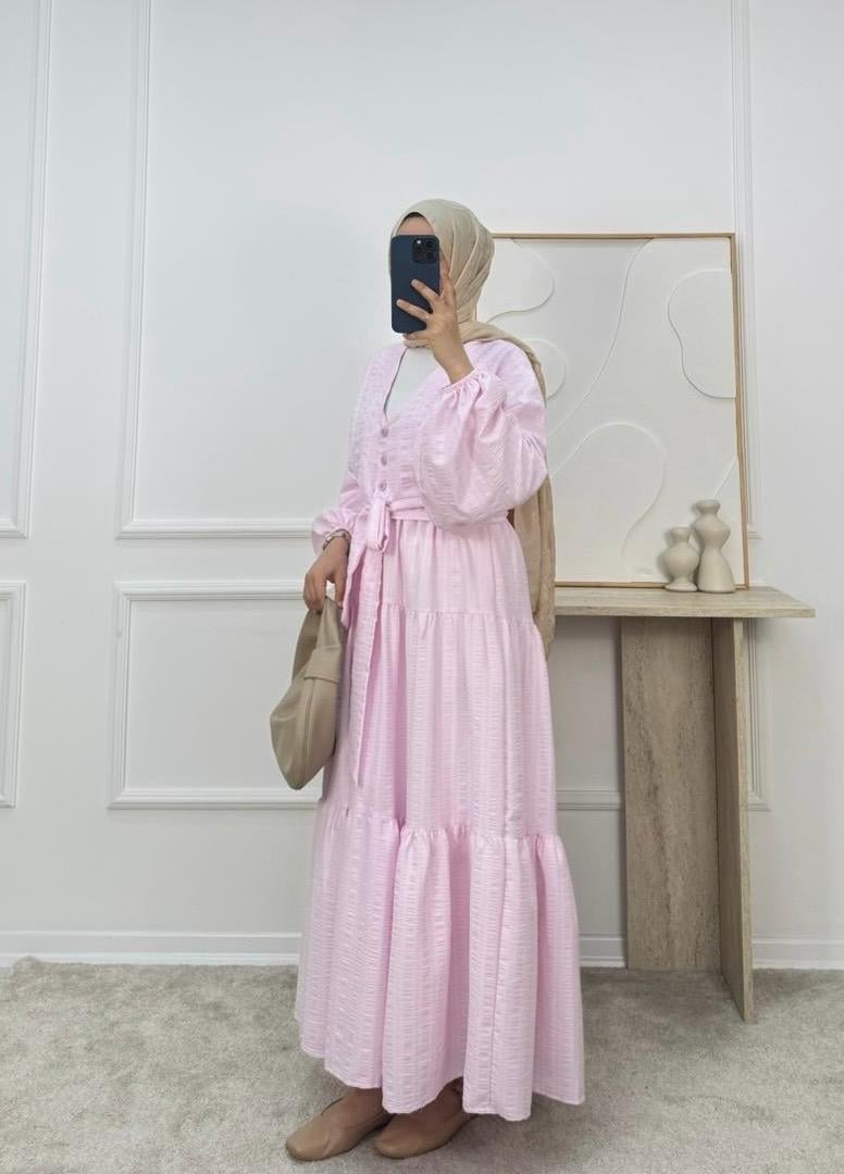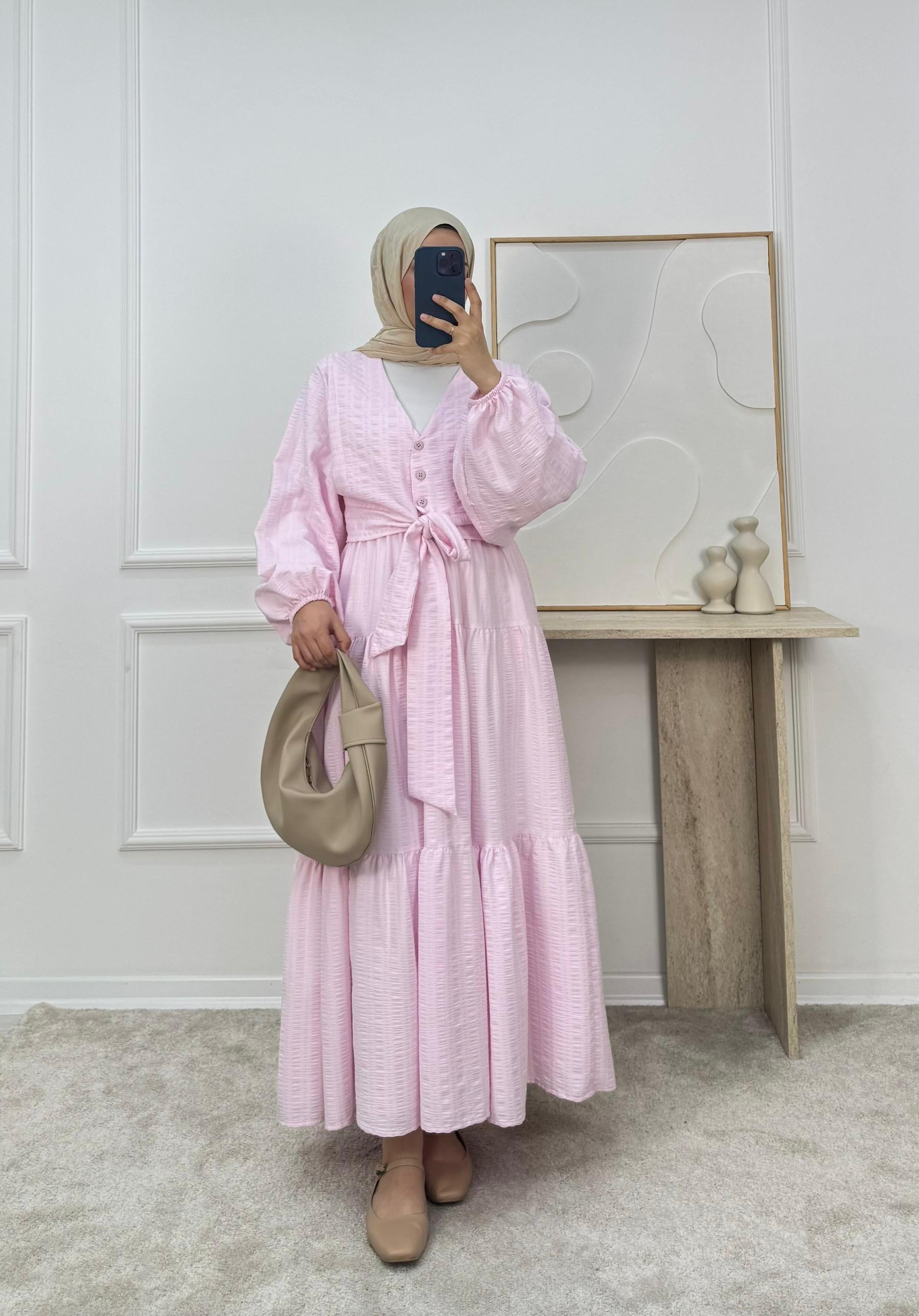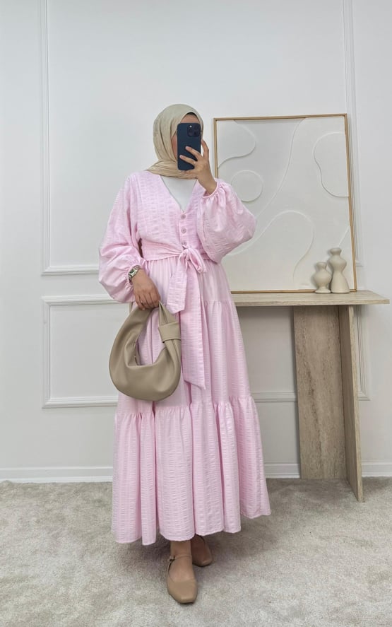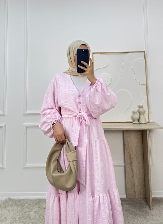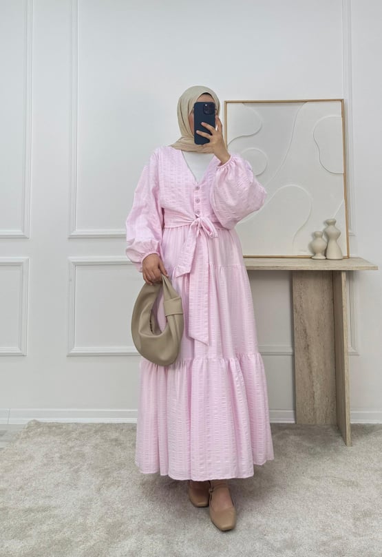 2113-maria kumaş önü bağlamalı etekli takım-pembe (2113)