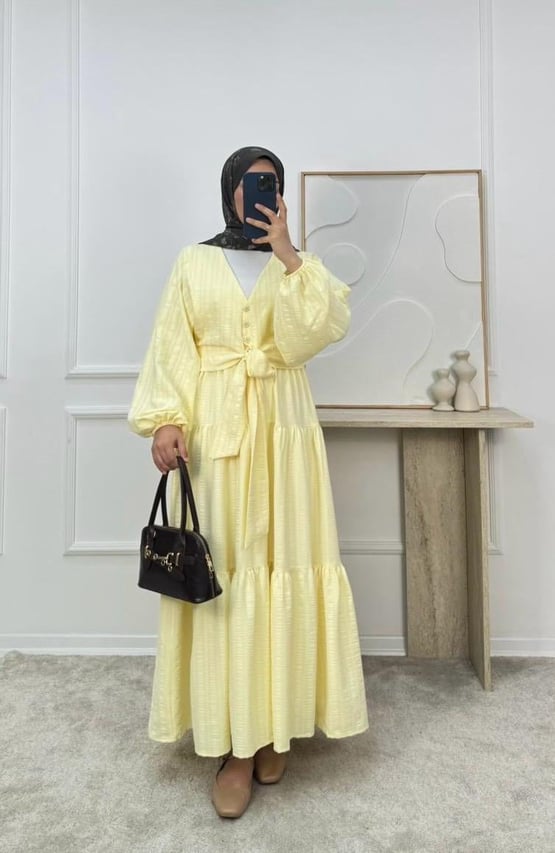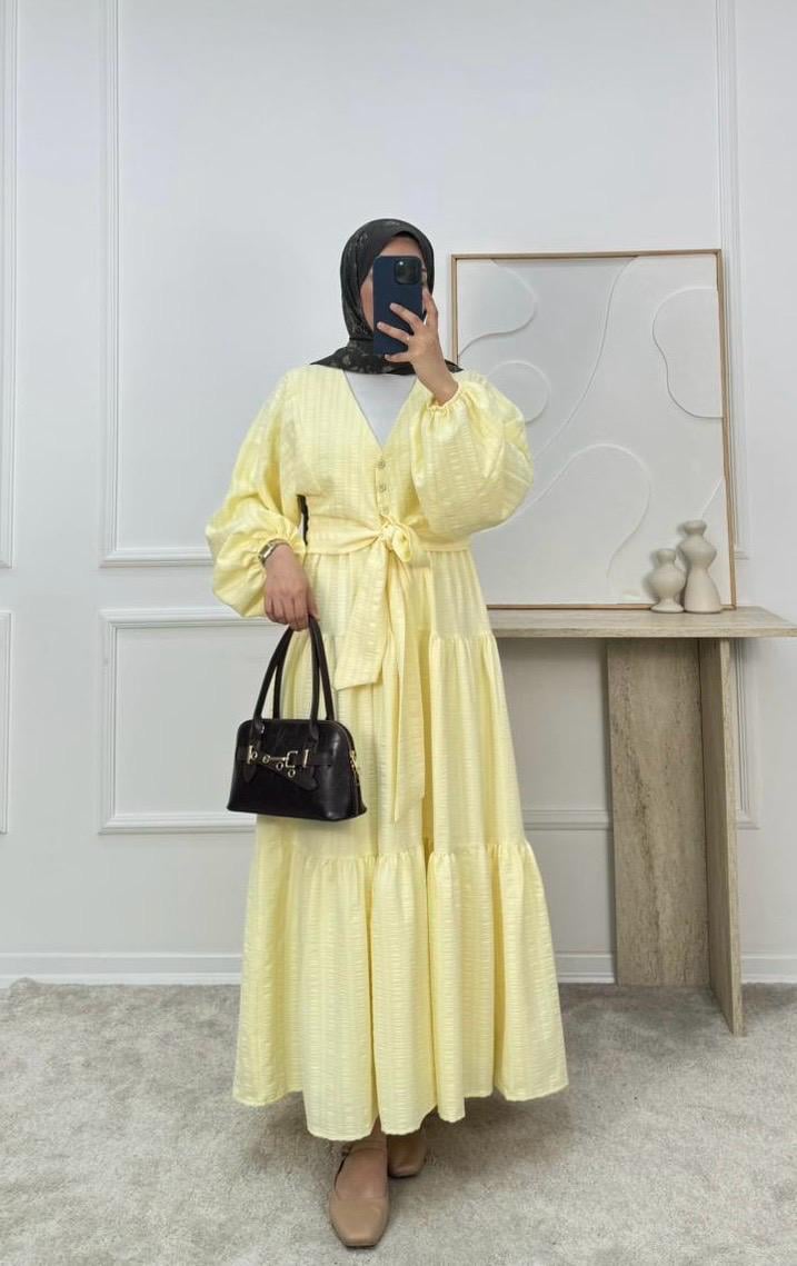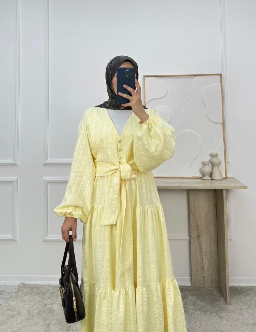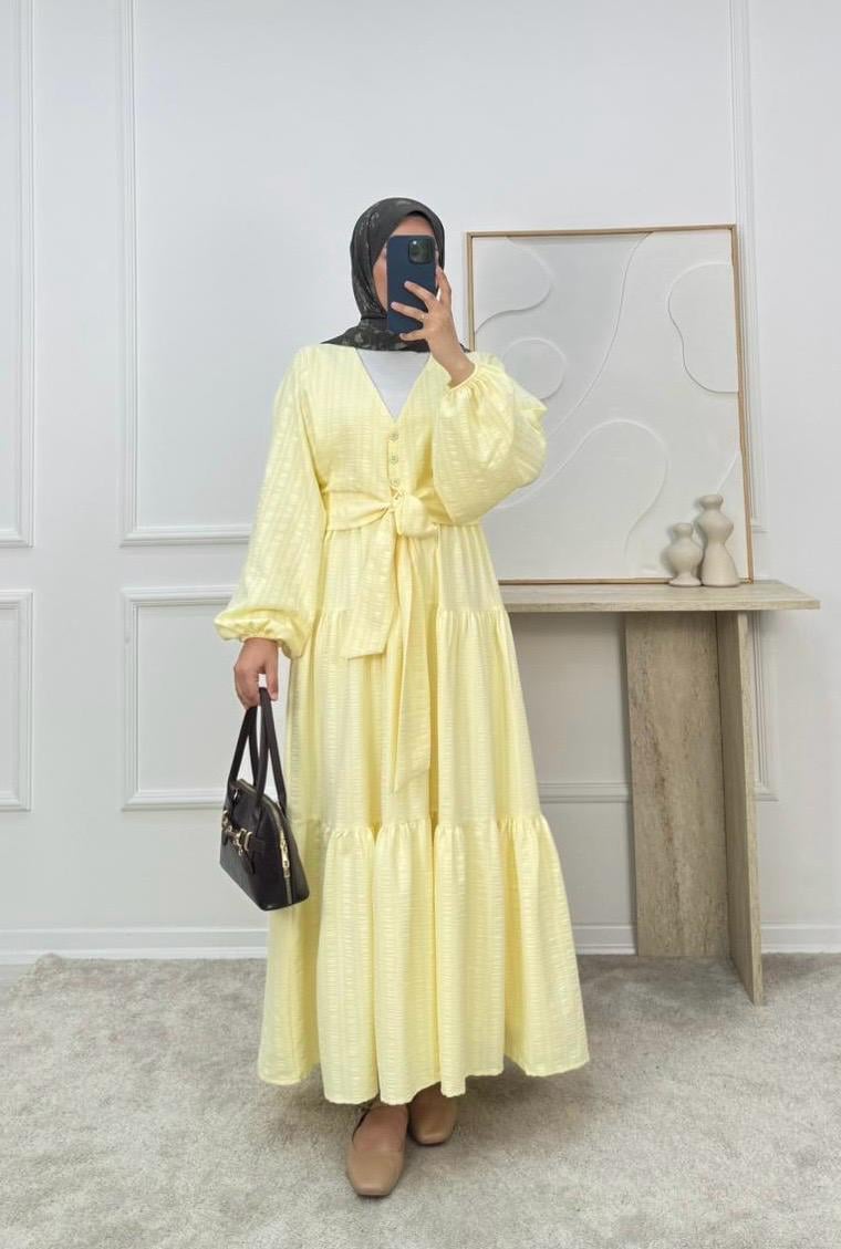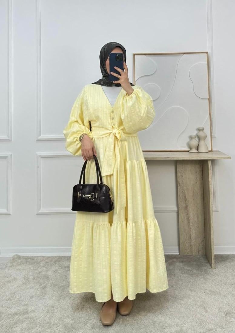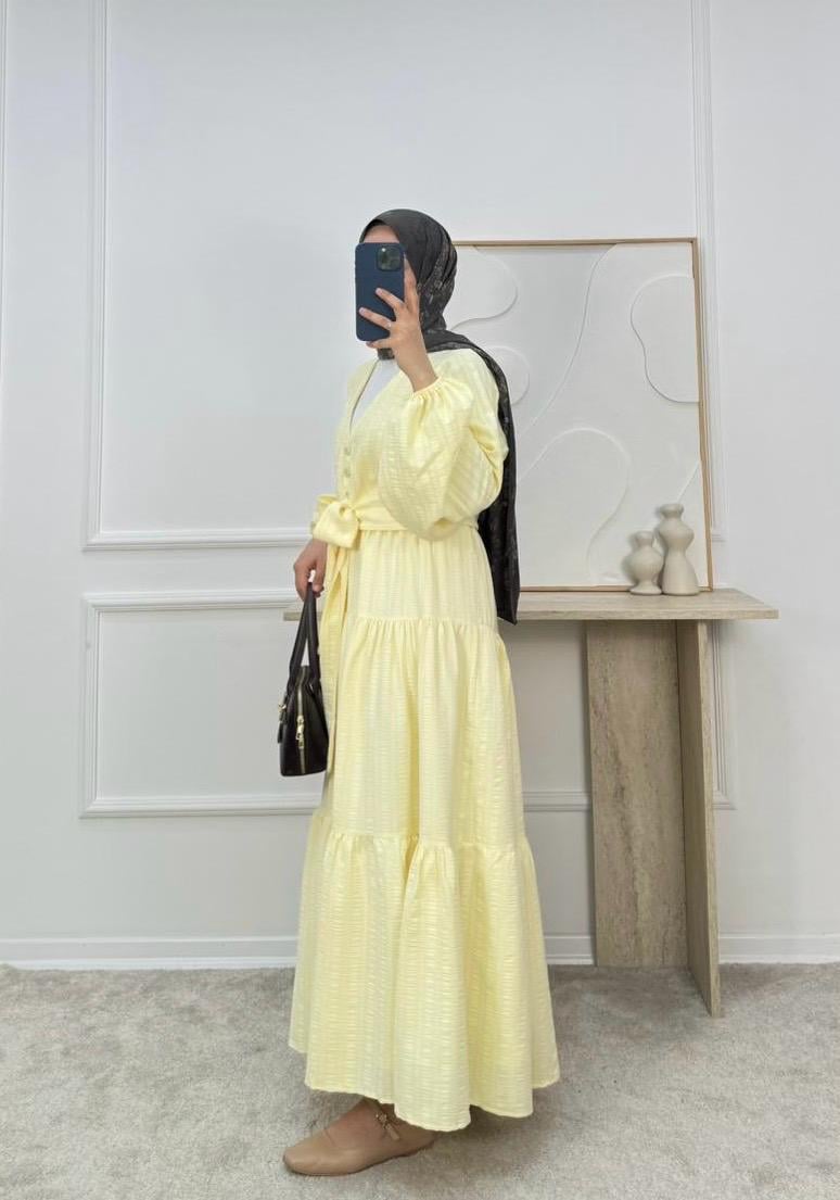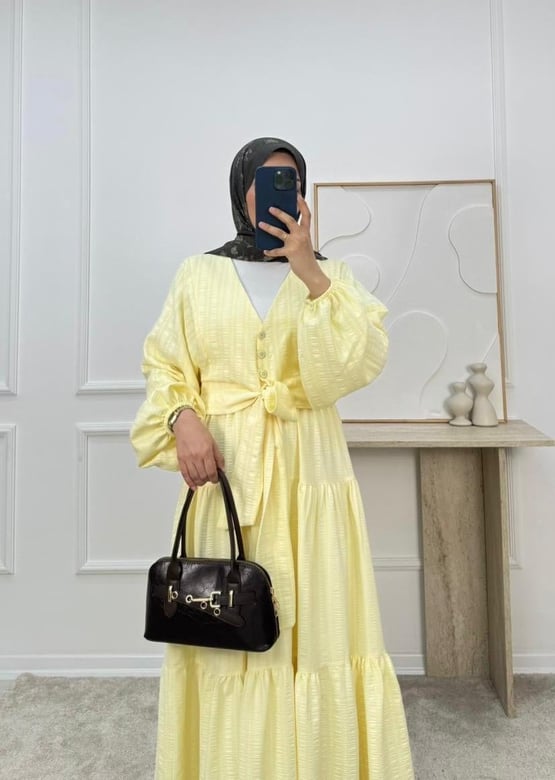 2113-maria kumaş önü bağlamalı etekli takım-sarı (2113)