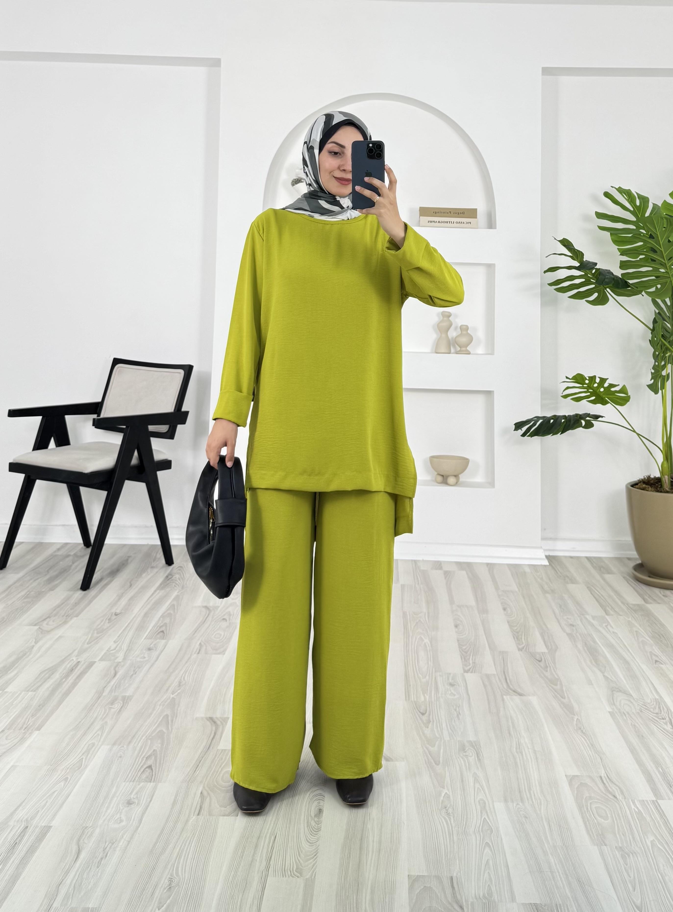 2126-ayrobin kumaş-düz model ikili takım-yag yeşili (2126)