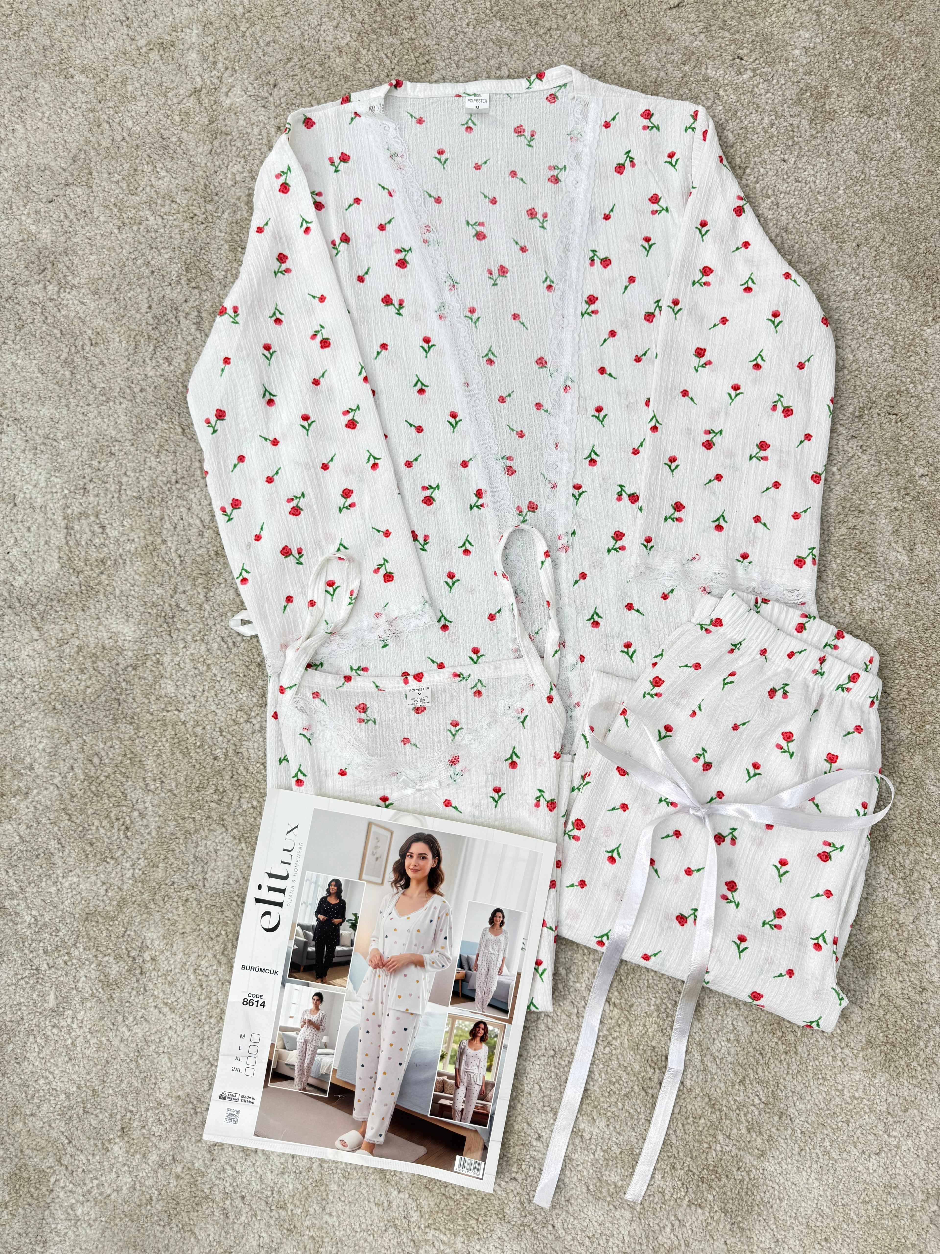 çilek kumaş kuşaklı gömlek