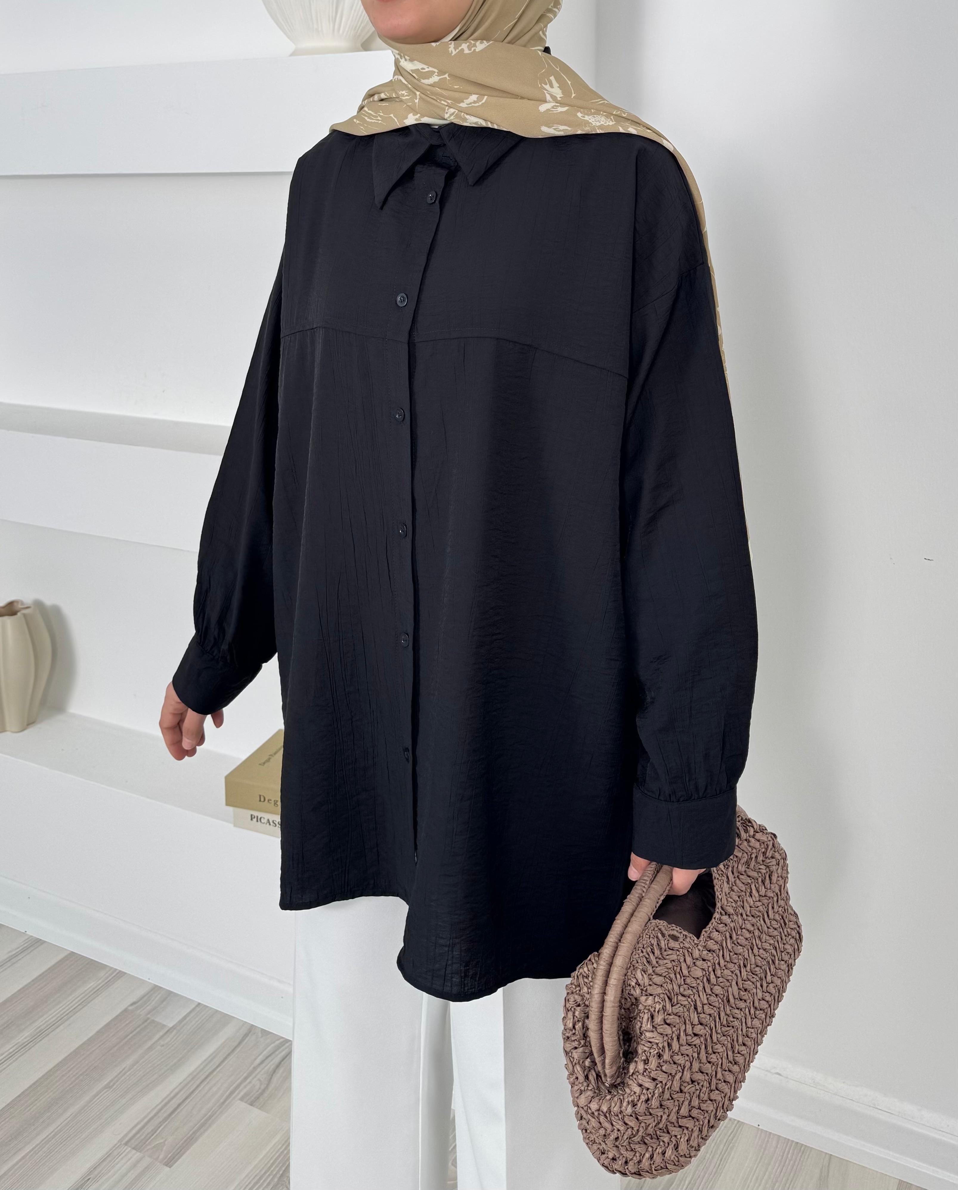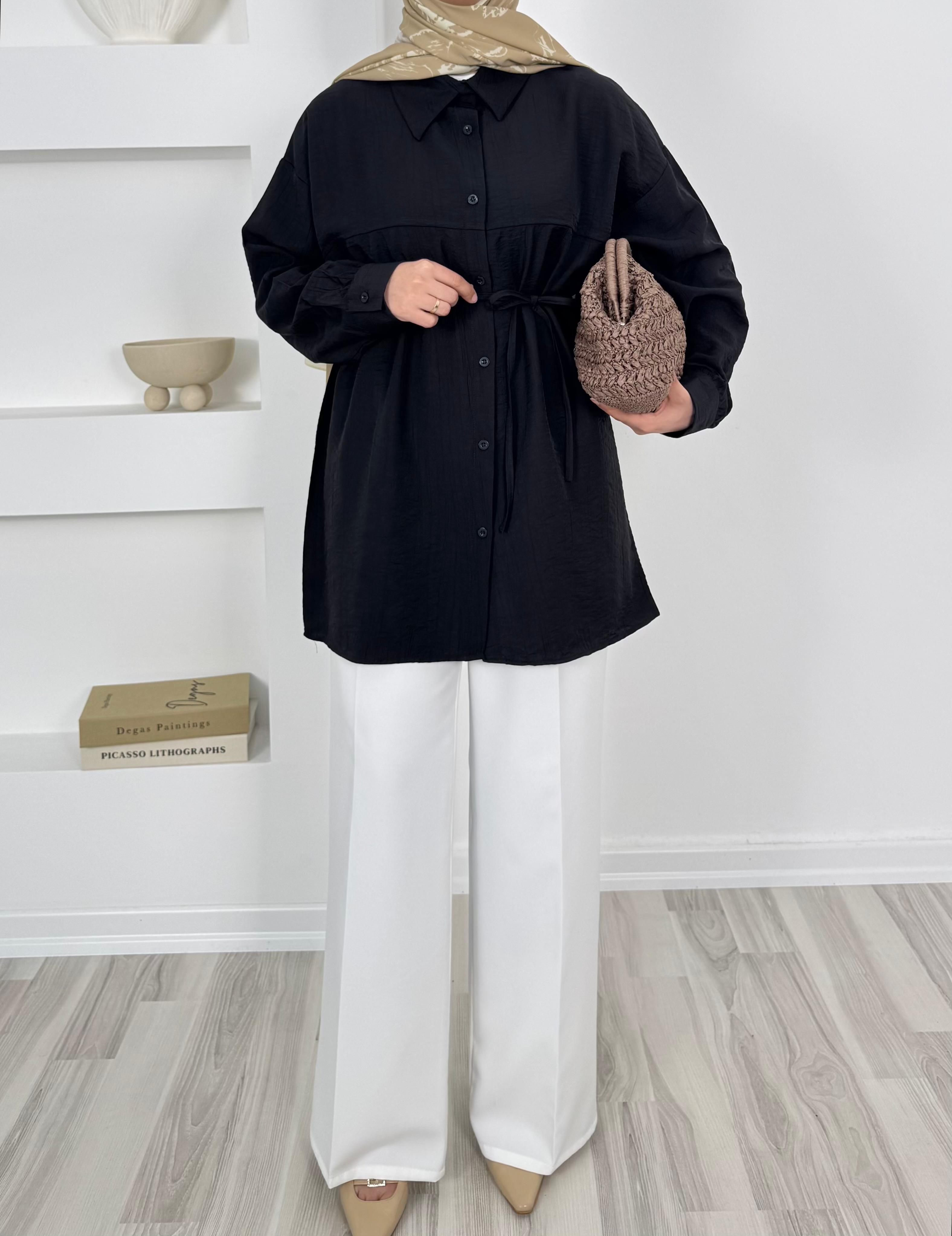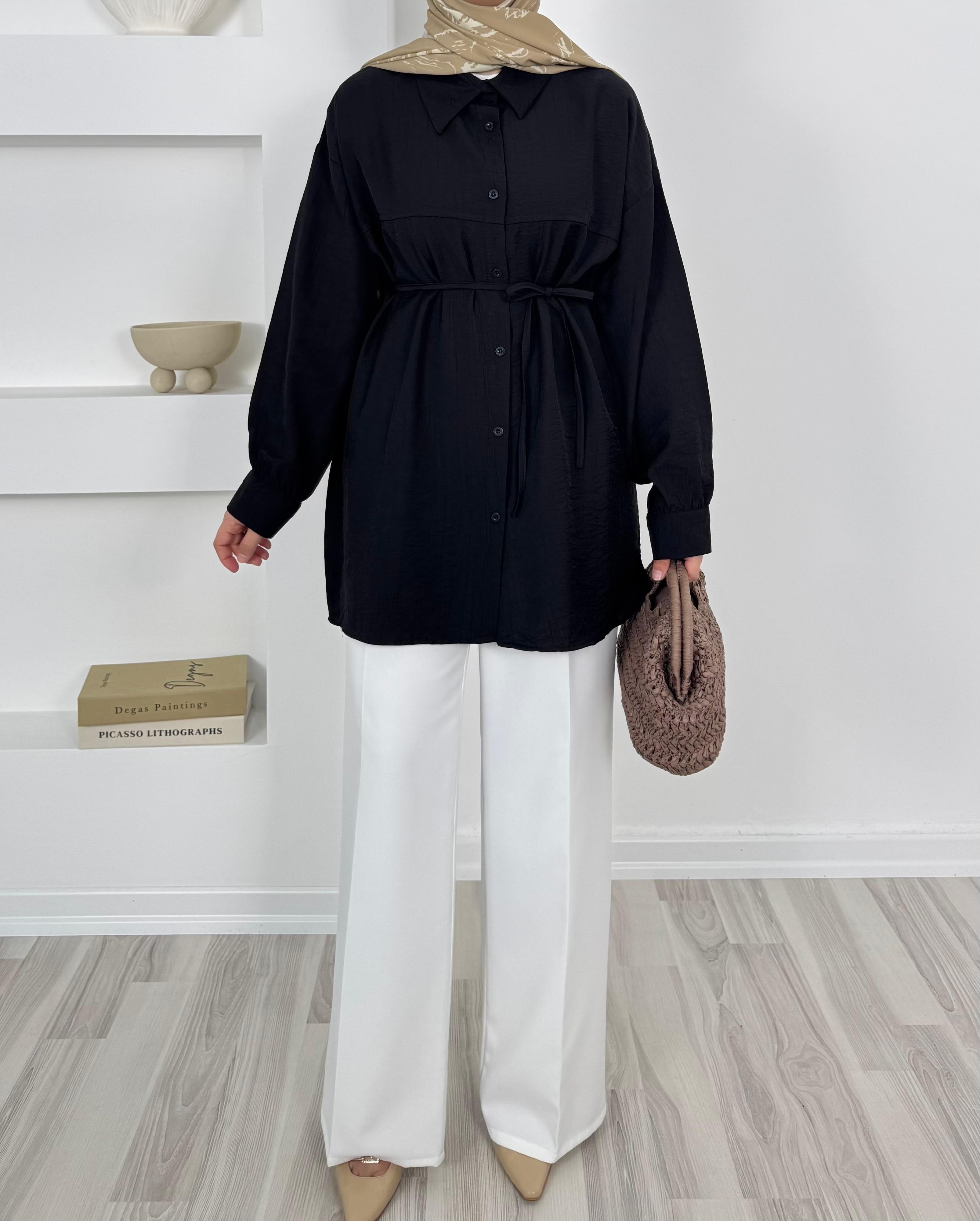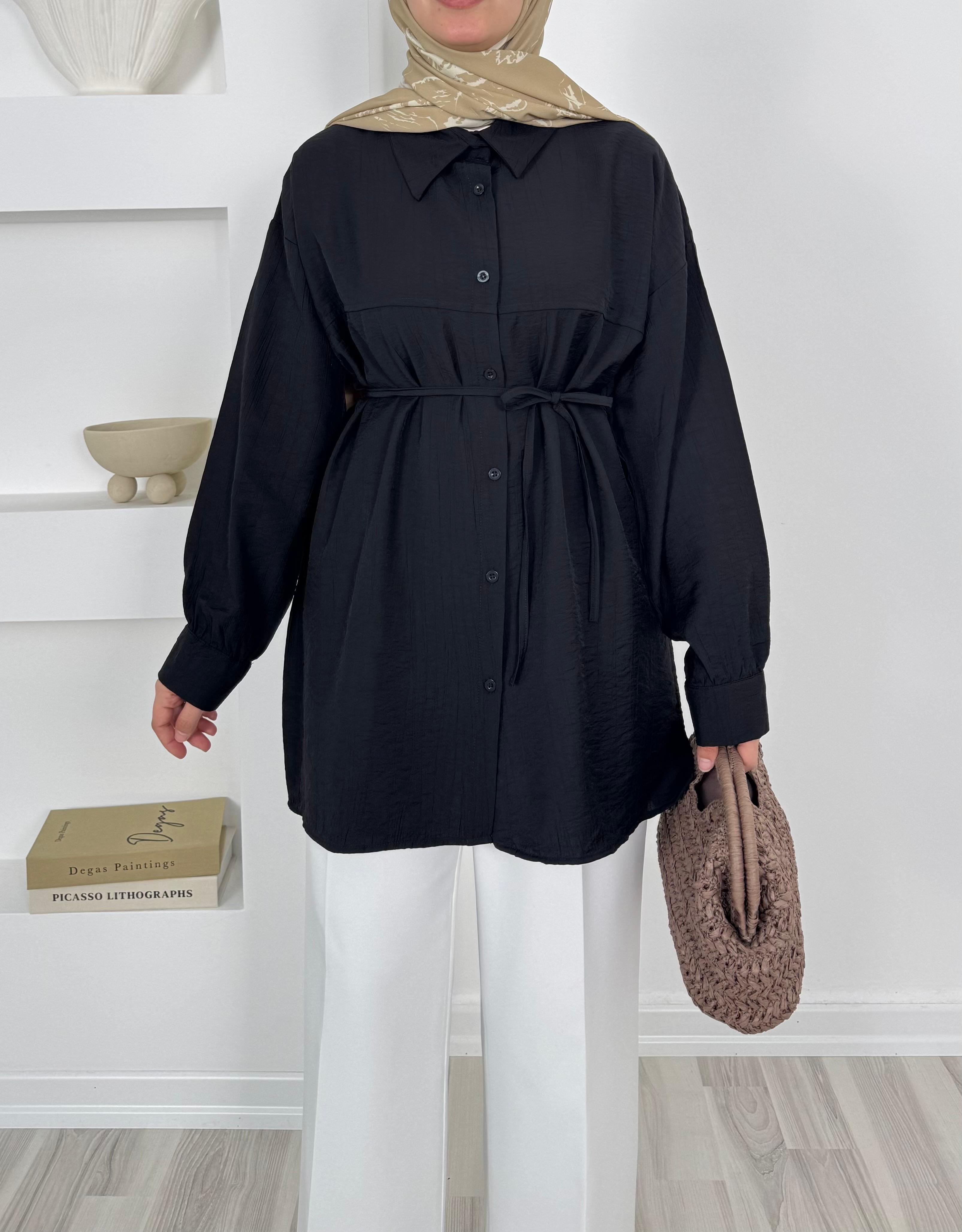 2128-çilek kumaş kuşaklı gömlek - siyah (2128)