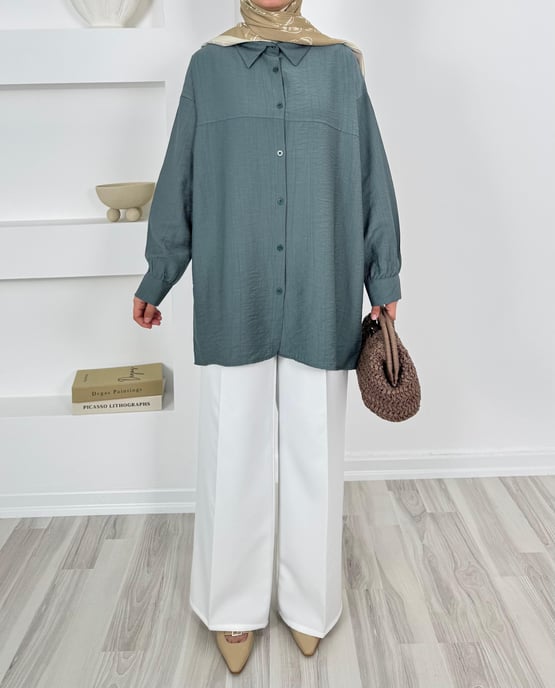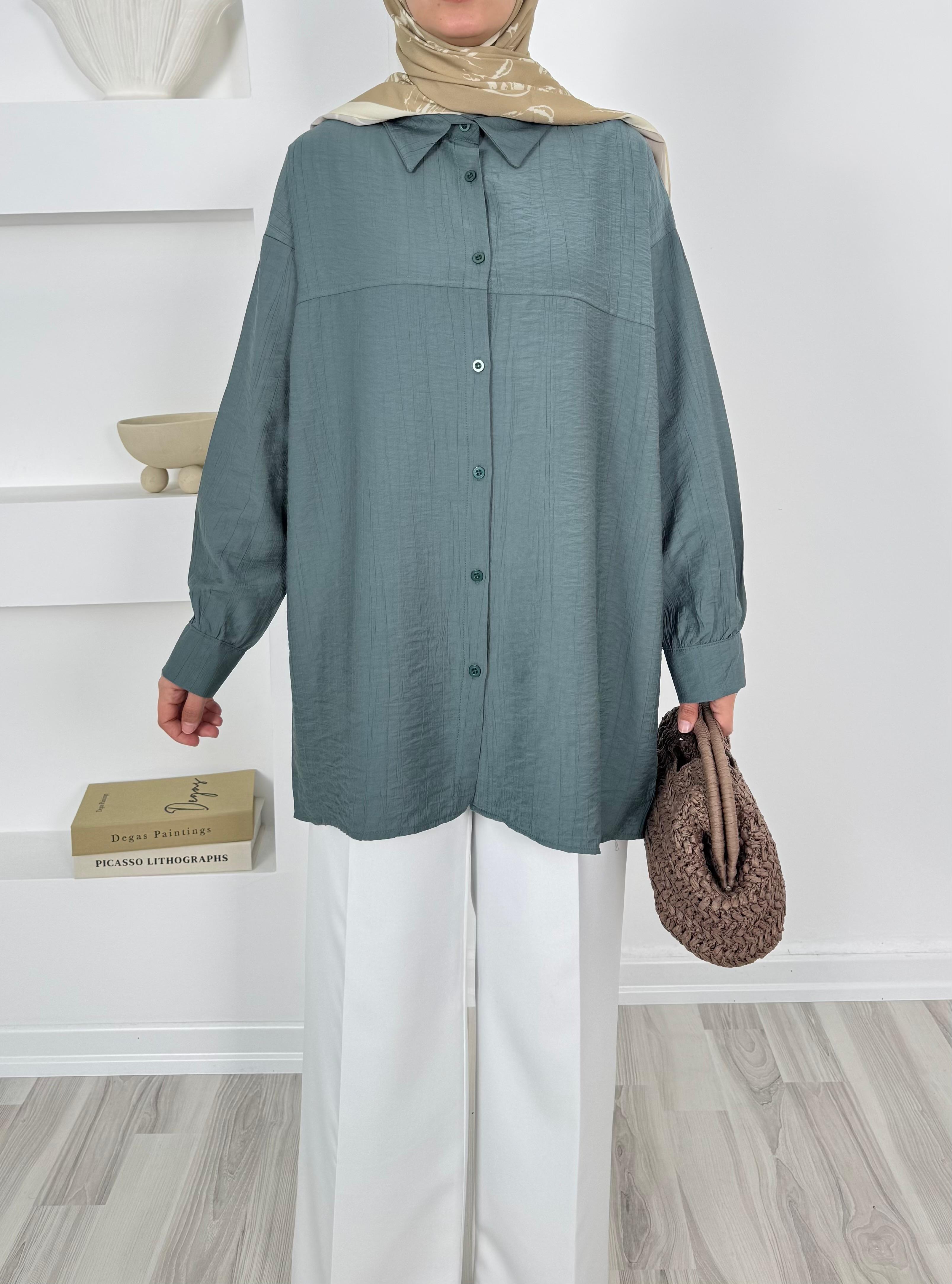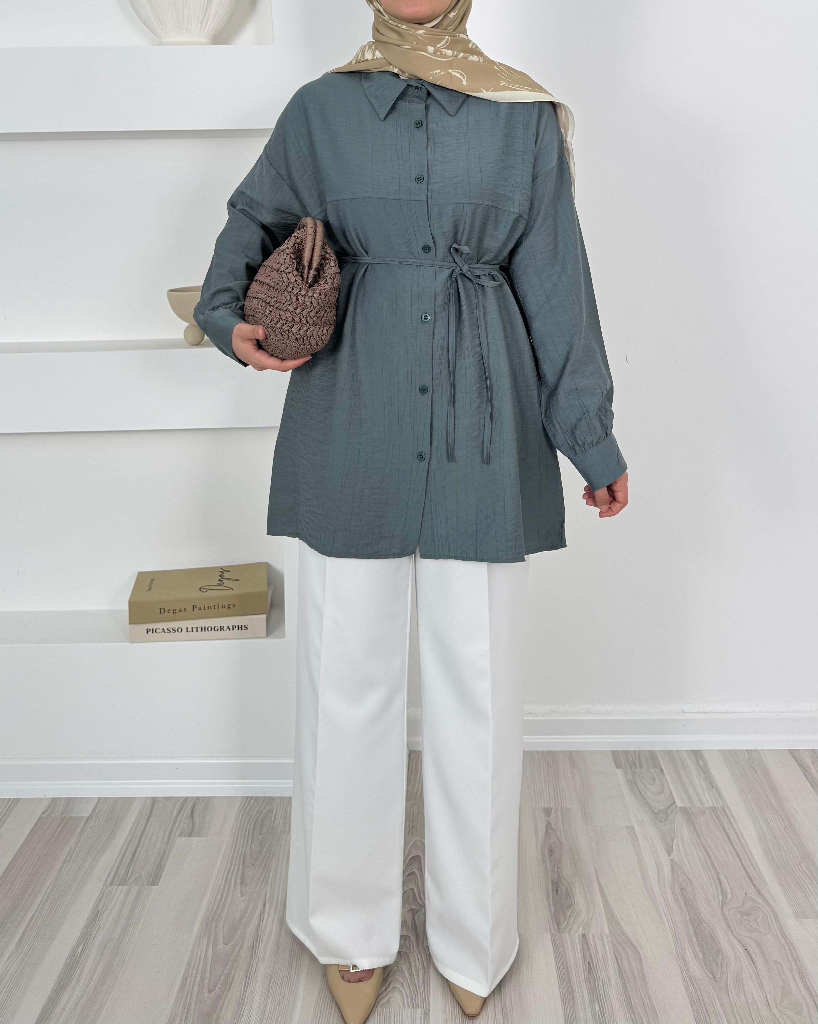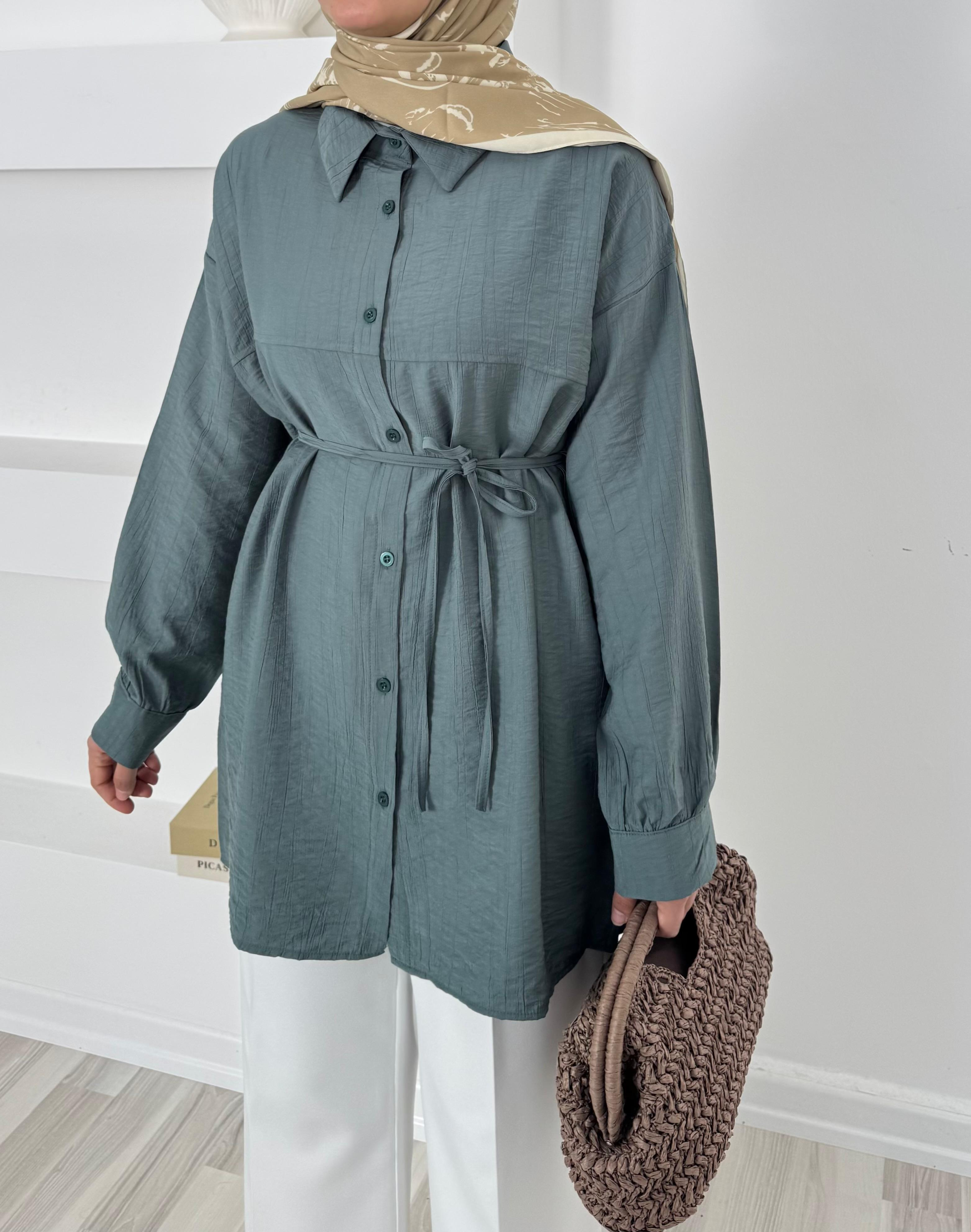 2128-çilek kumaş kuşaklı gömlek - yeşil (2128)