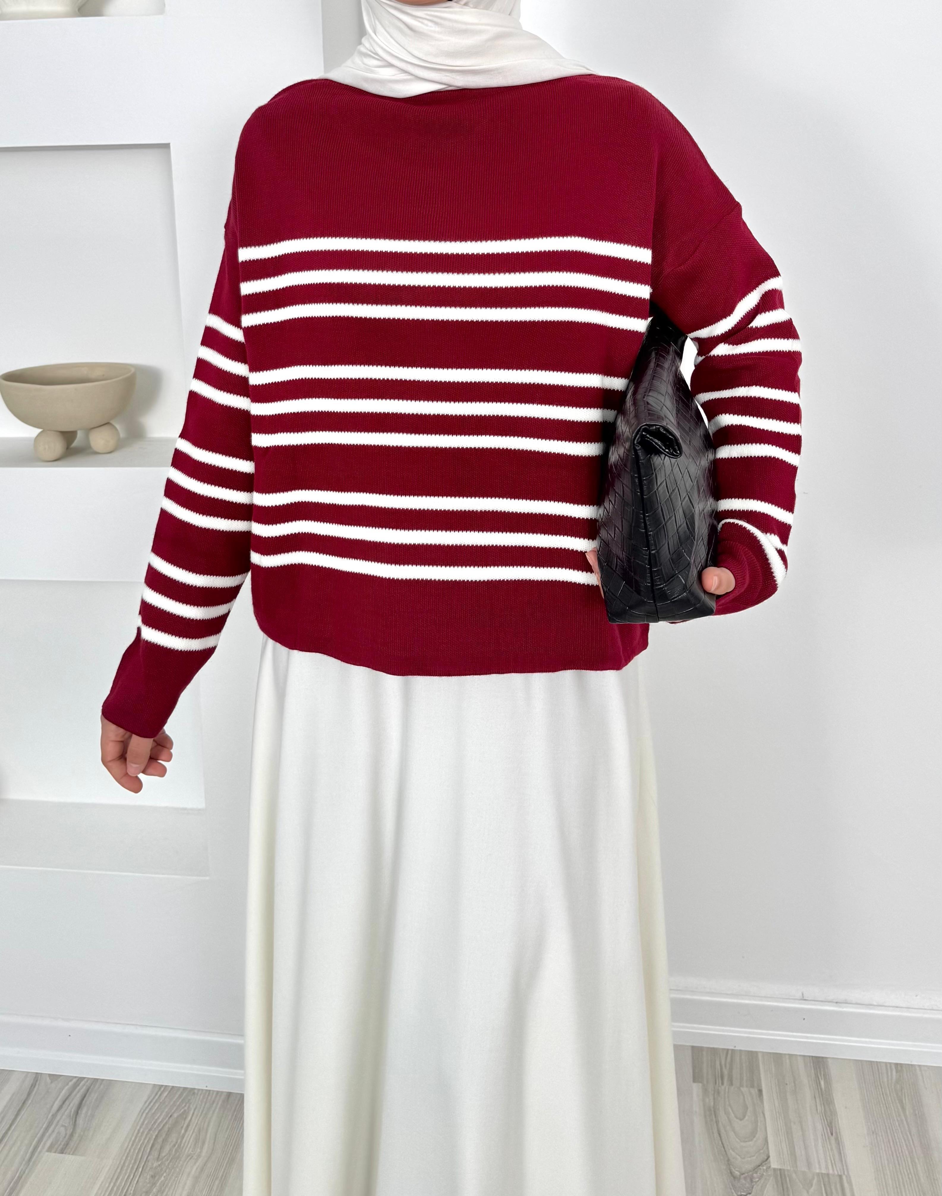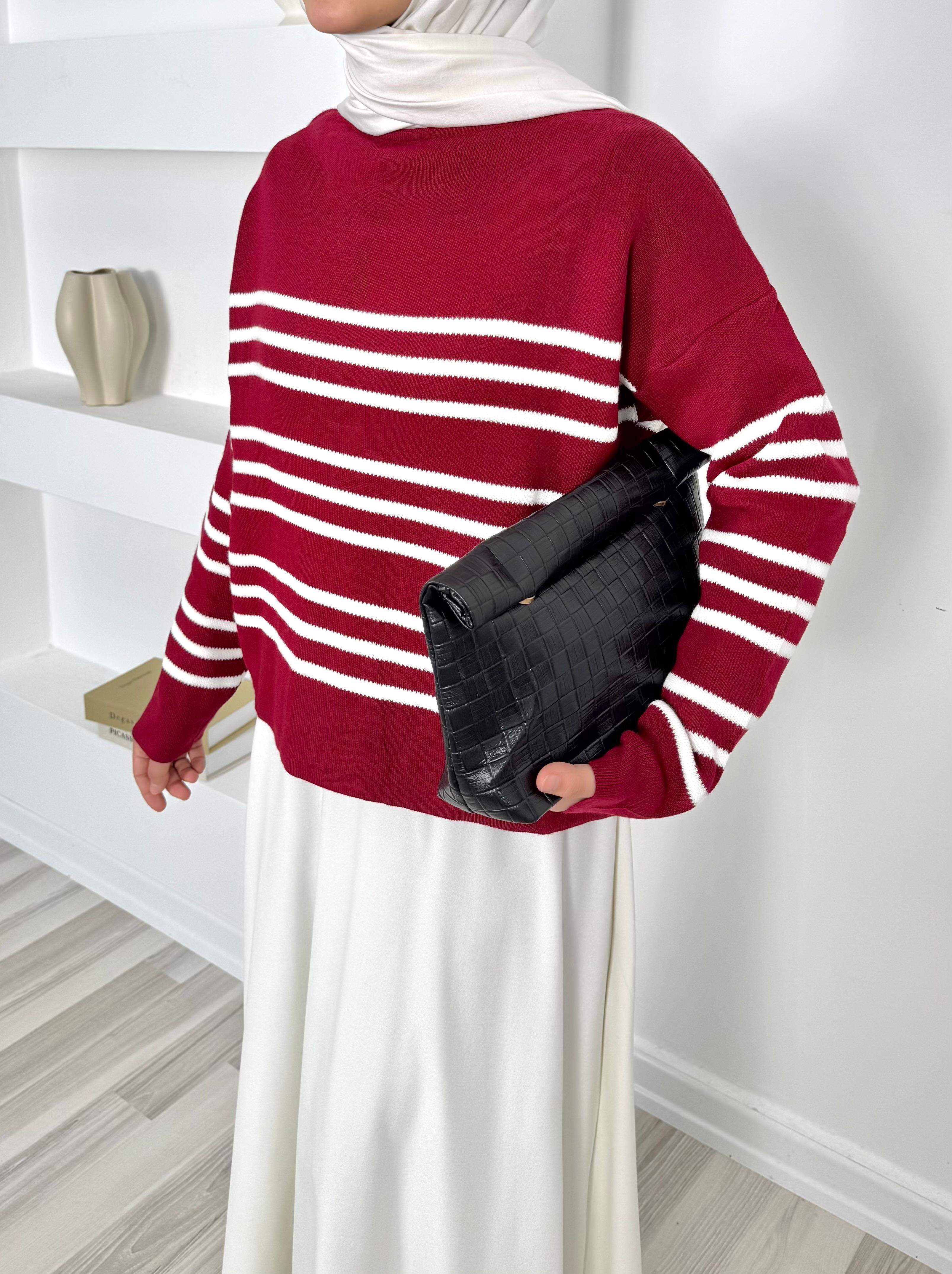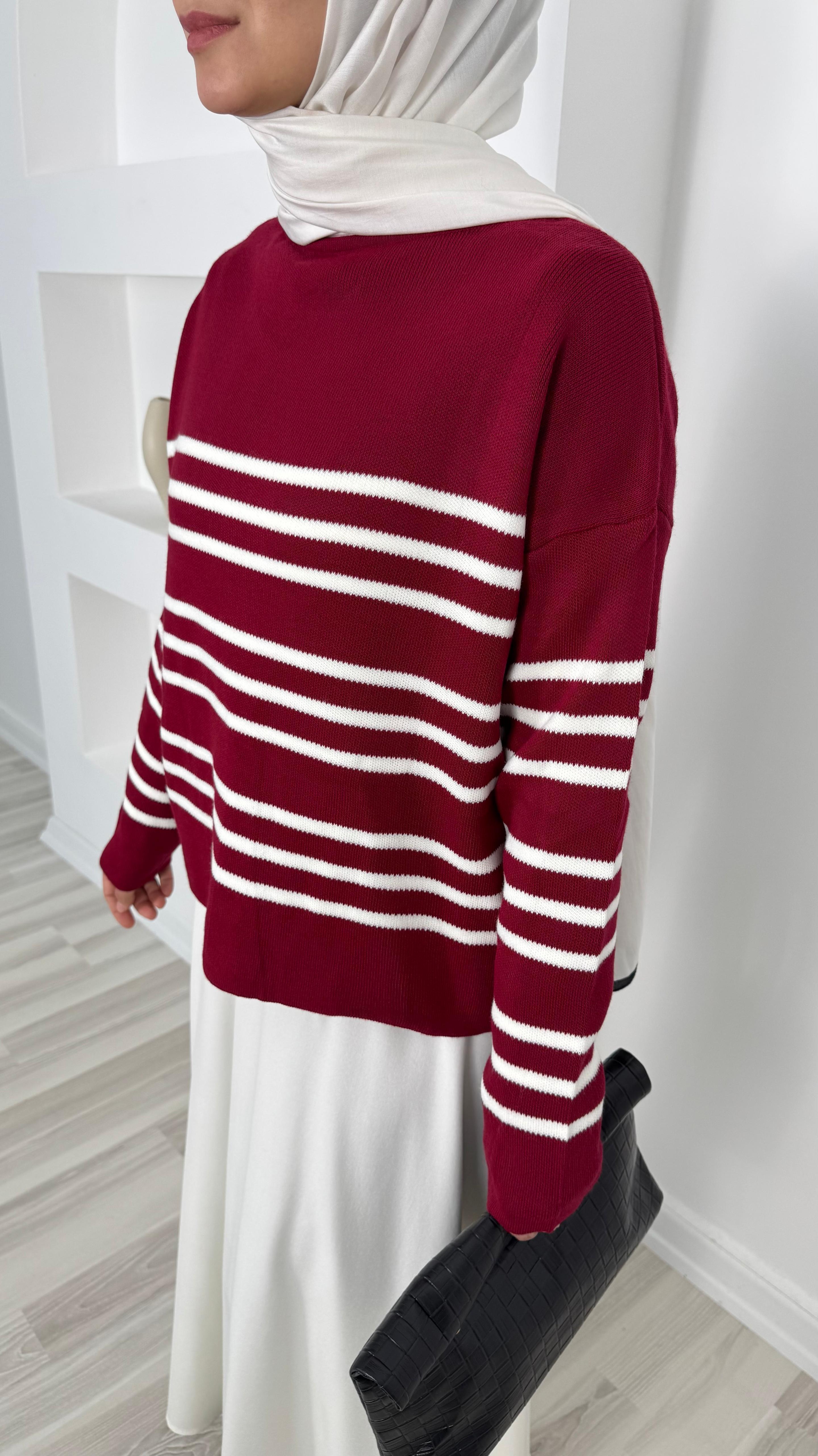 2189-bisiklet yaka çizgili triko kazak-bordo (2189)