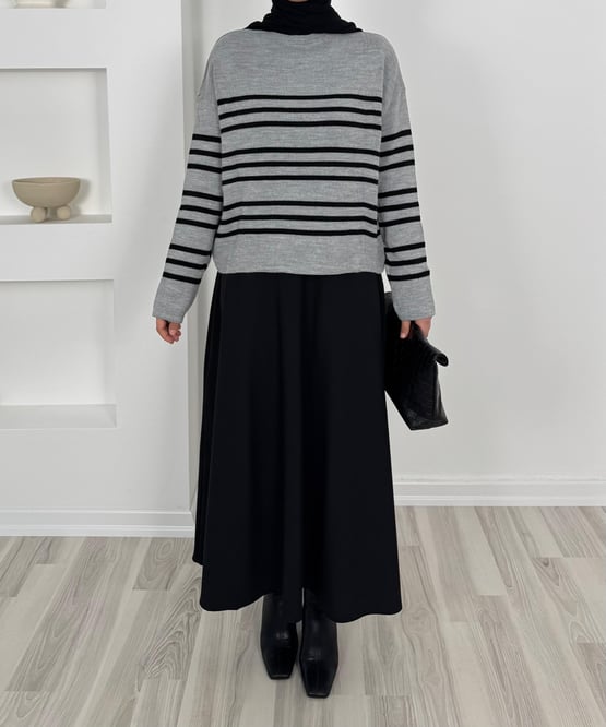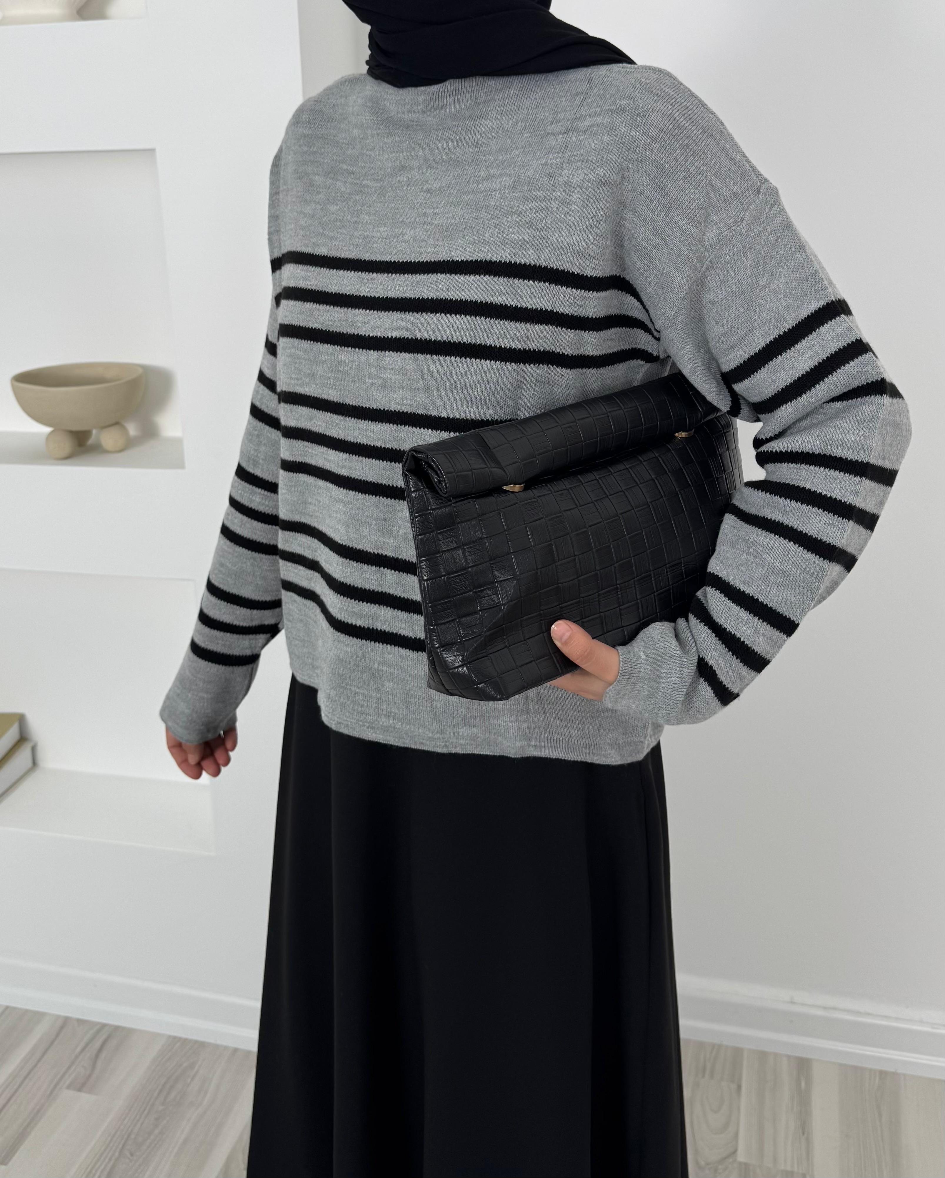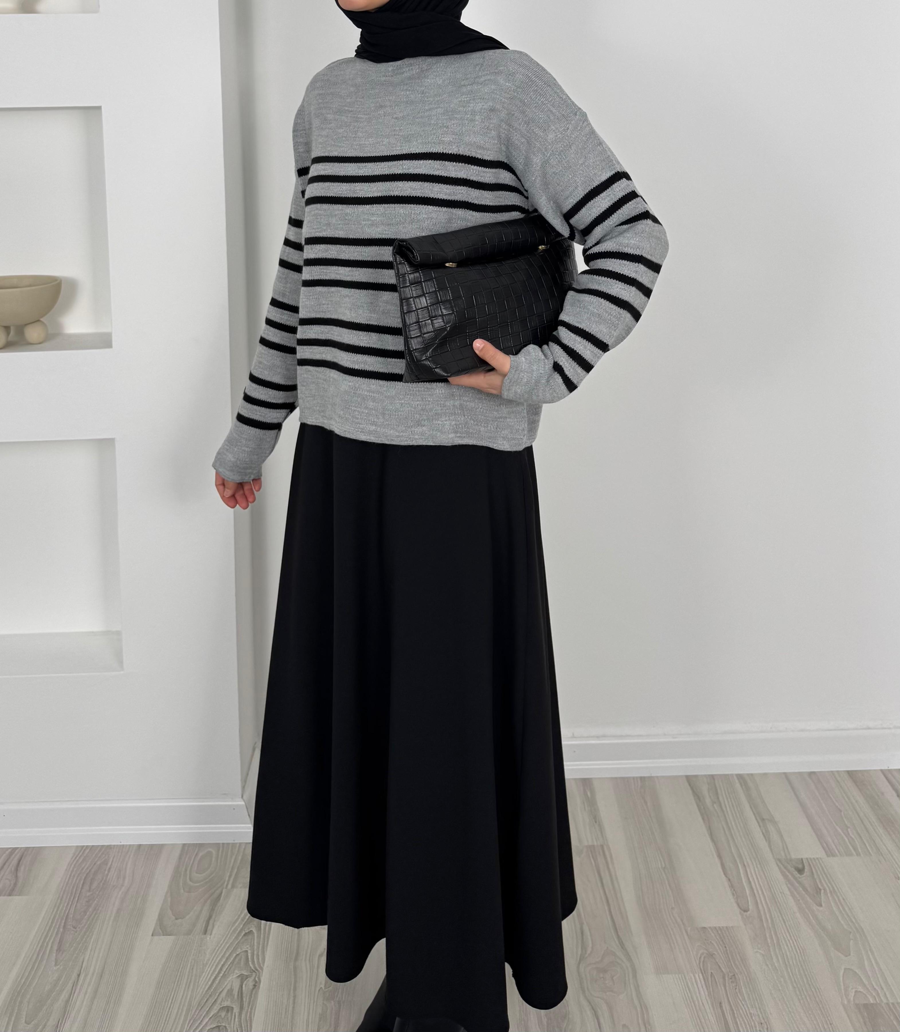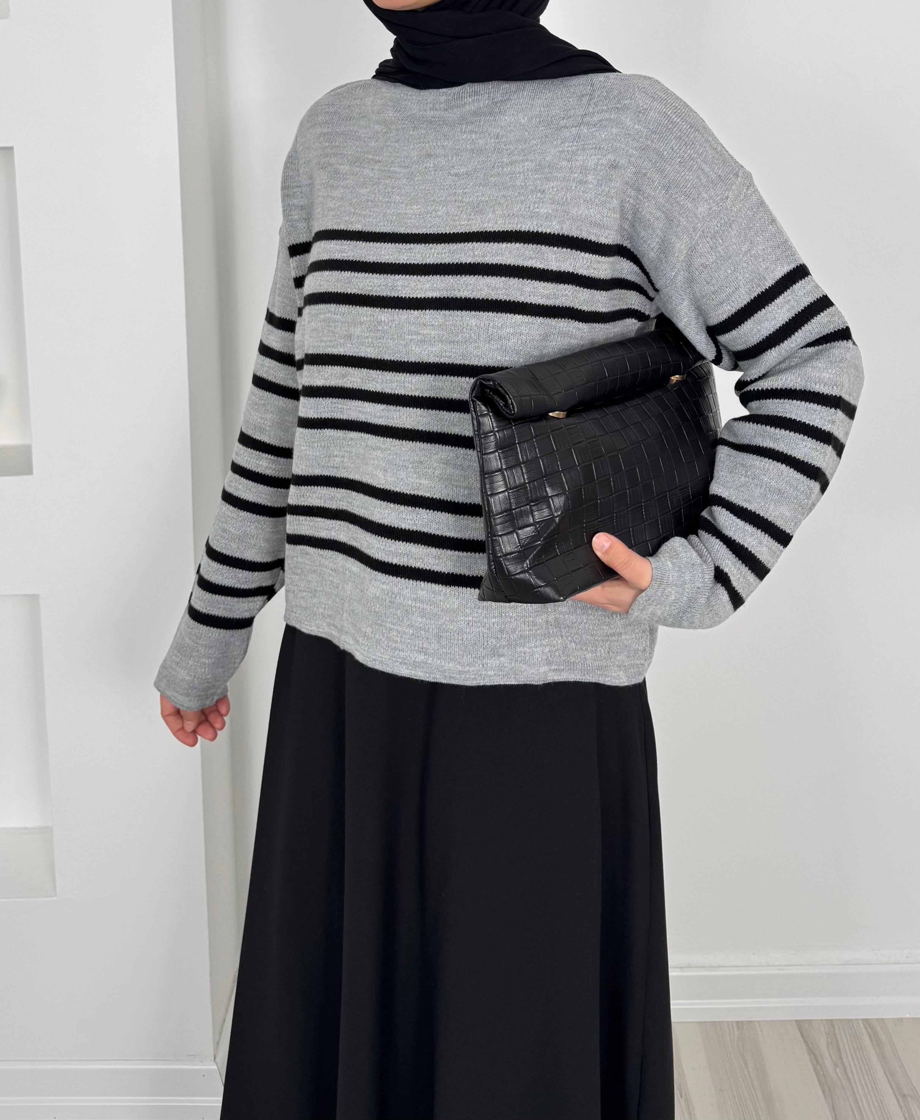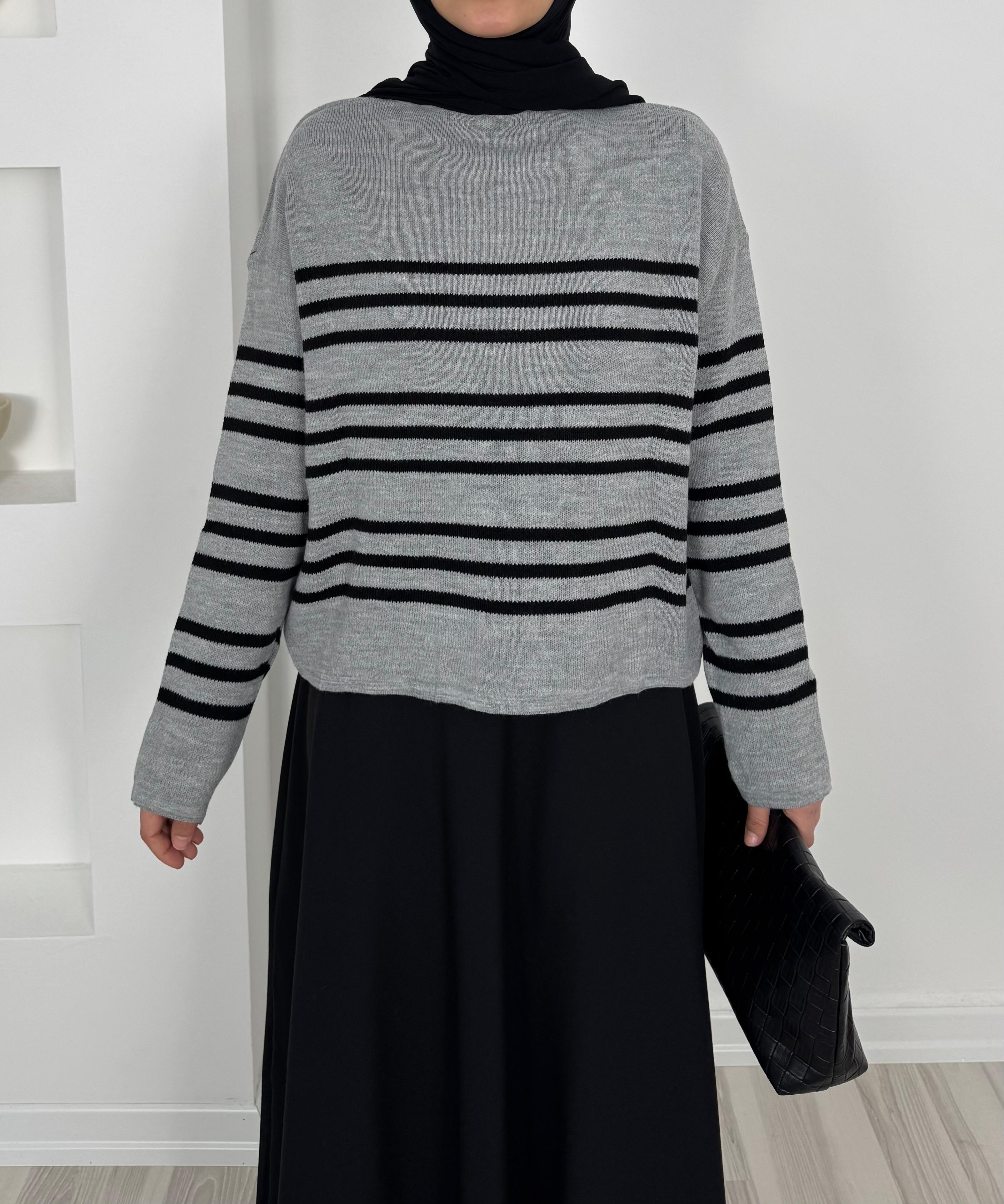 2189-bisiklet yaka çizgili triko kazak-gri (2189)