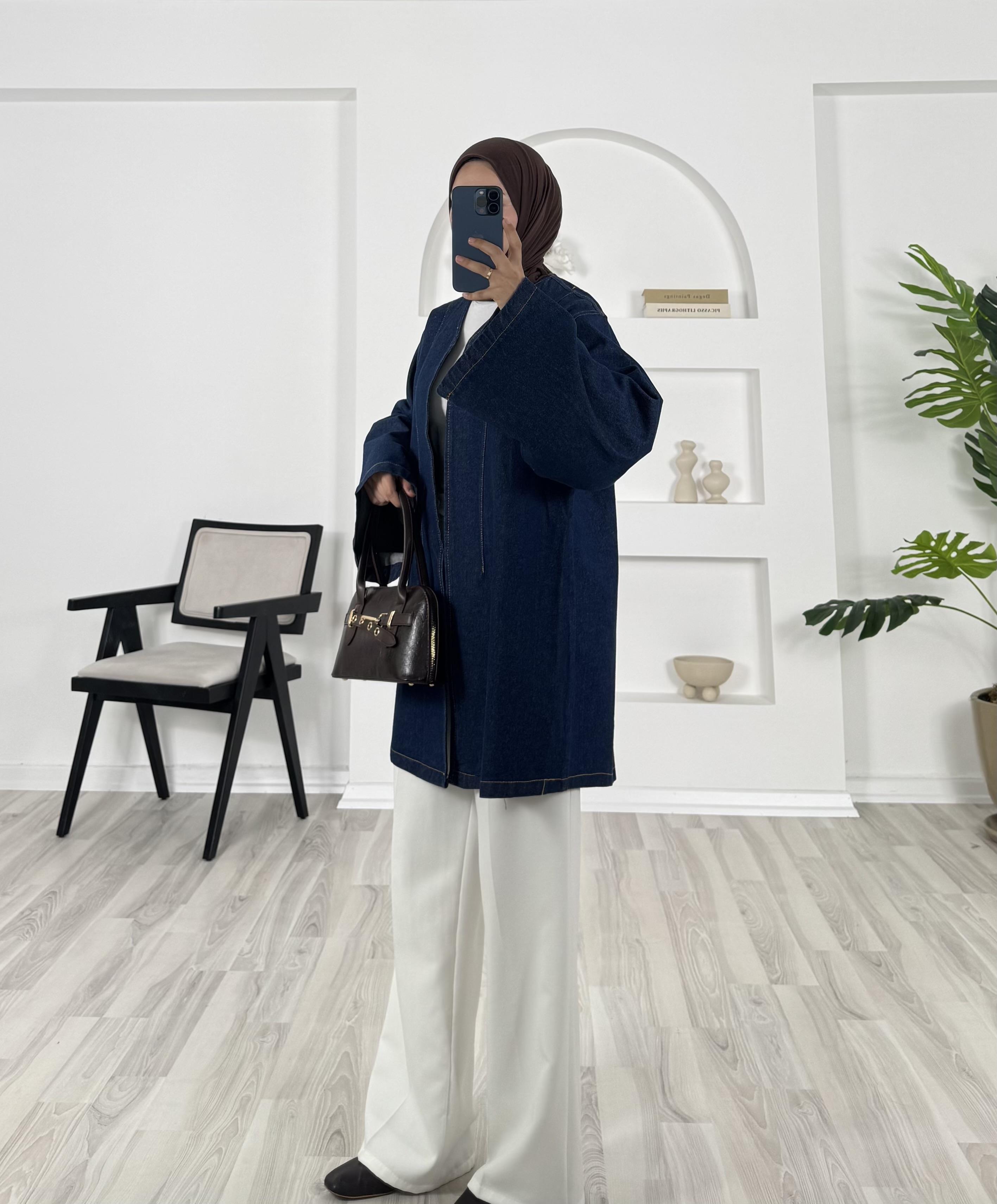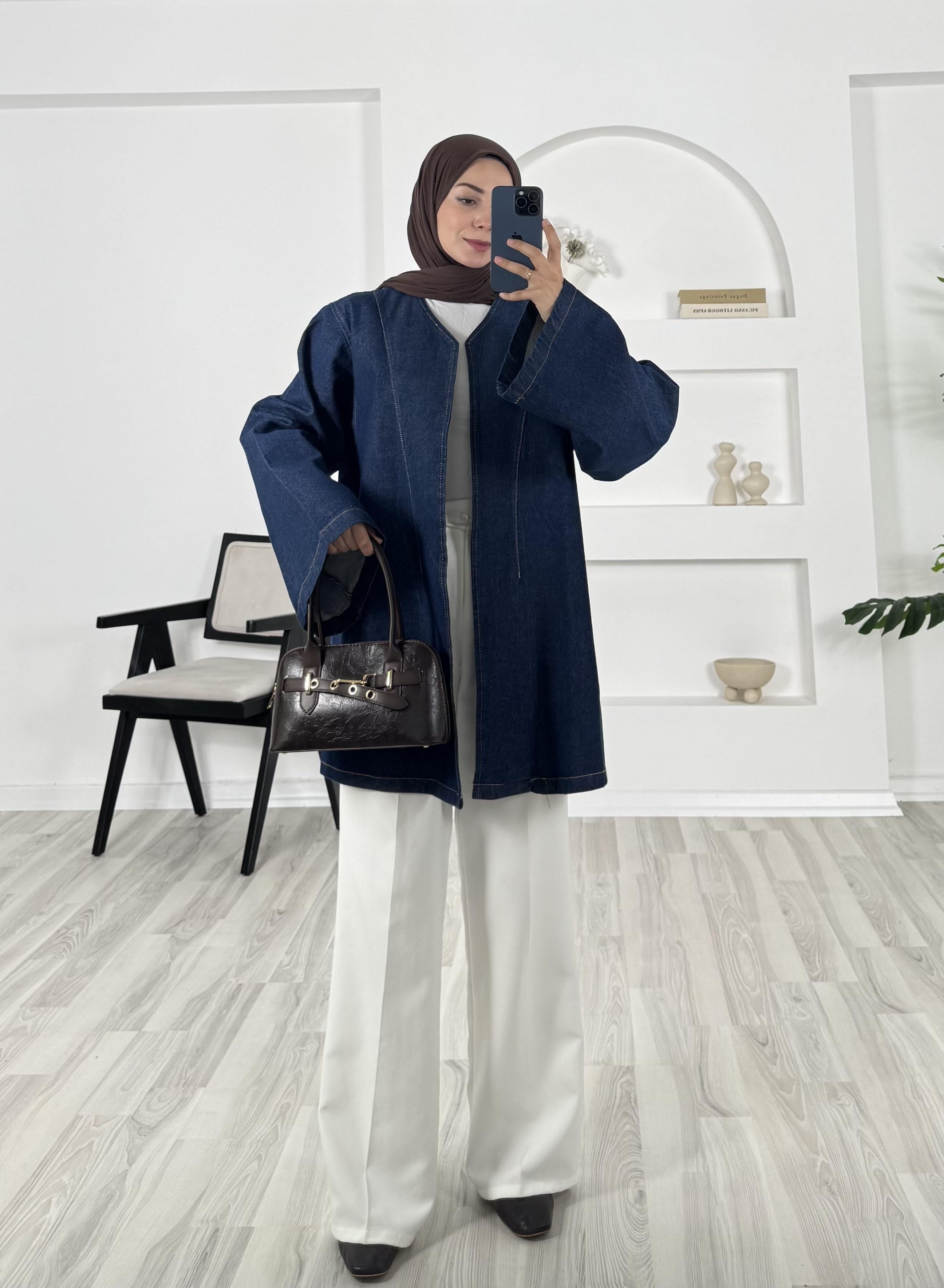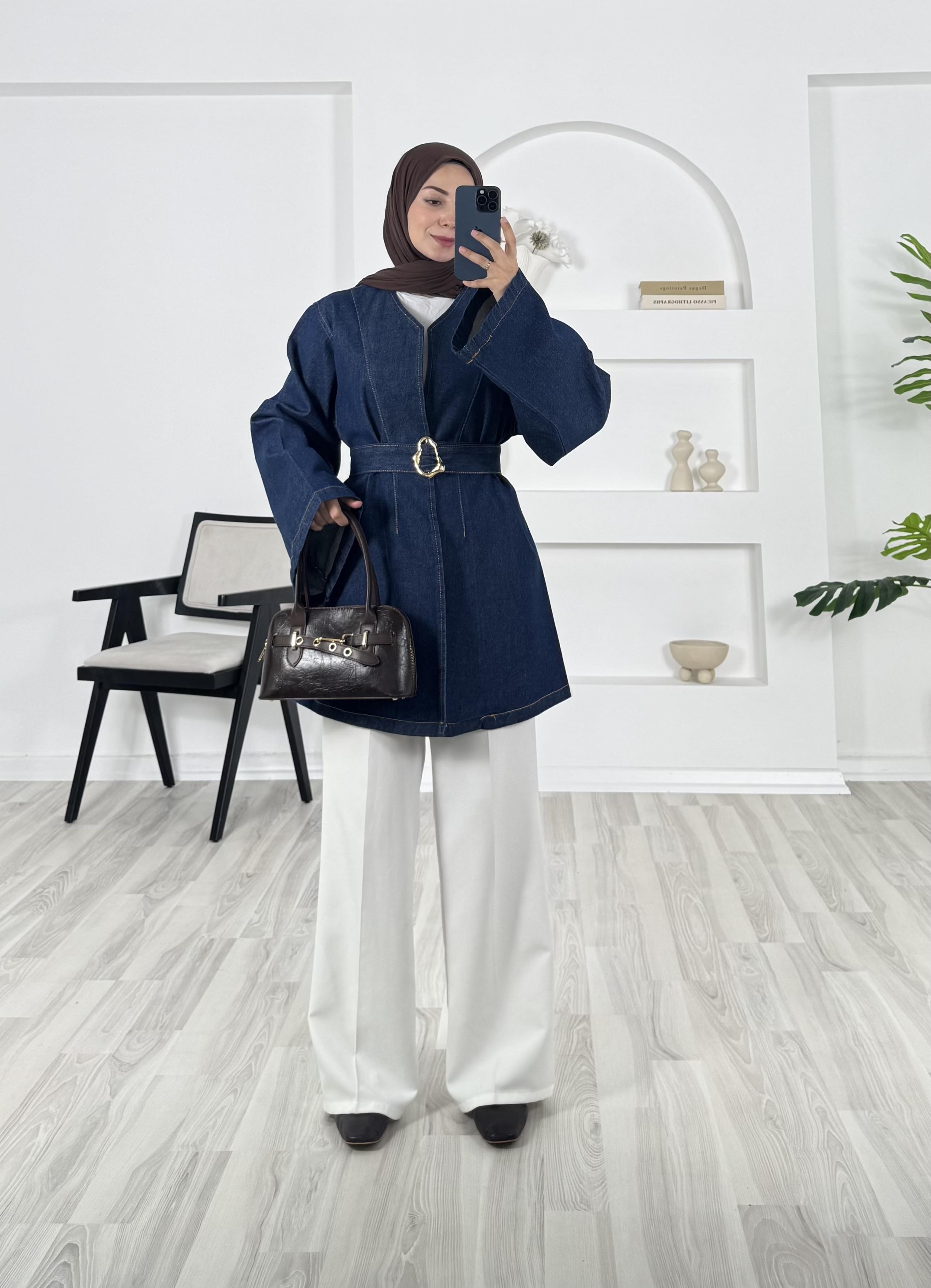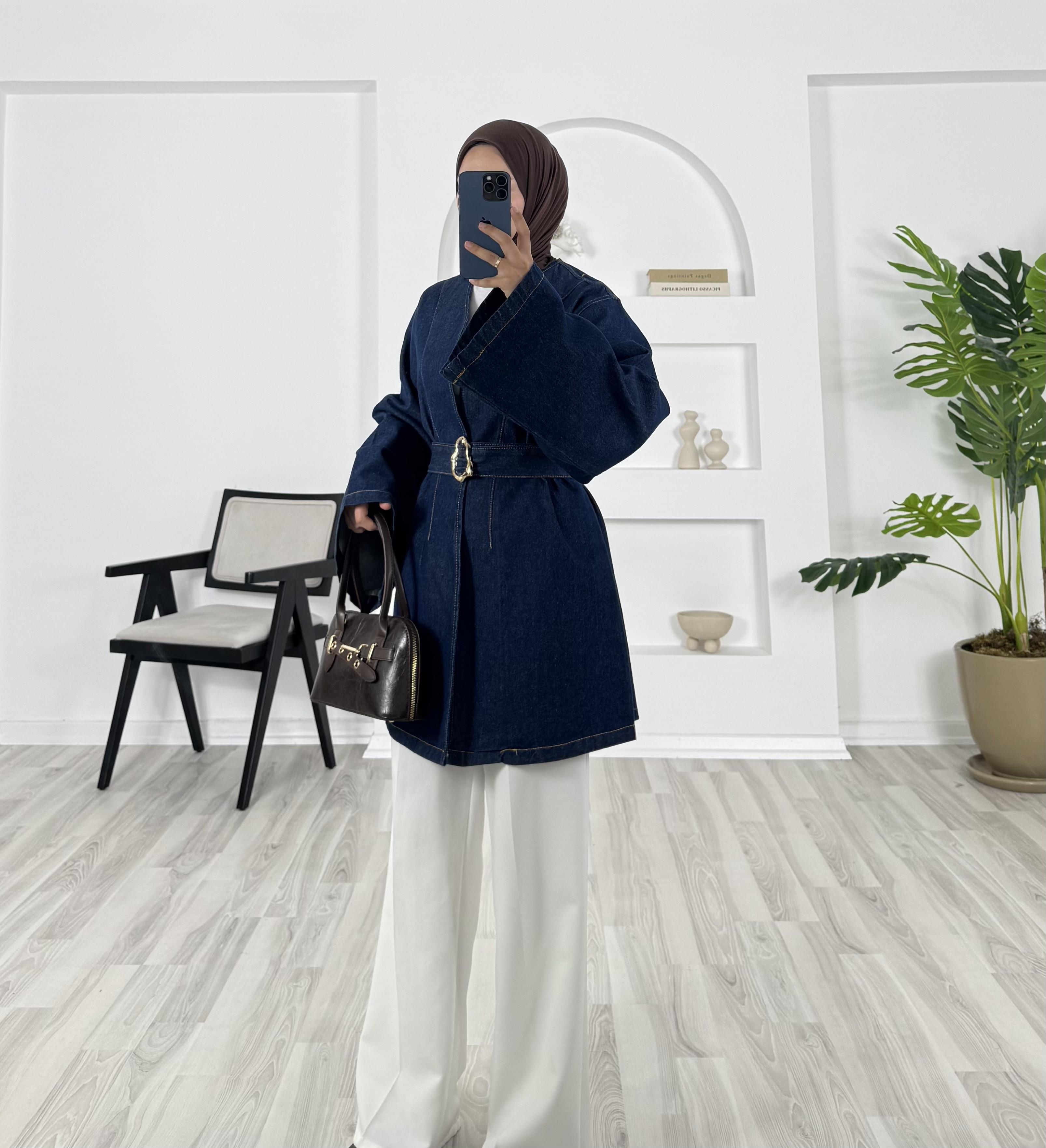 2311 - kemerli kot ceket - mavi (2311)