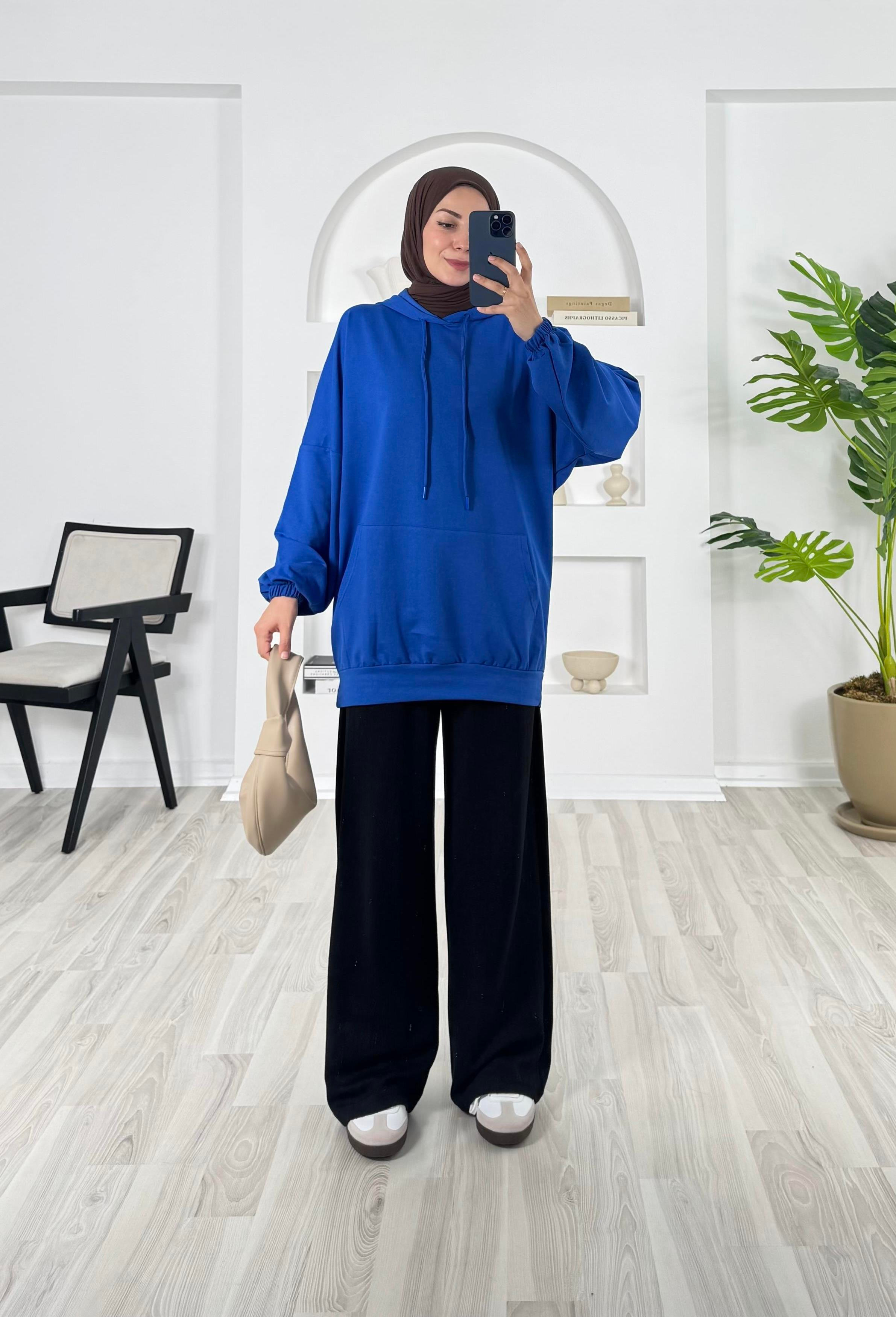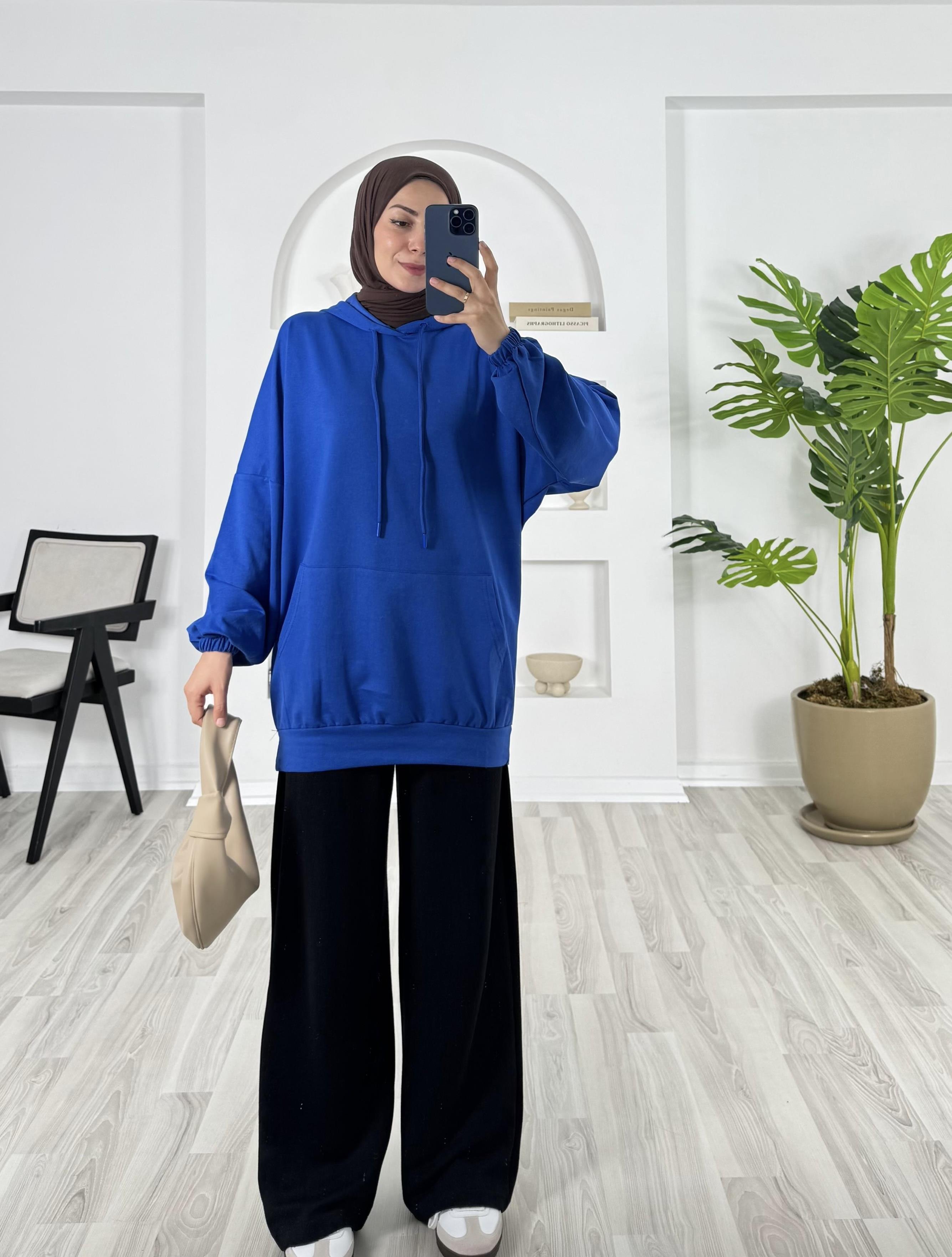 2349 iplik kumaş KAPŞONLU TUNİK saks mavisi (2349 )