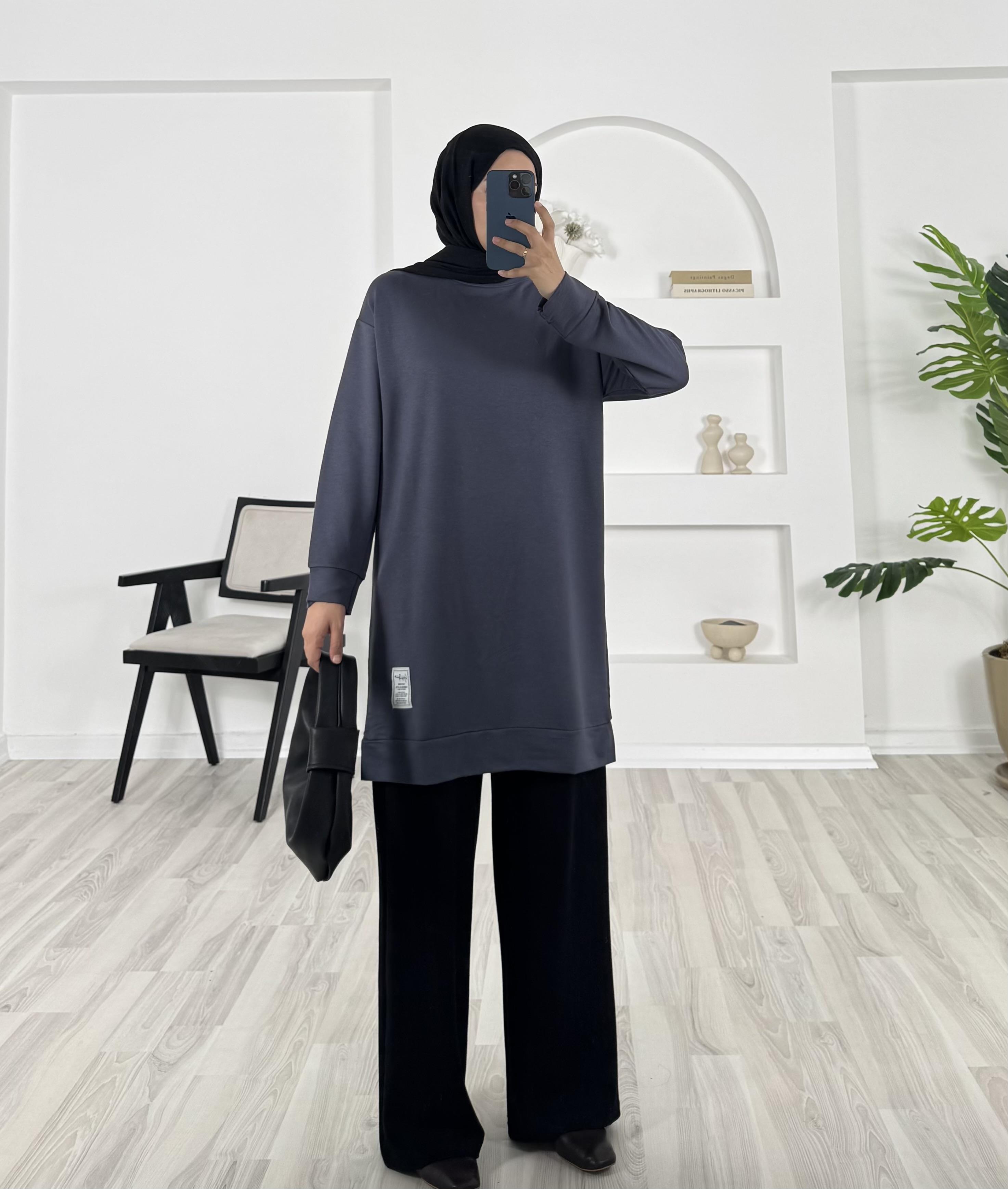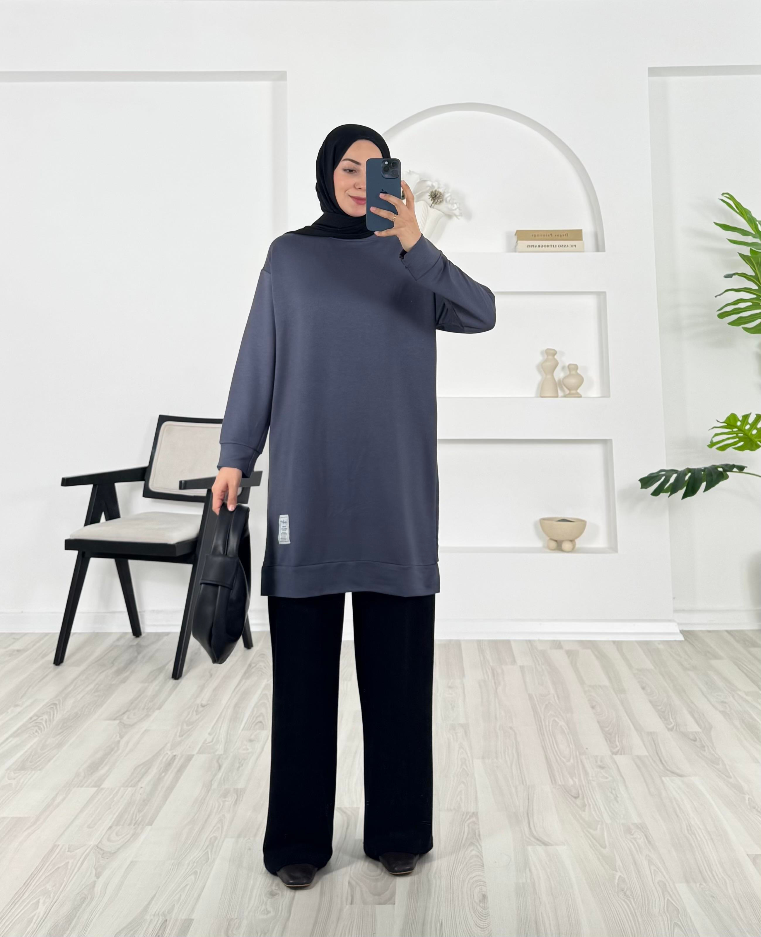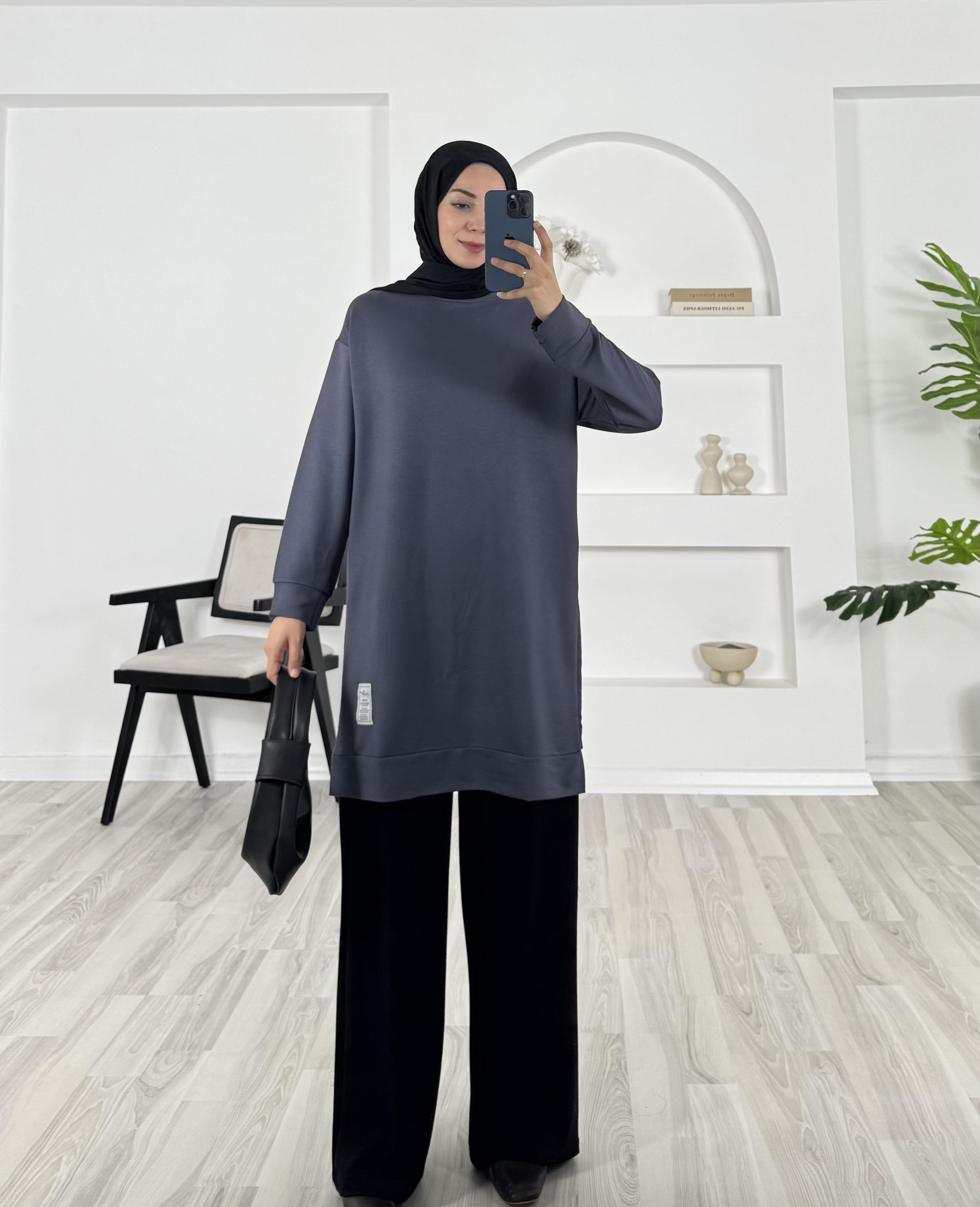 2366 iki iplik kumaş armalı düz tunik füme (2366)