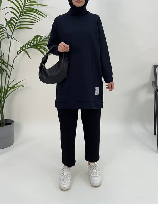 2366 G64+iki iplik kumaş armalı düz tunik LACİVERT (2366)