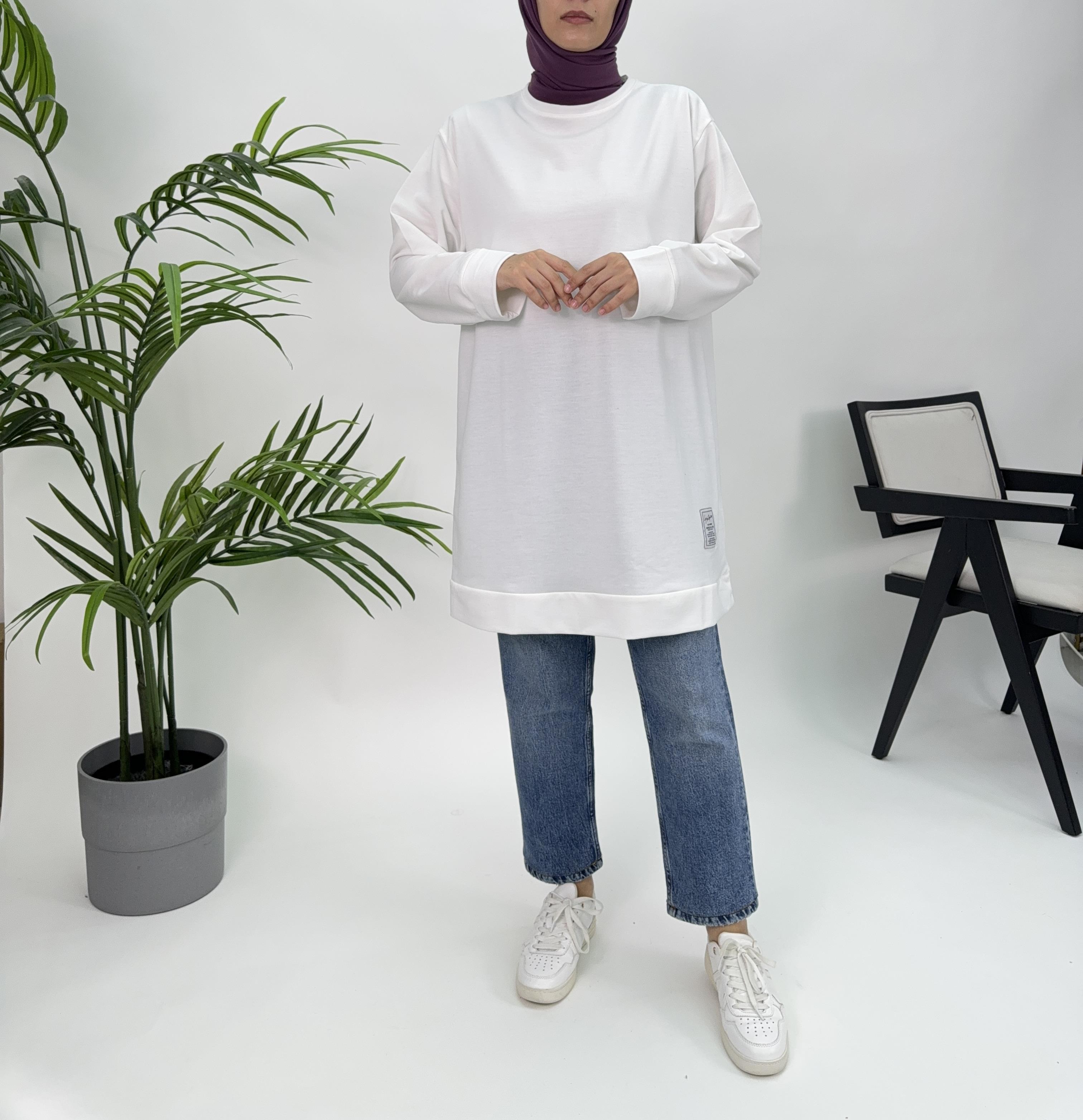 2366 C34+iki iplik kumaş armalı düz tunik beyaz (2366)