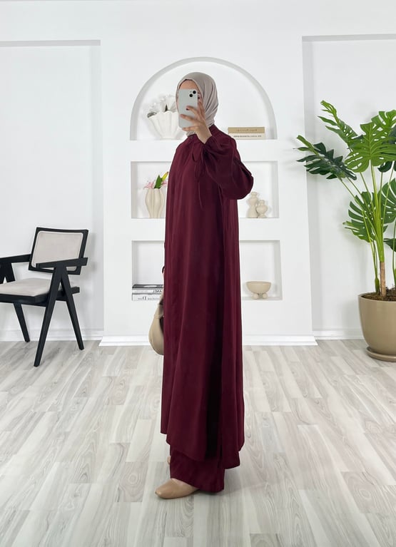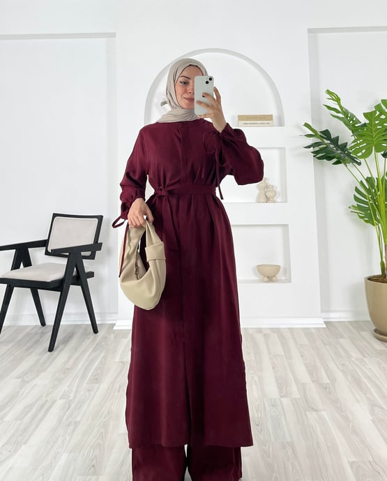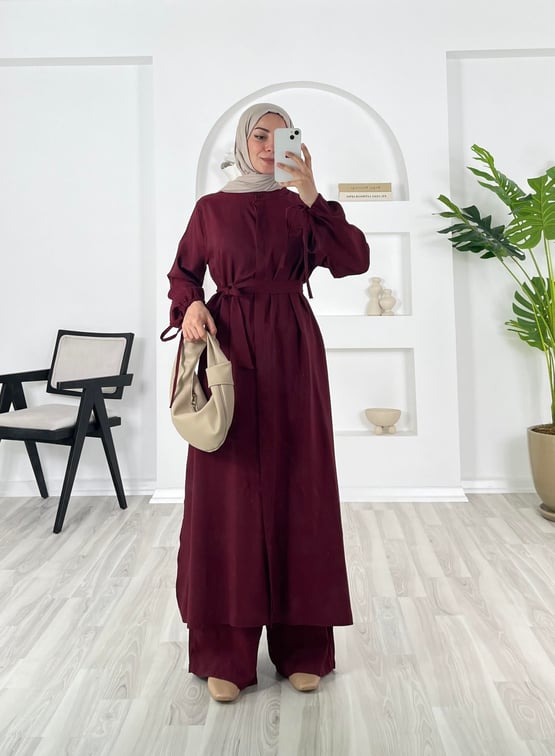 2386 - bilekleri ipli uzun tunikli cappicino ikili takım - bordo (2386)