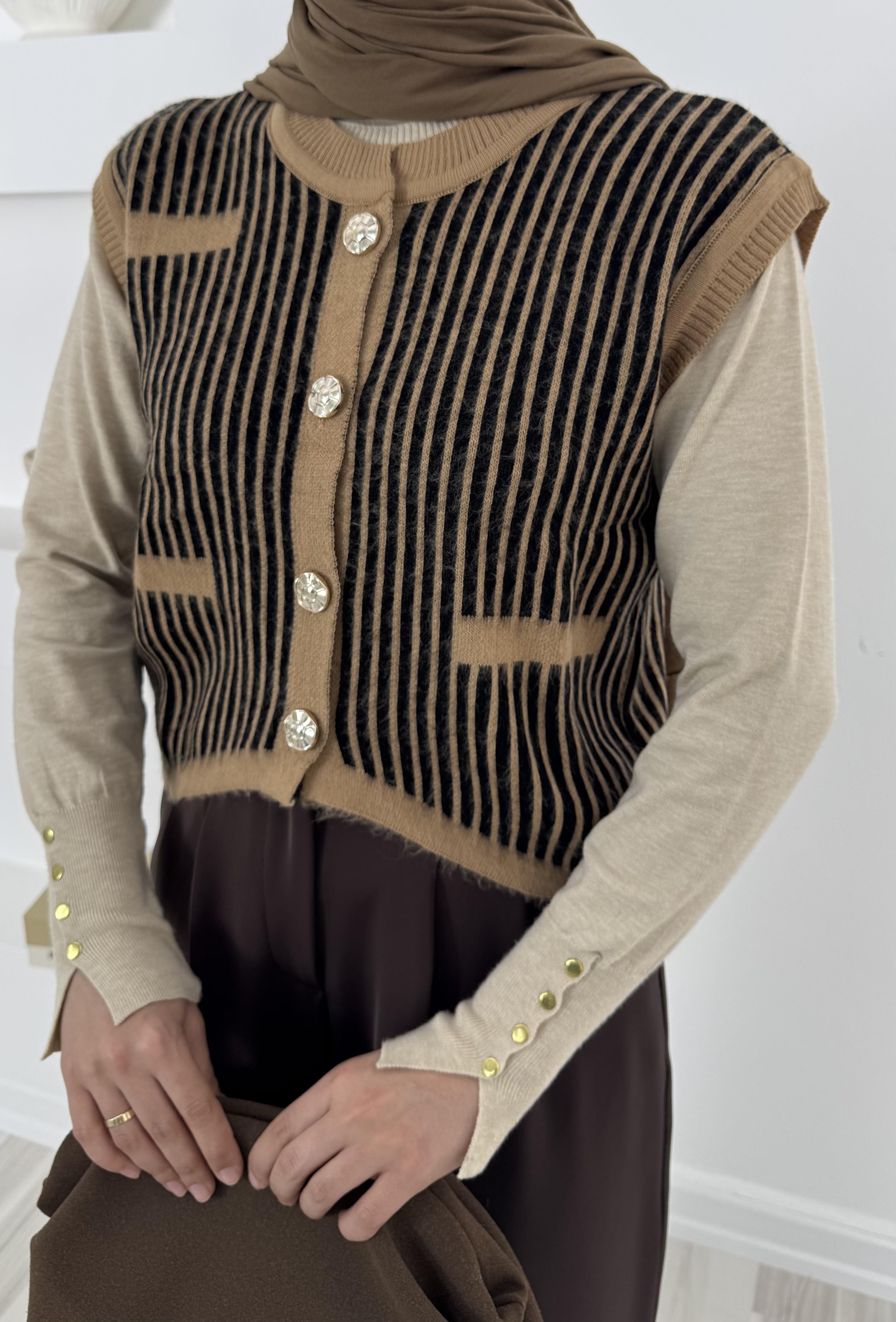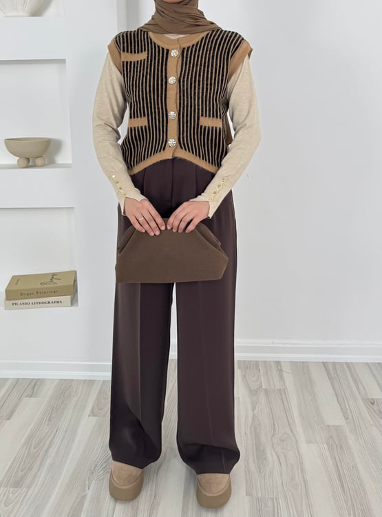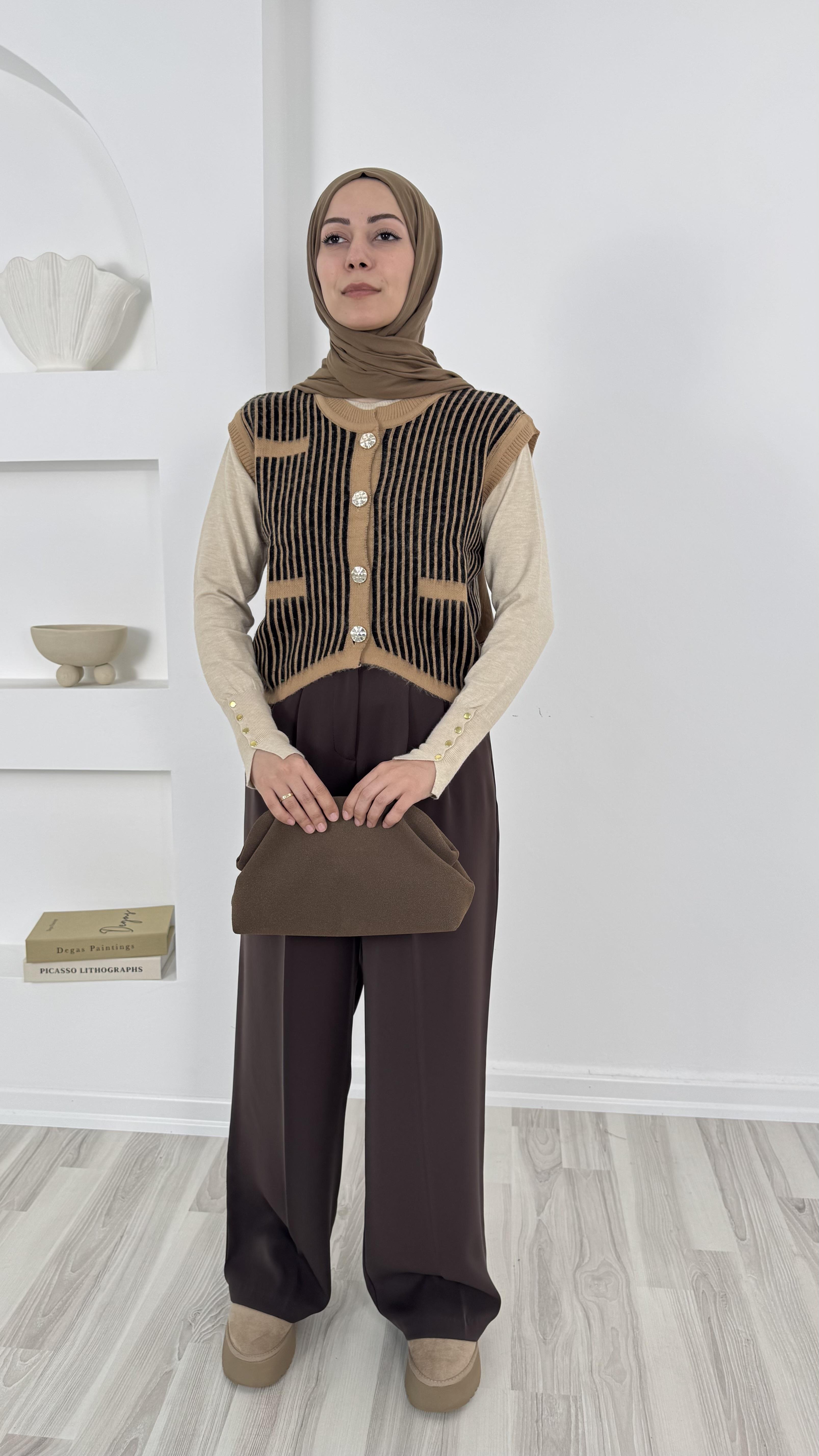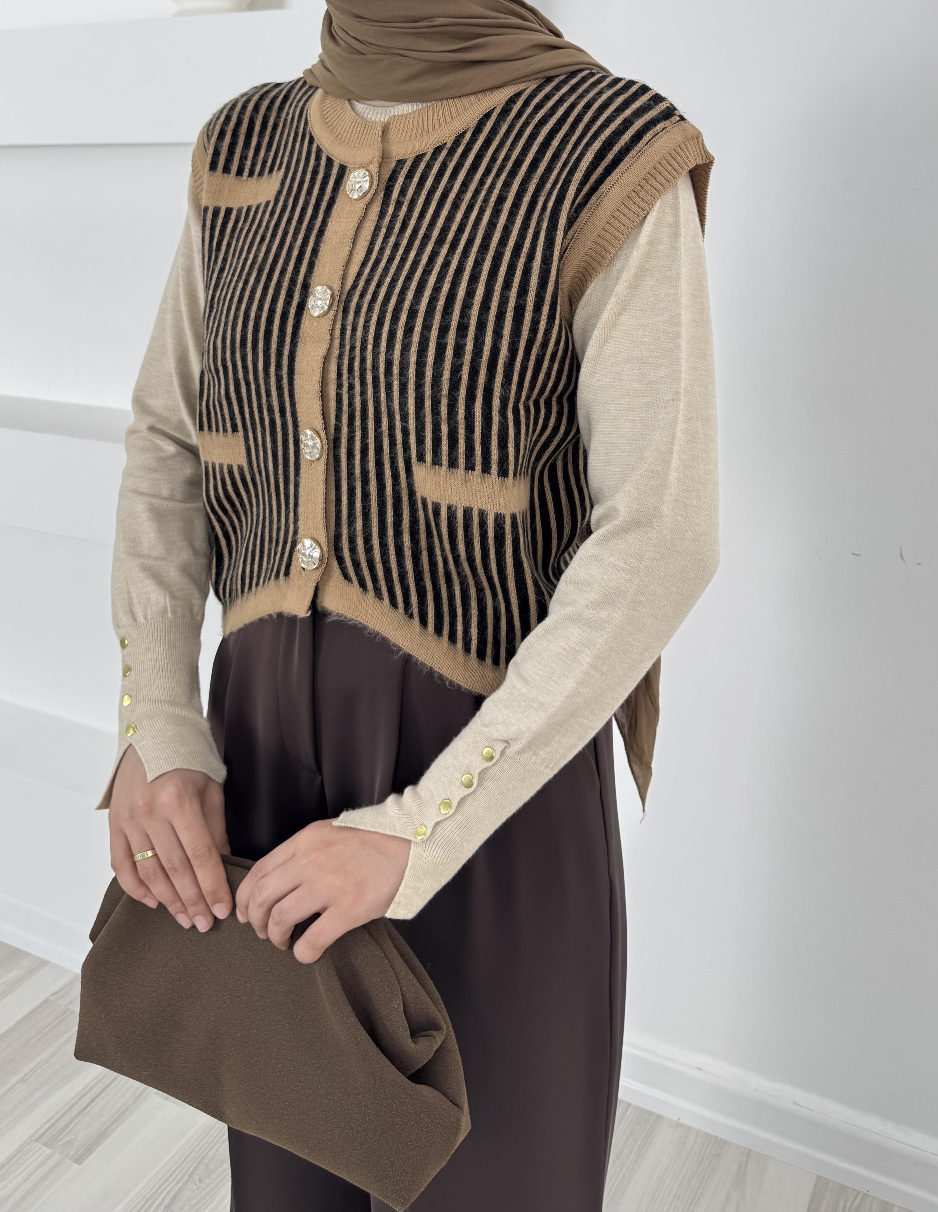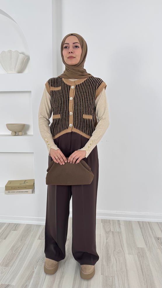 241233-çizgili süveter triko yelek- kahve-siyah (241233)