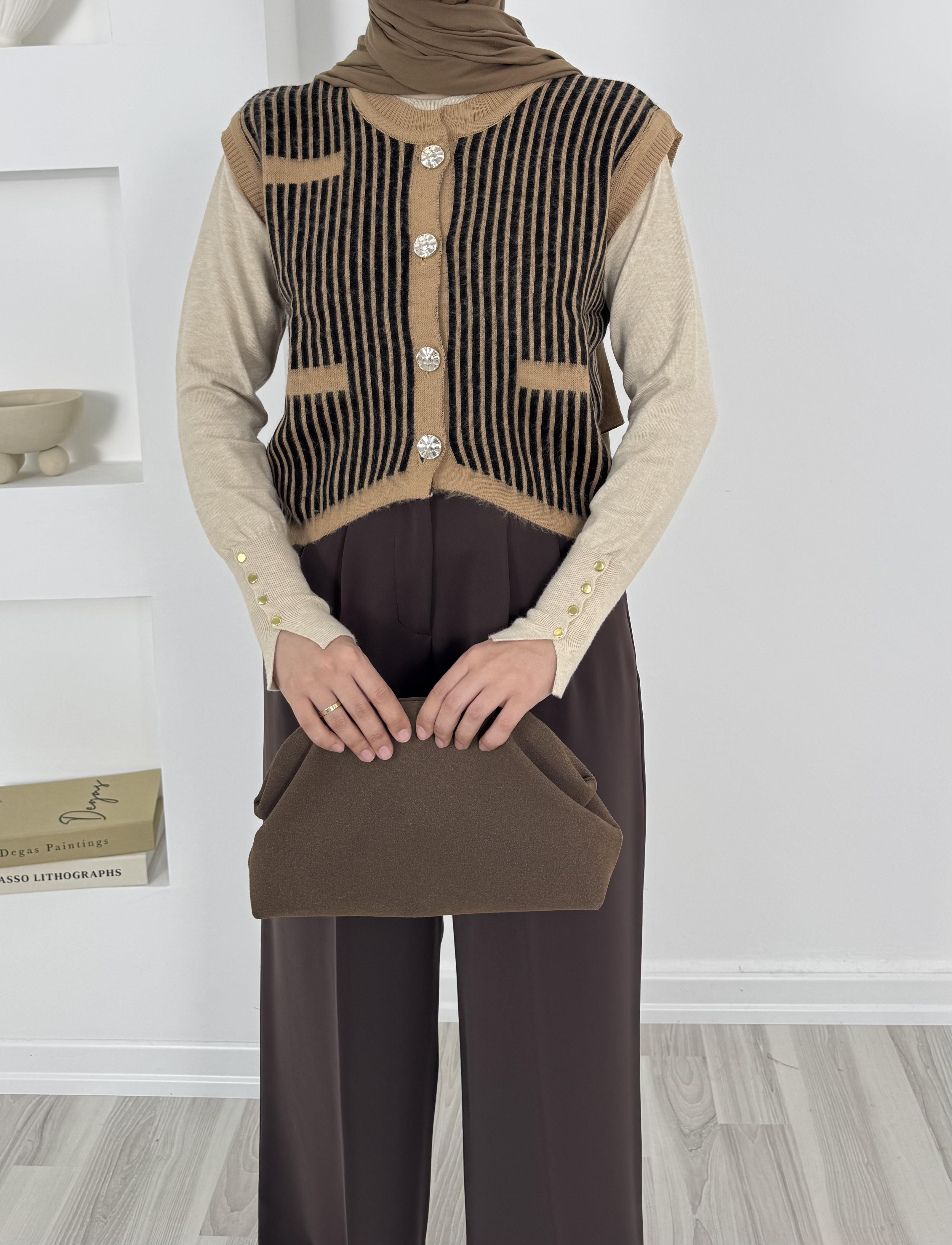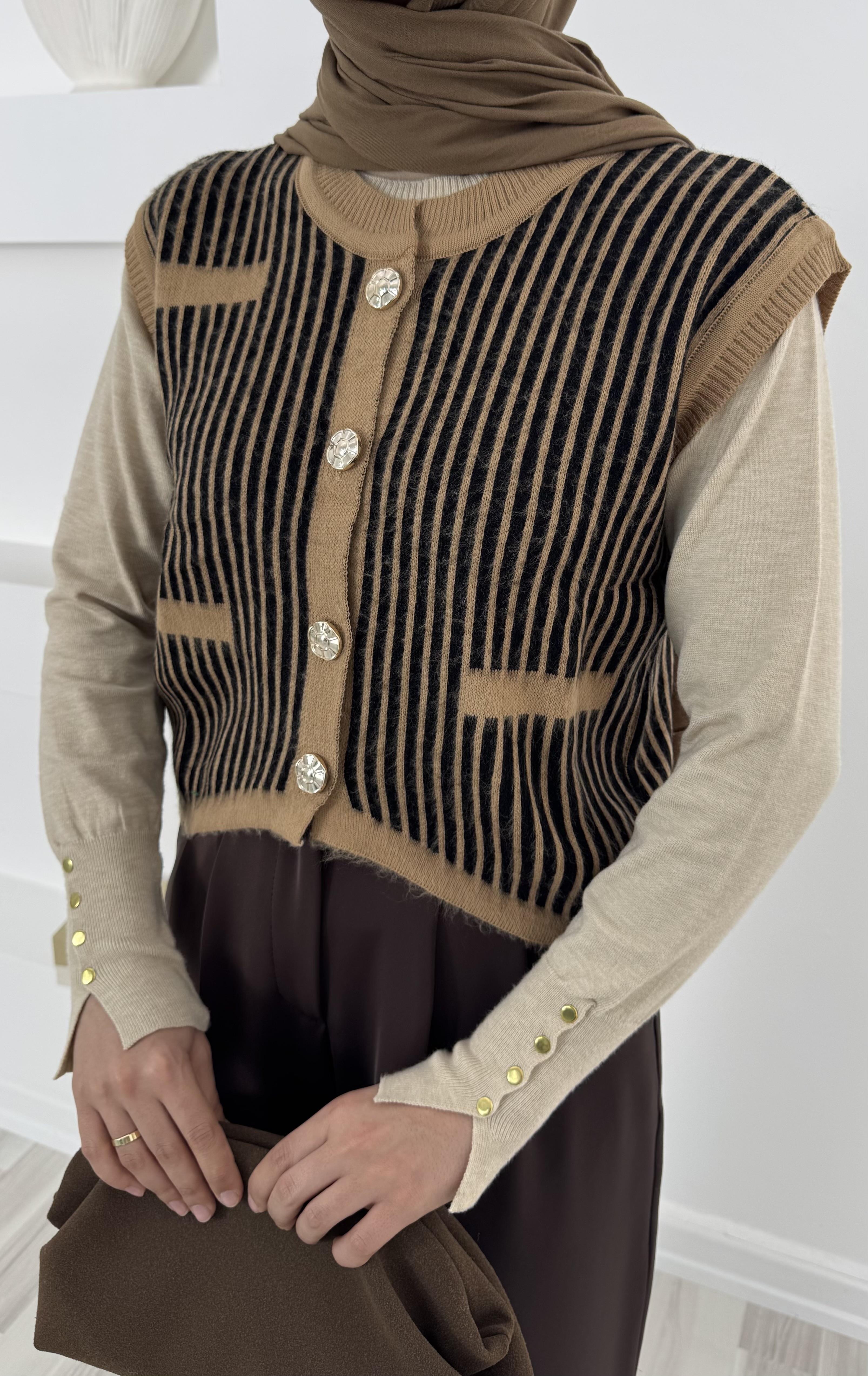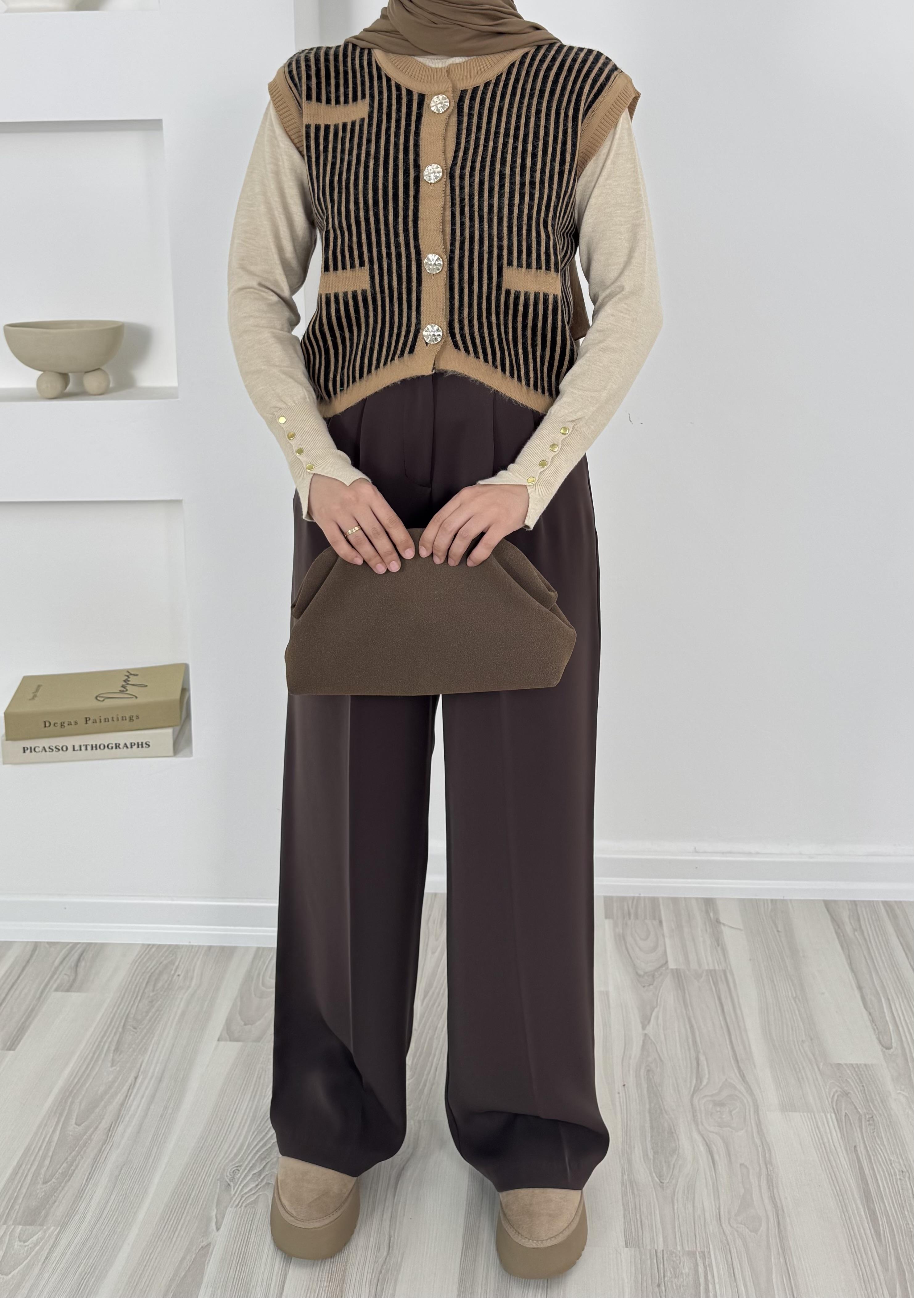 241233-çizgili süveter triko yelek- kahve-siyah (241233)