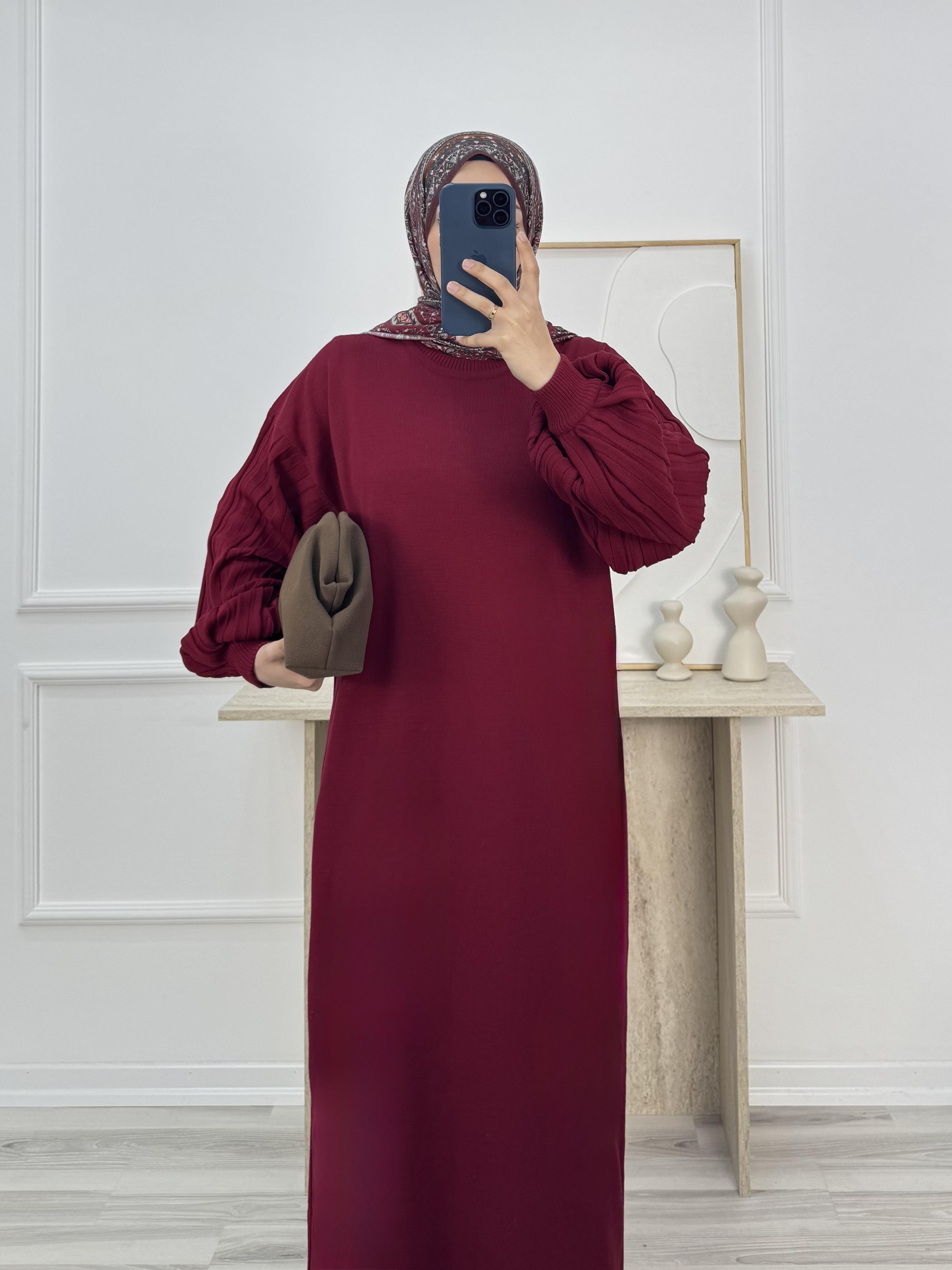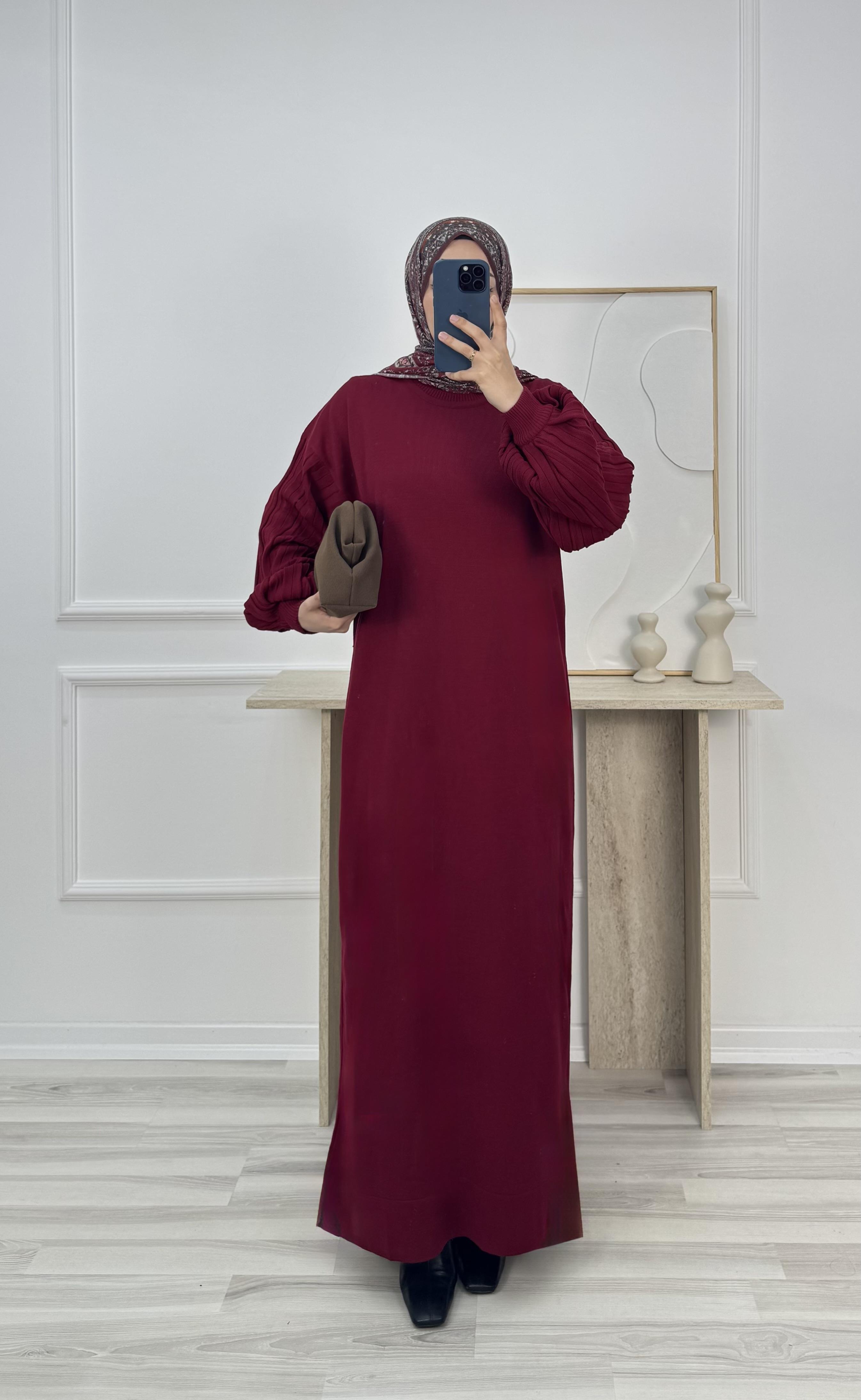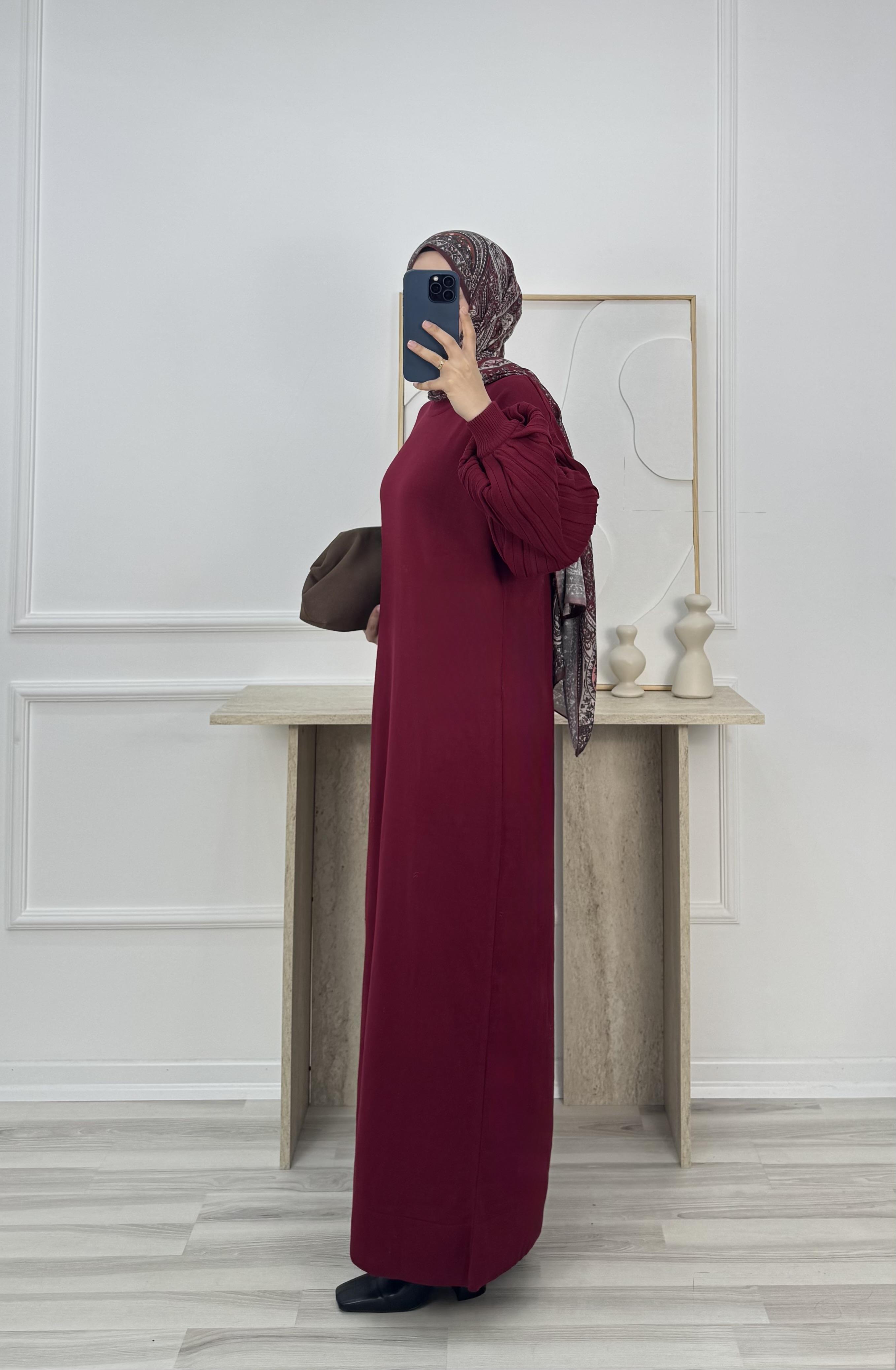 2421-balon kol triko elbise-bordo (2421)
