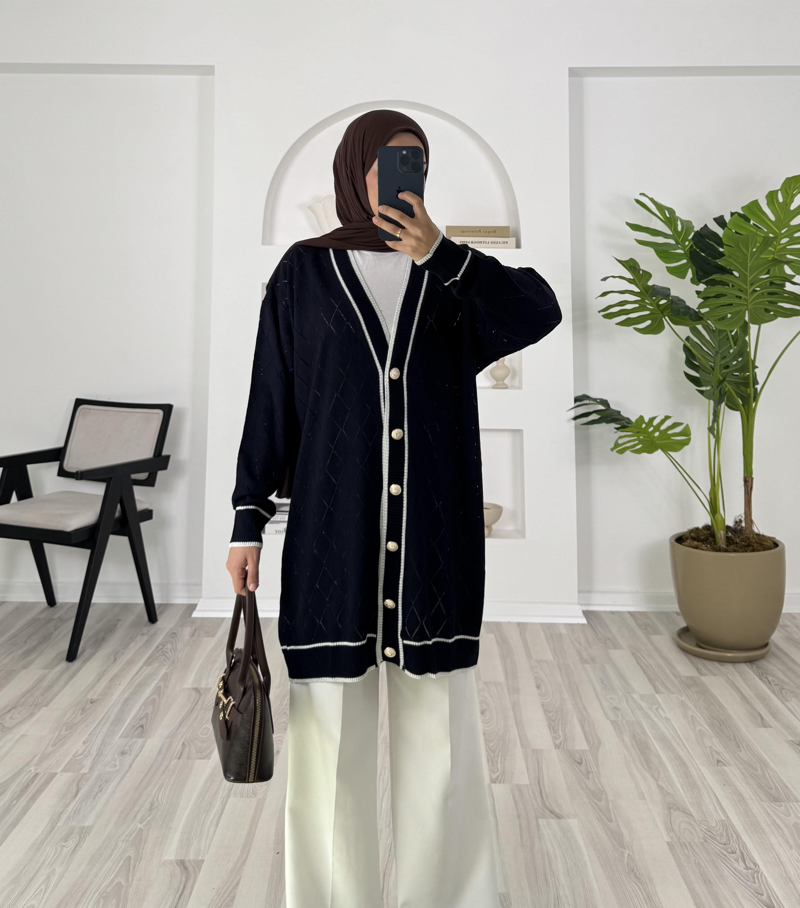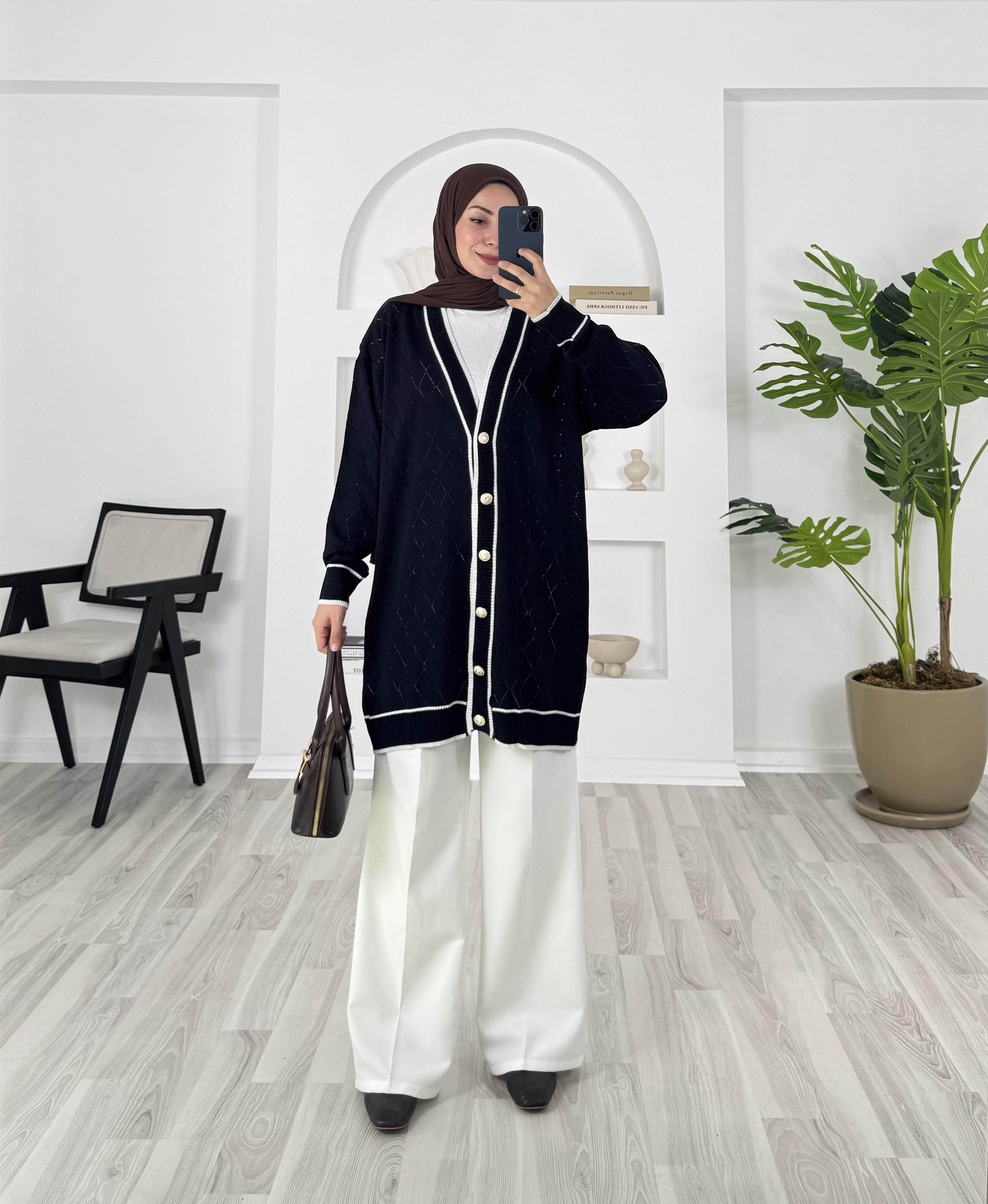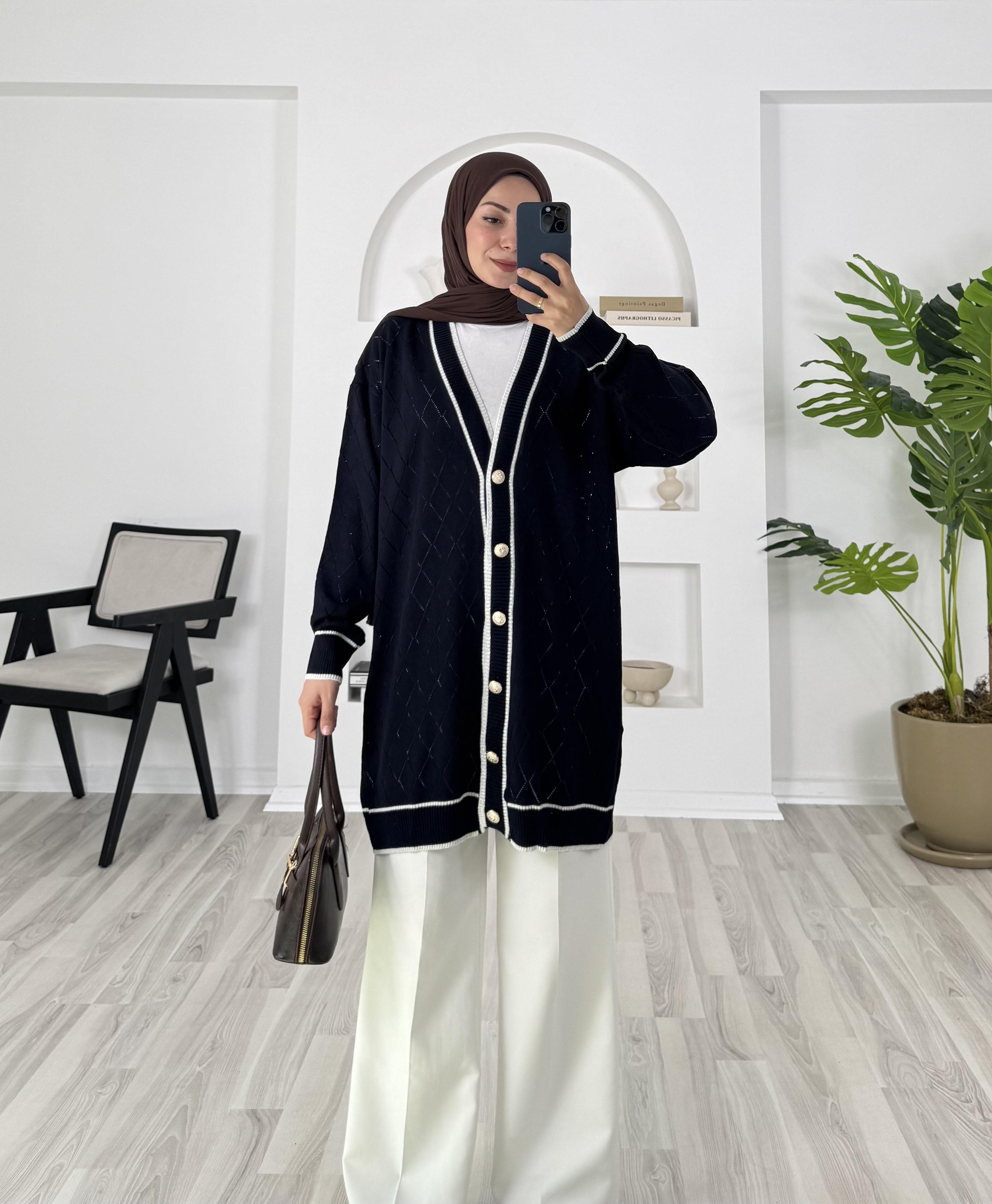 önü dügmeli uzun triko hırka