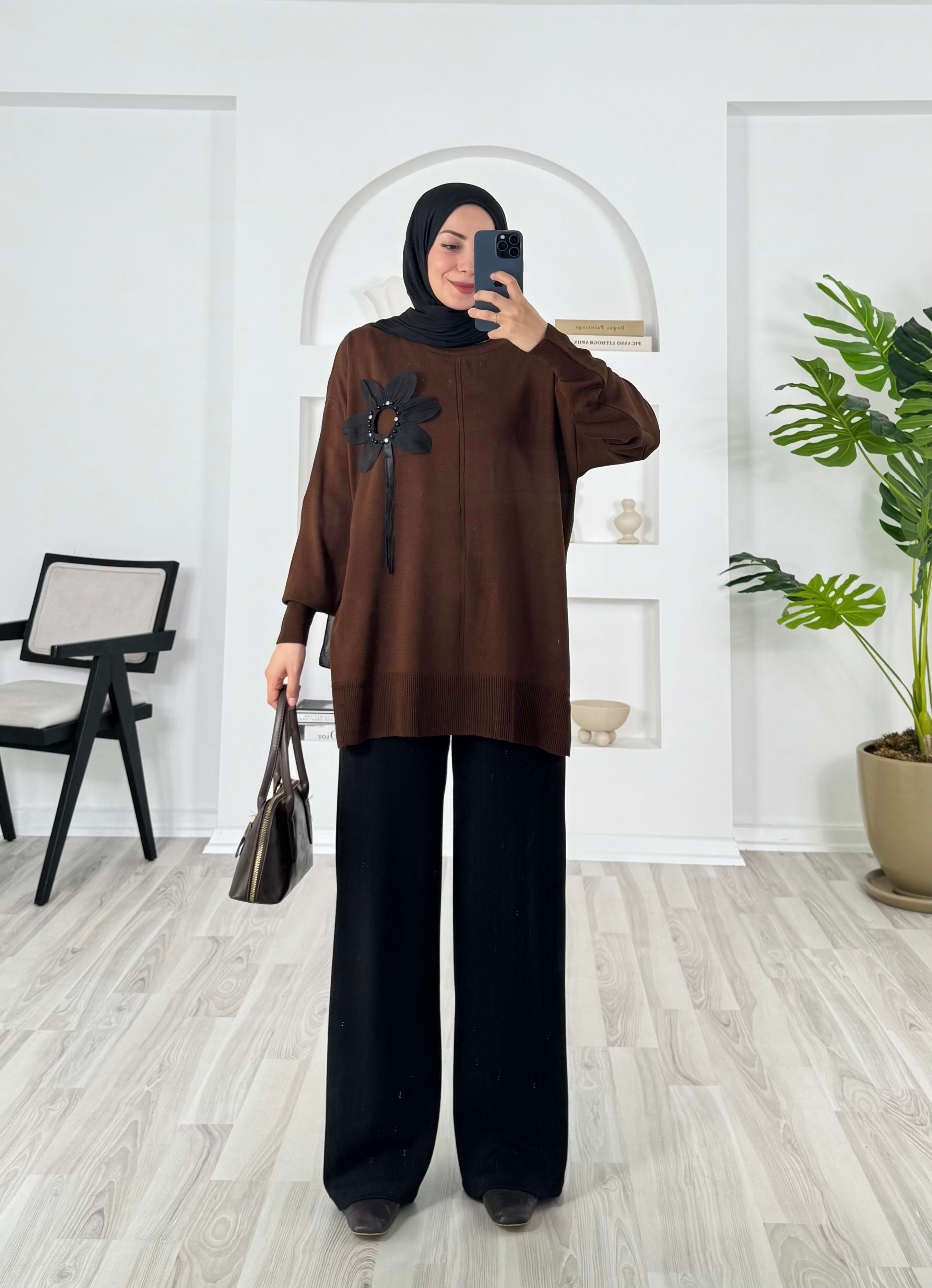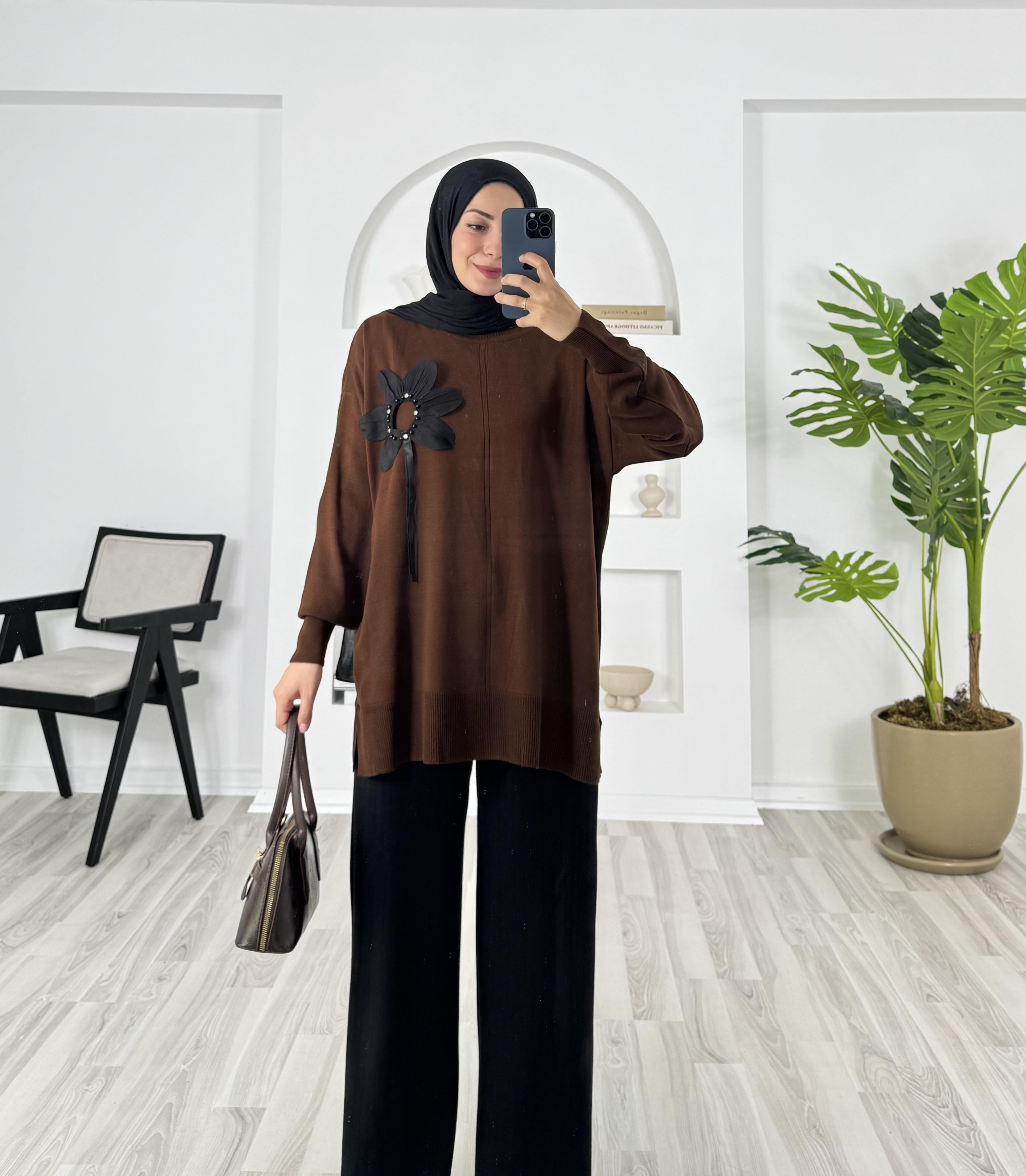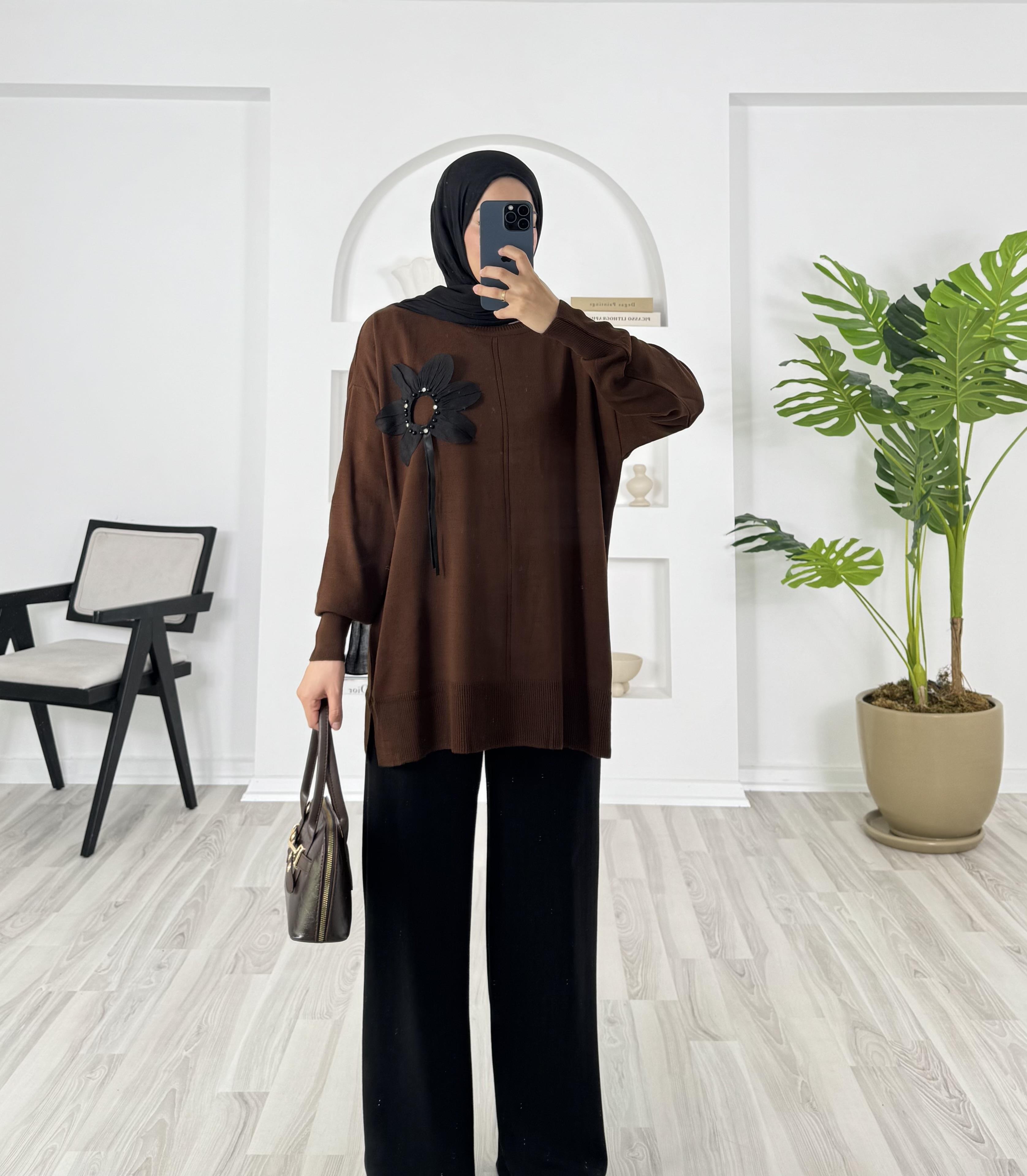 24499 - önü çiçekli triko - acı kahve (24499)