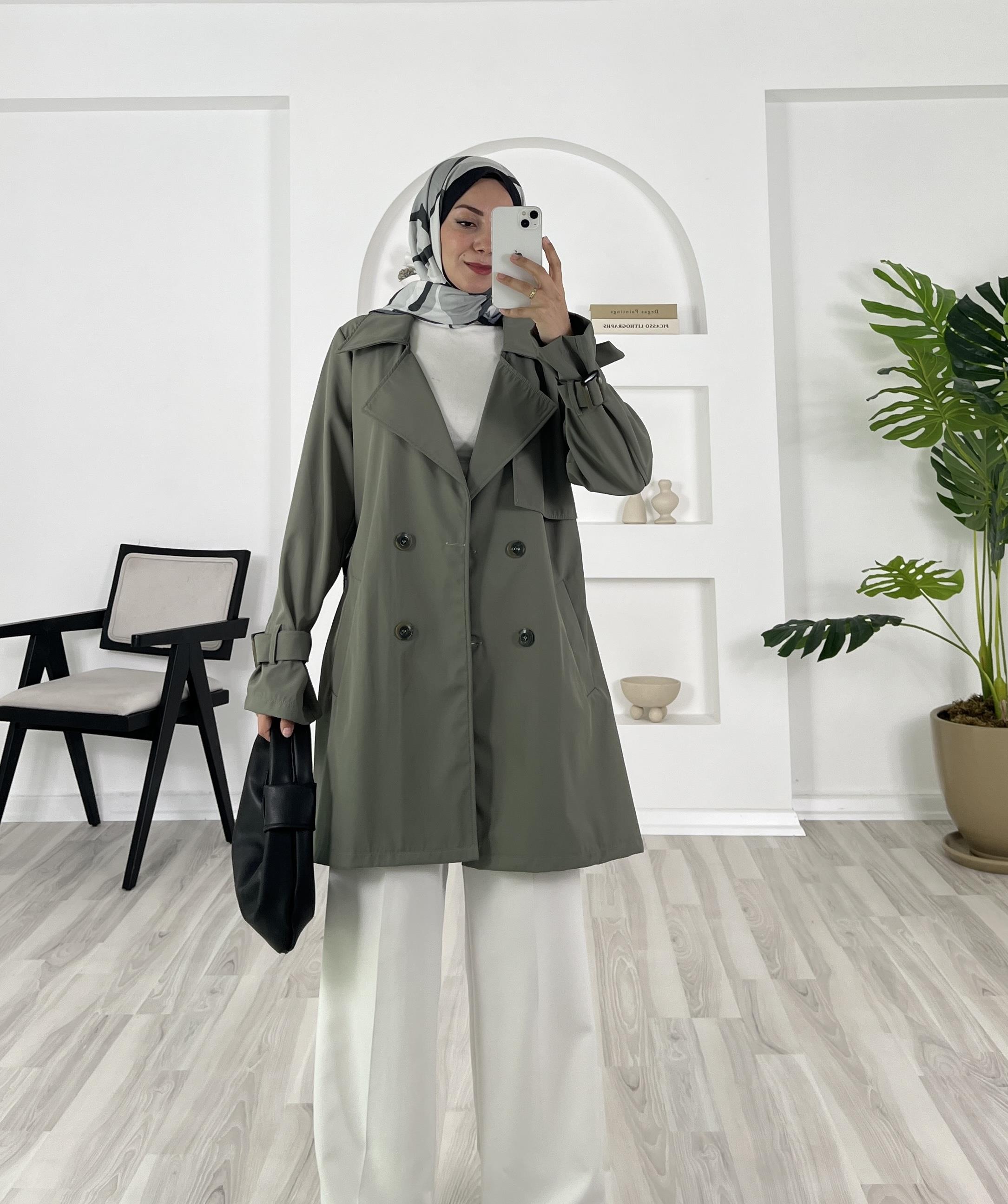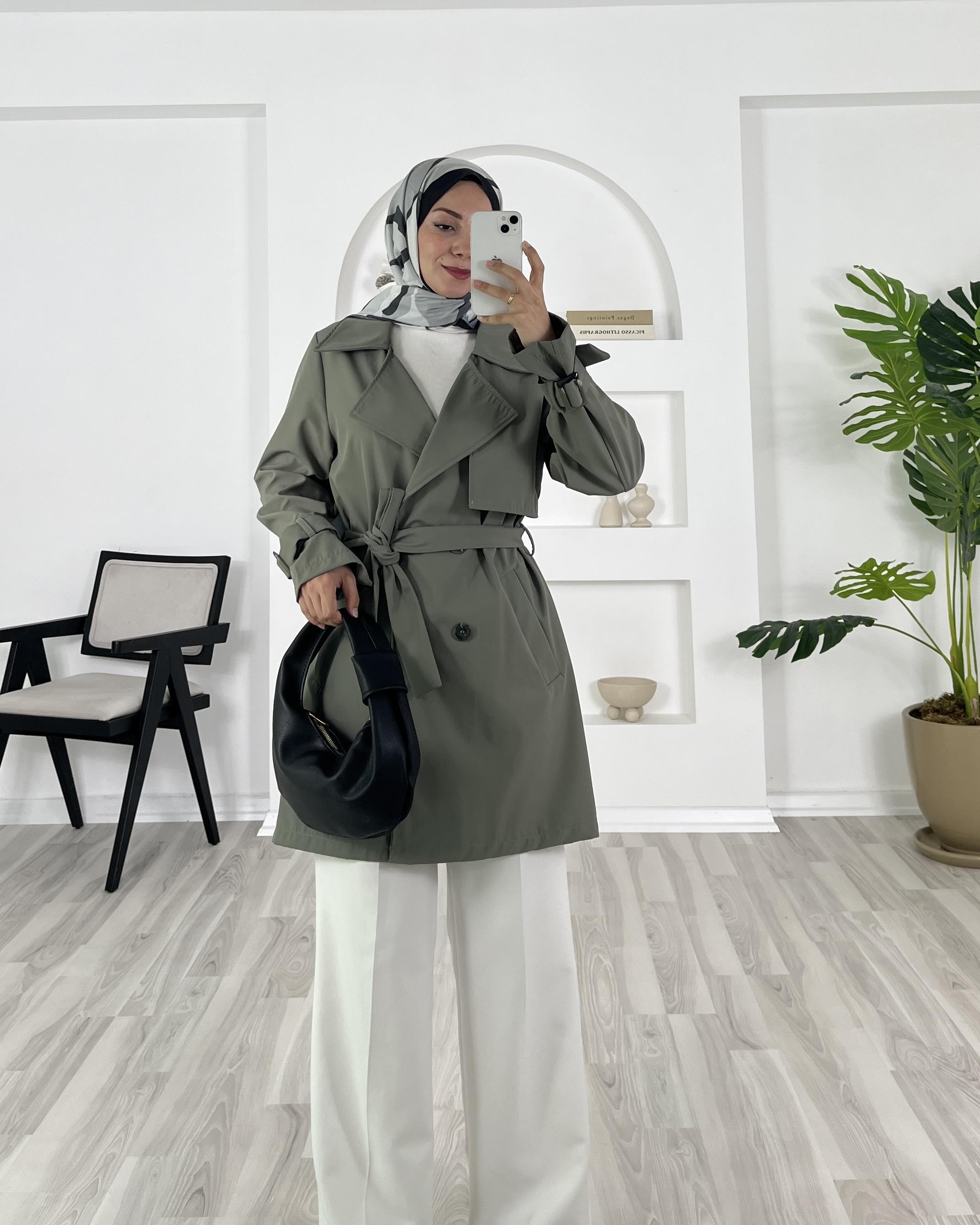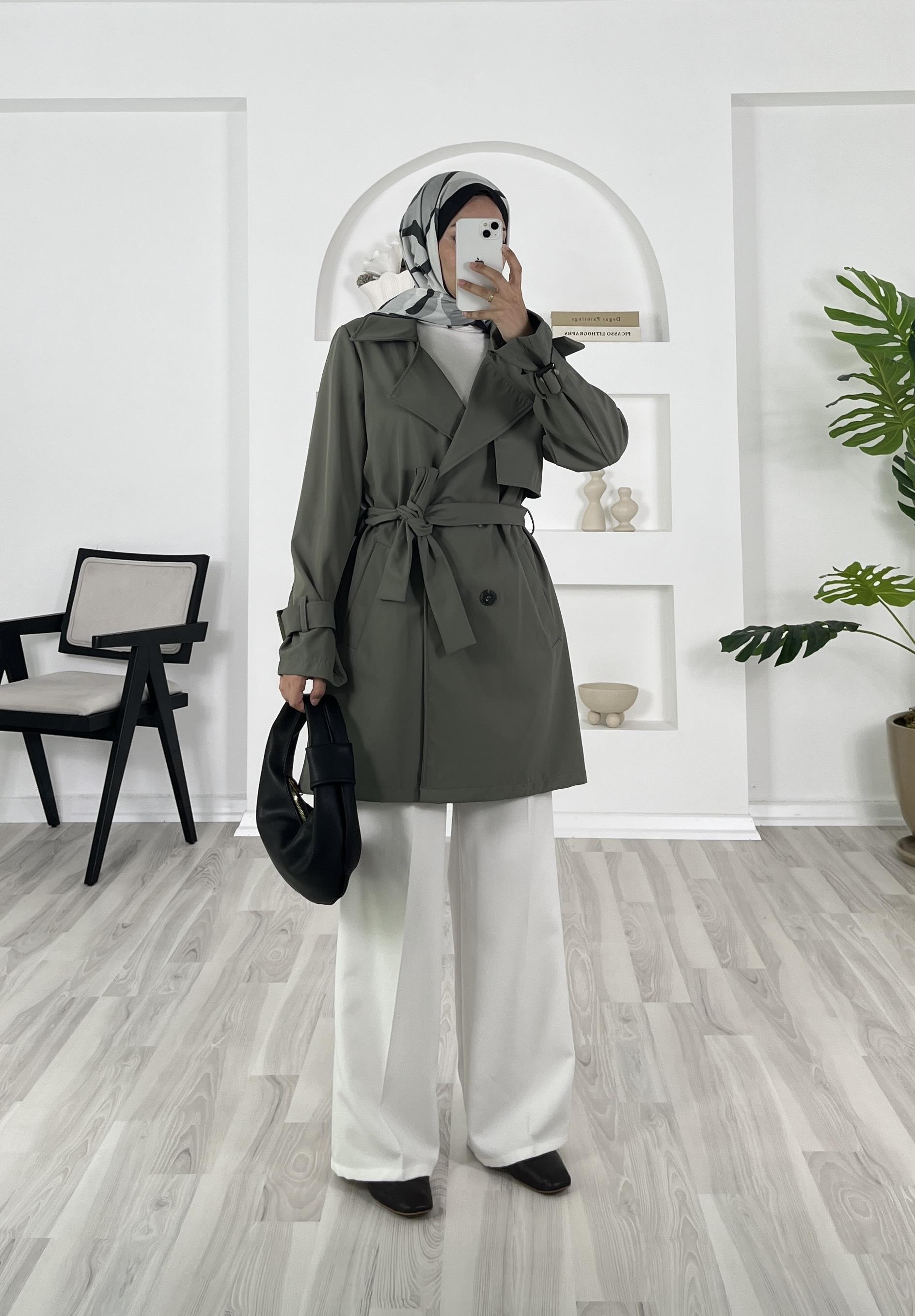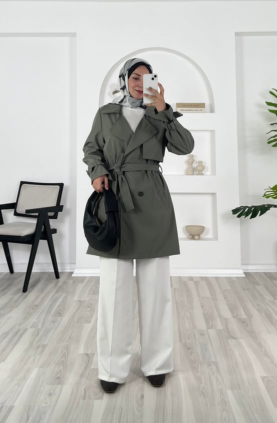 bilek ucu kemerli kısa trenç