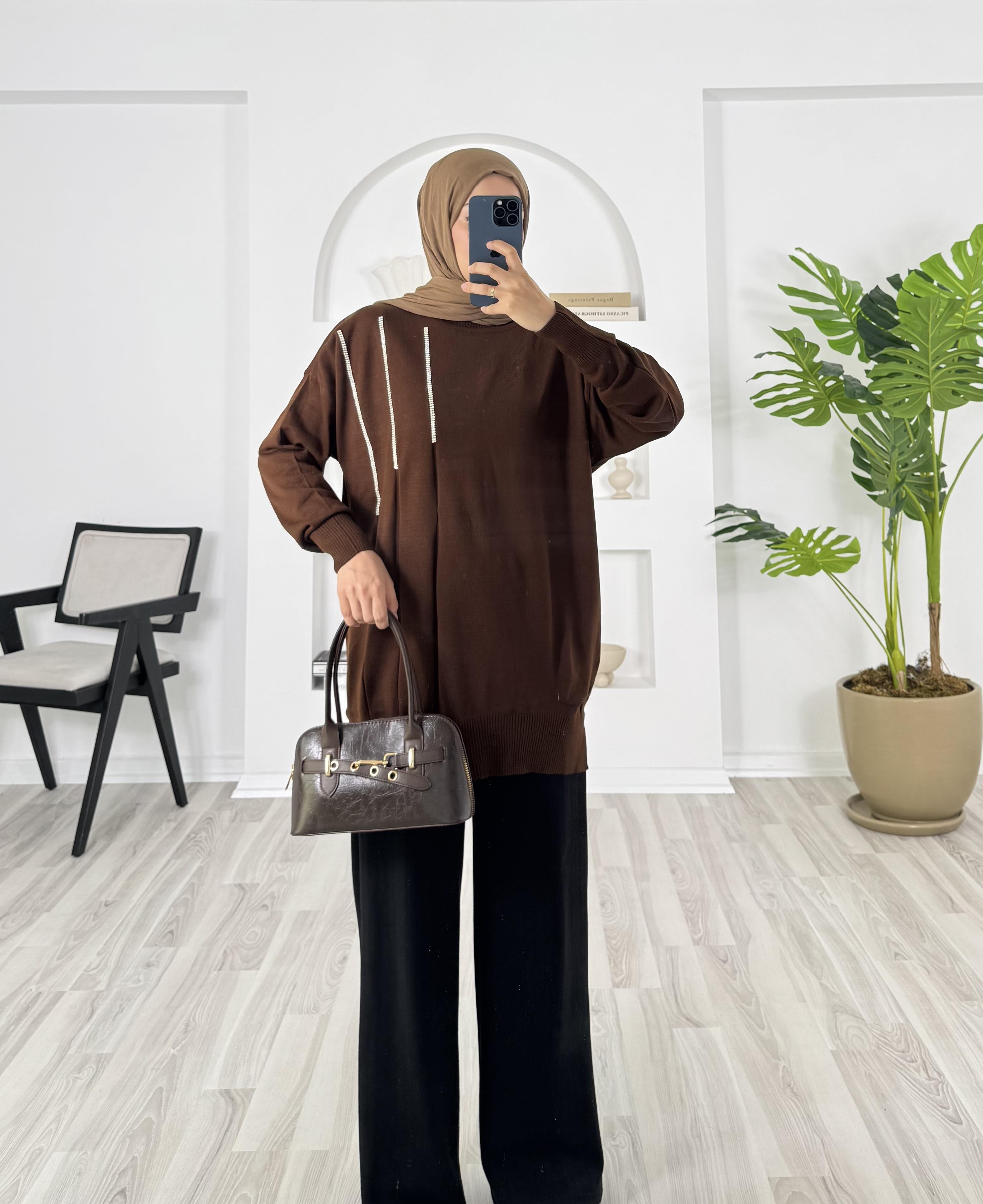 2505 önü taşlı triko - acı kahve (2505)