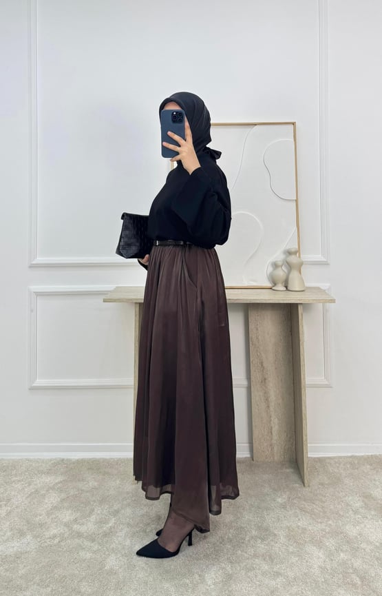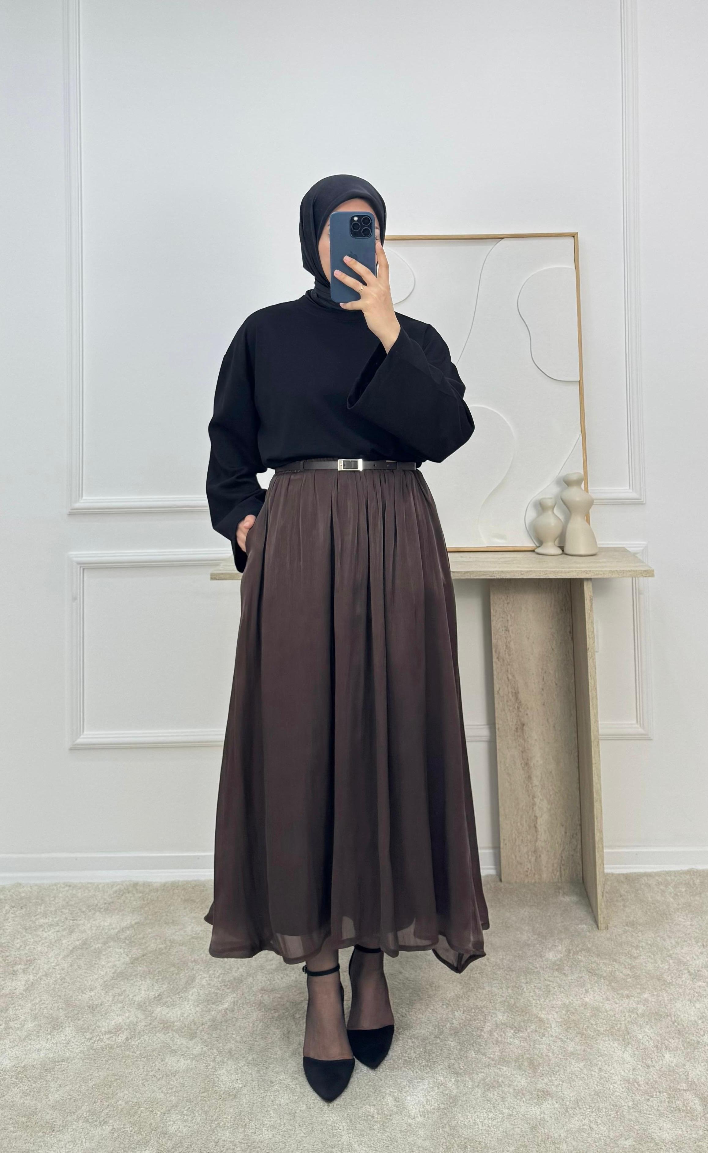 2522-organize kumaş cepli kemerli etek-acı kahve (2522)
