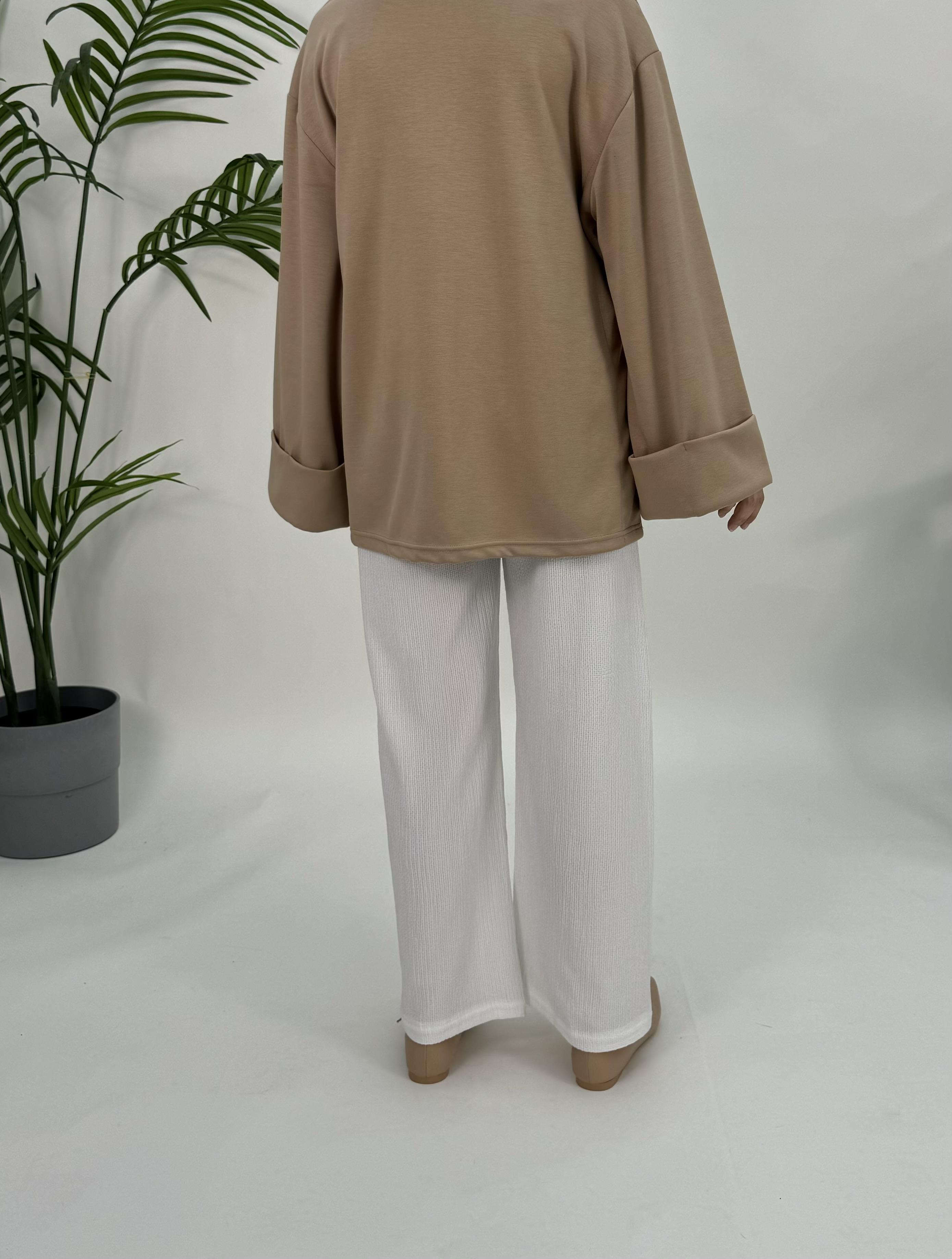 2562-bürümcük kumaş-beli lastikli pantolon-beyaz (2562)