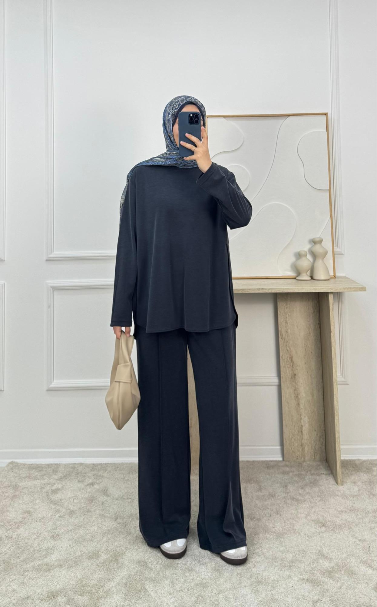 oysho kumaş yanı yırtmaç detaylı pike pantolonlu takım