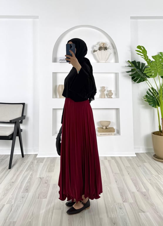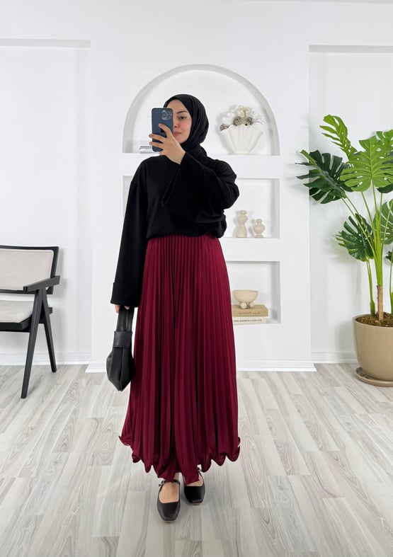 2738-beli lastikli altı güpürlü etek-bordo (2738)