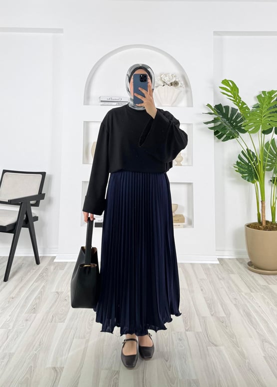2738-beli lastikli altı güpürlü etek-lacivert (2738)
