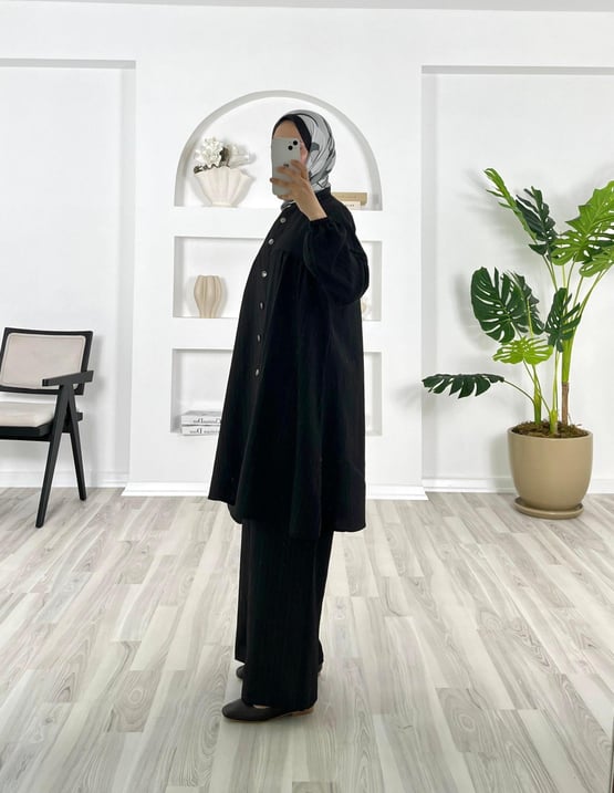 2756-kirinkıl kaş kumaş-boydan düğmeli pantolonlu takım-siyah (2756)