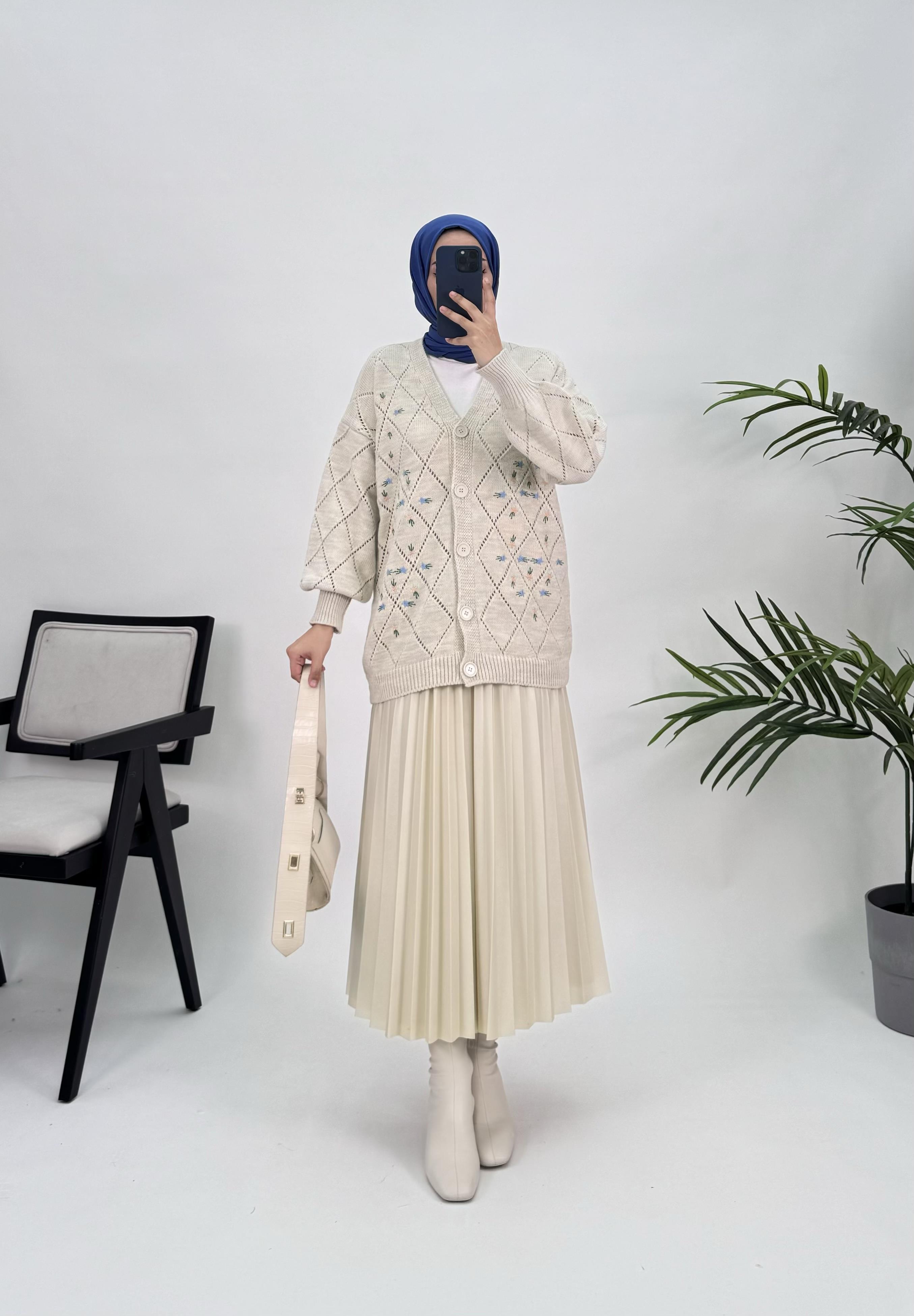 2862 A228+Baklava Desenli Çiçekli Triko Hırka Taş (2862)