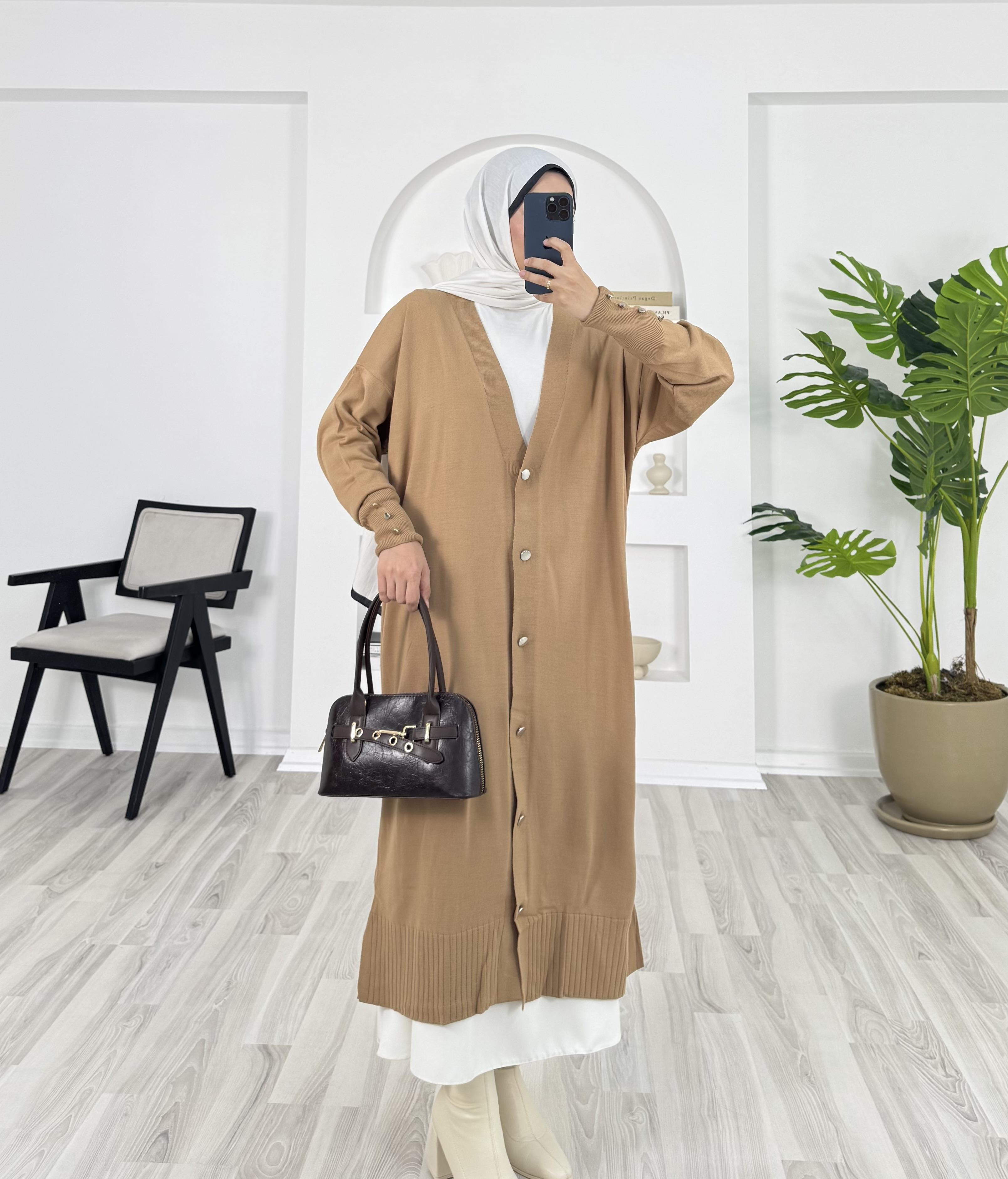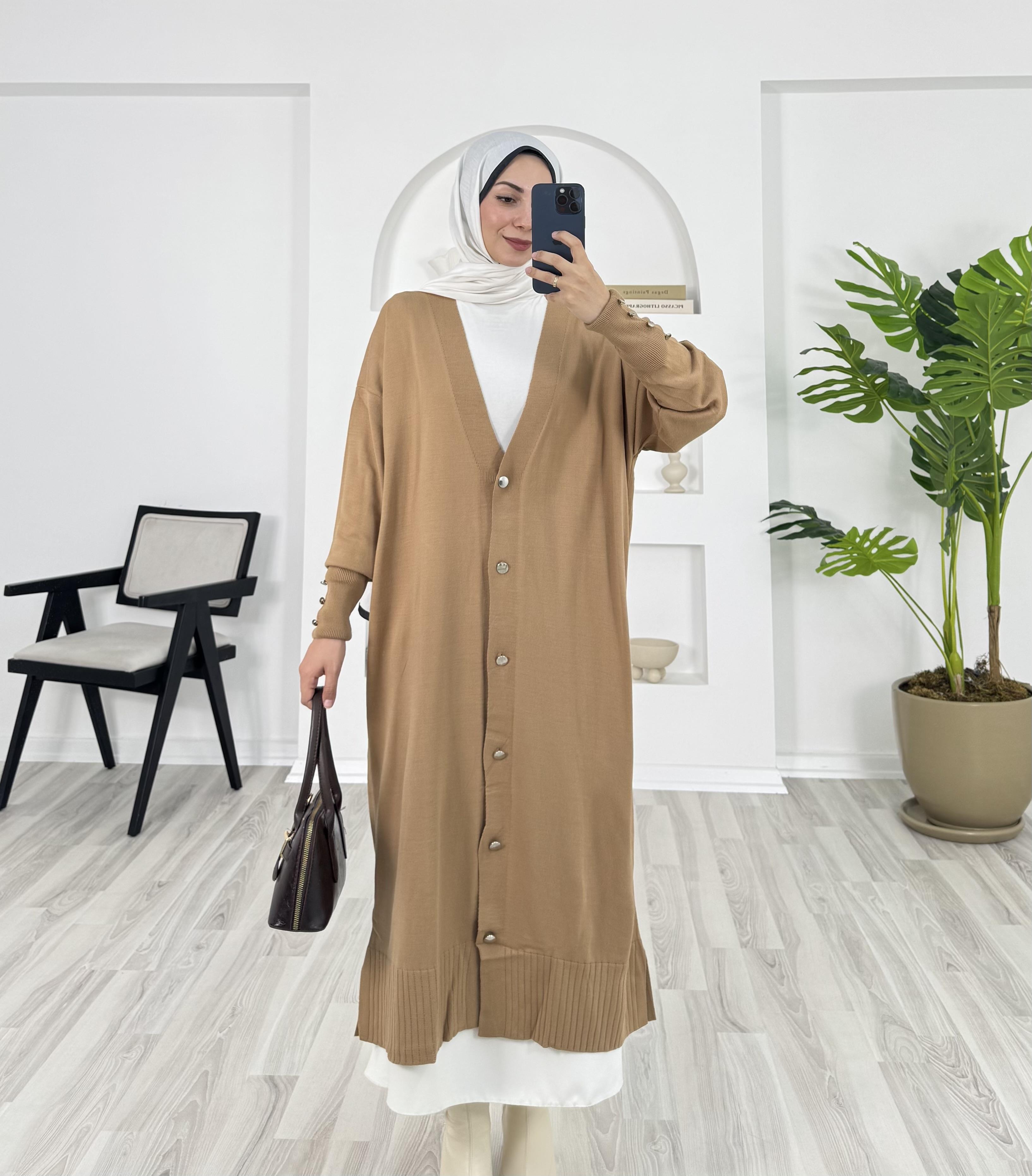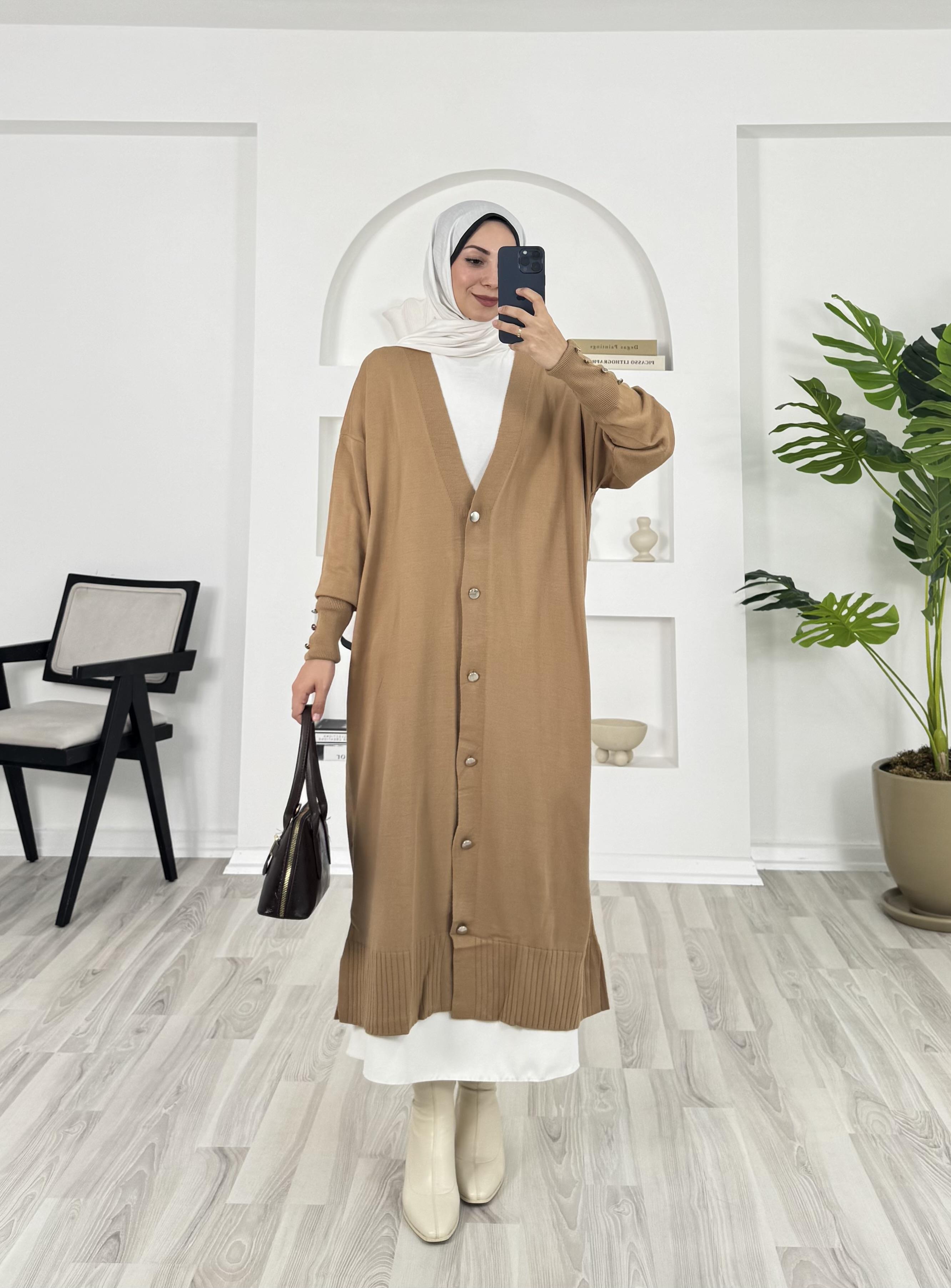 3124 - kolları dugme detaylı uzun triko hırka - sütlü kahve (3124)