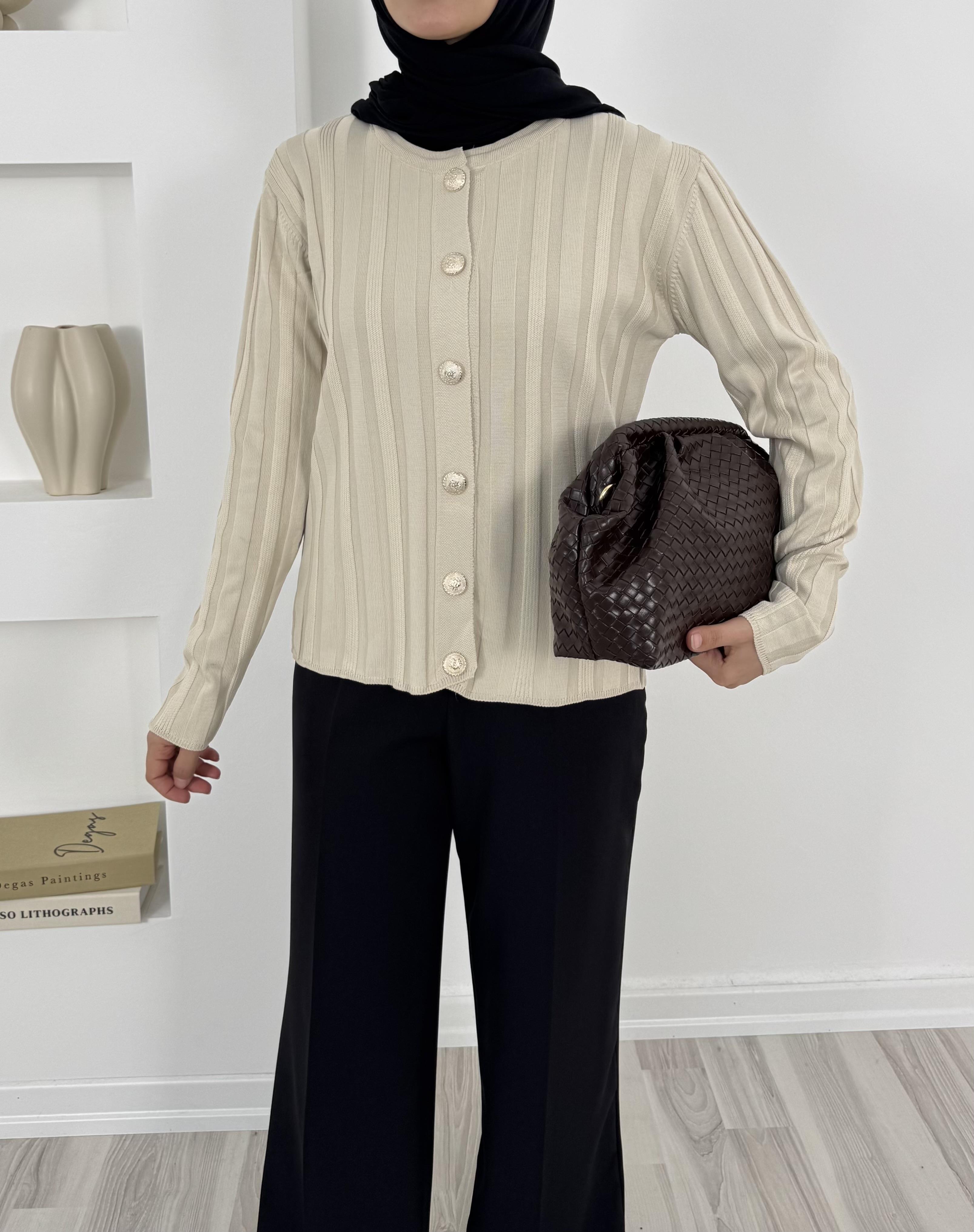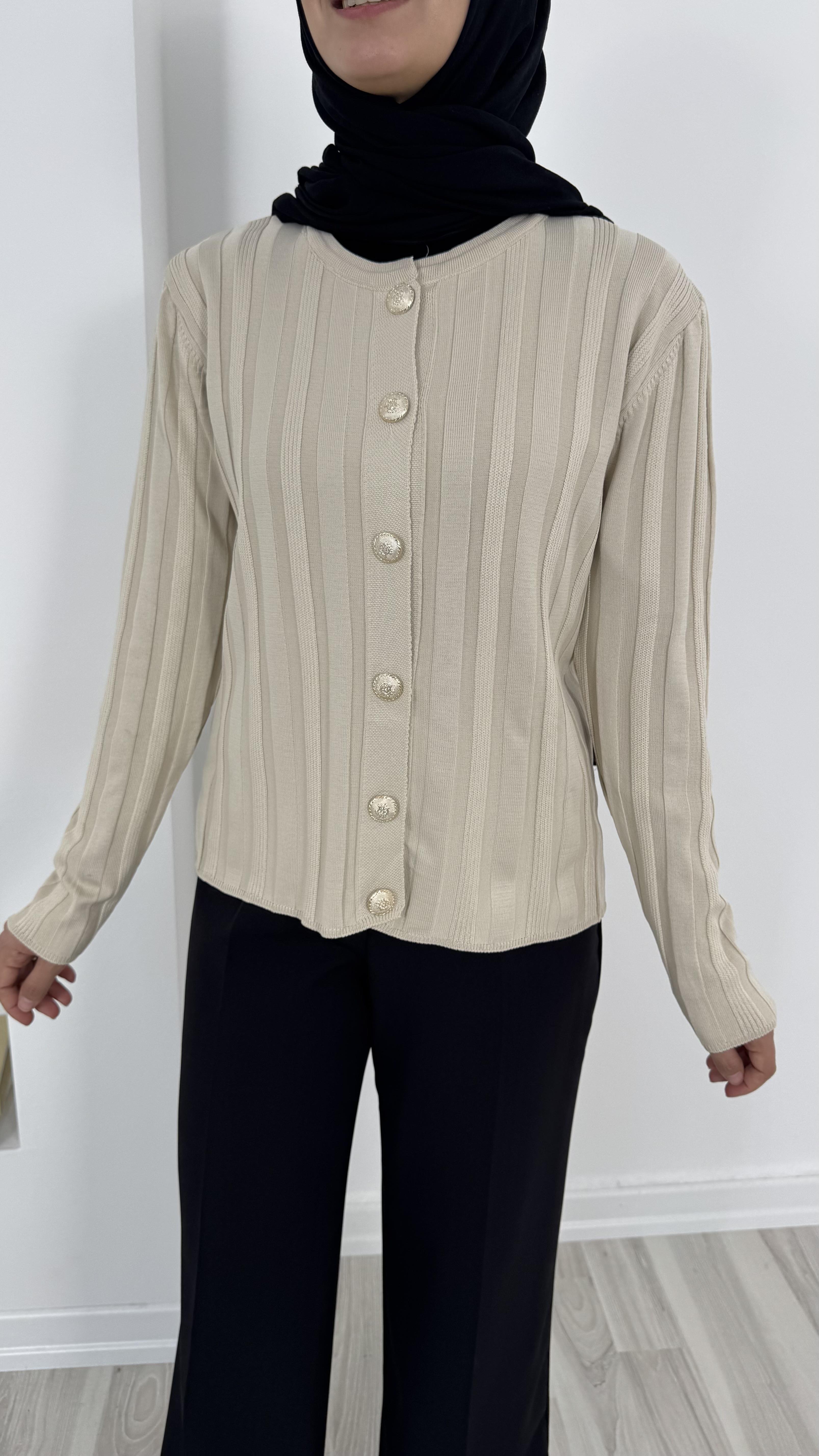3204 kendinden çizgili triko hırka