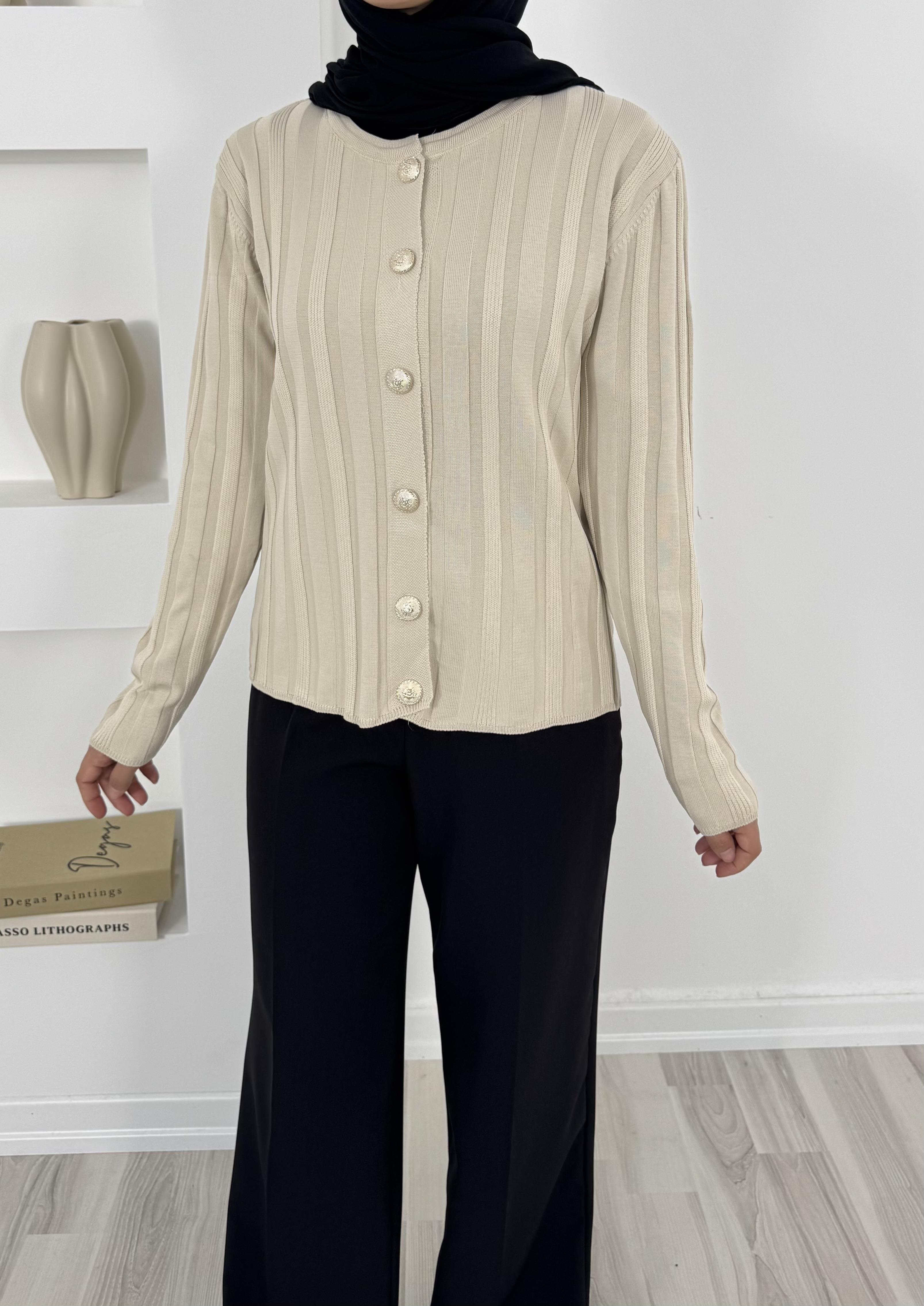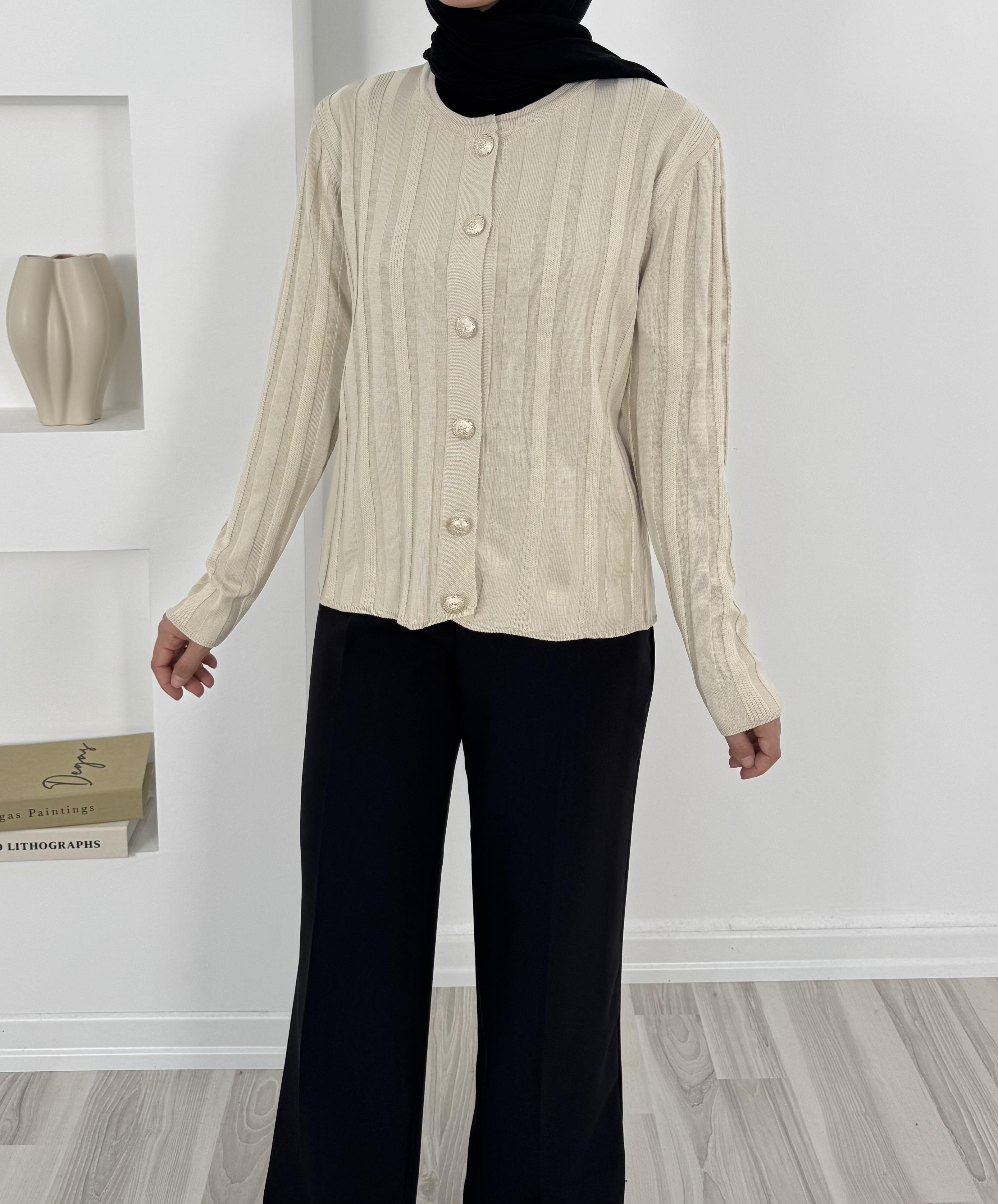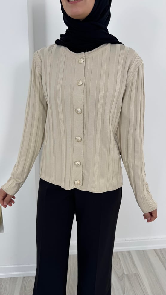 3204 kendinden çizgili etek üstü triko hırka-krem (3204)