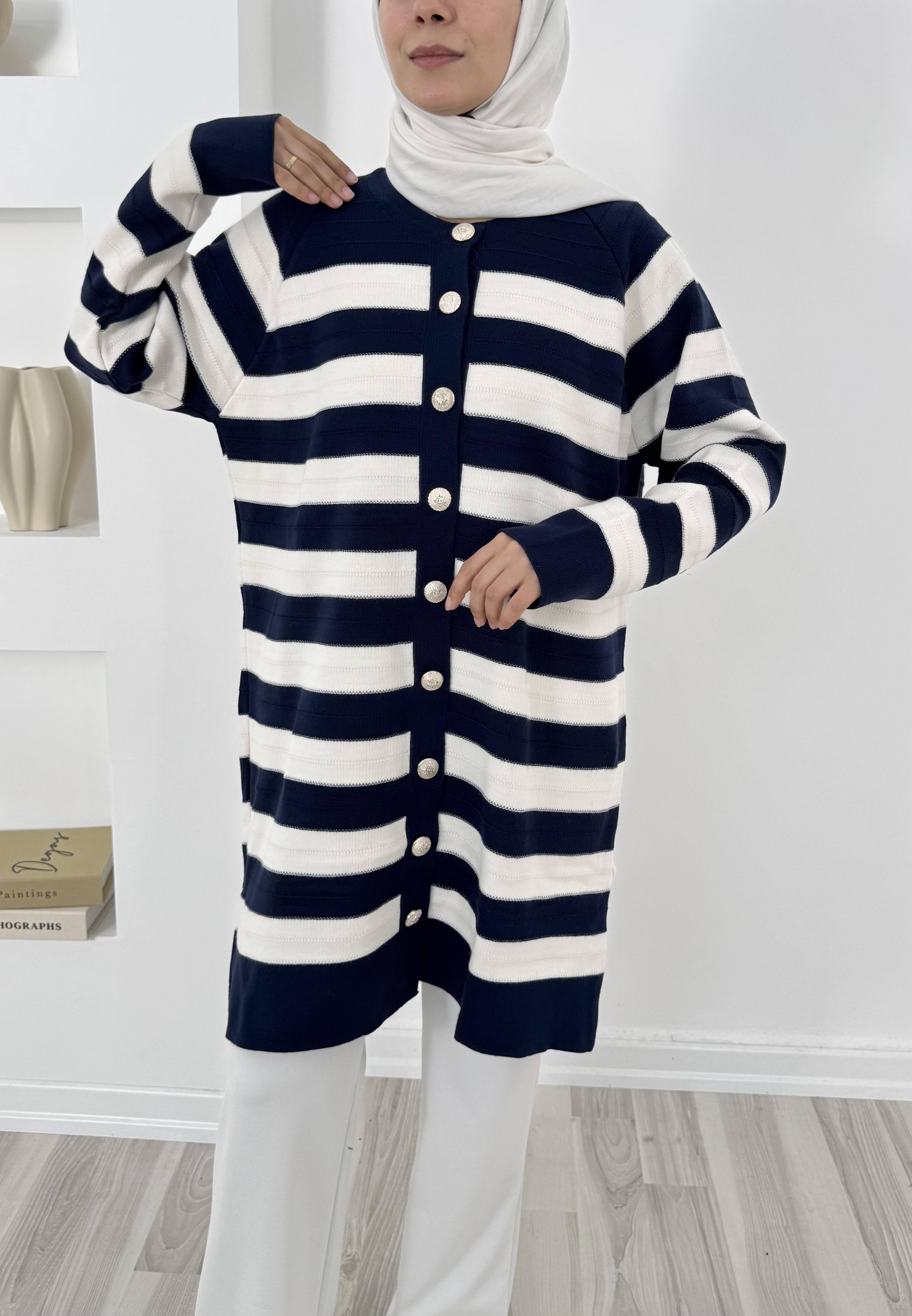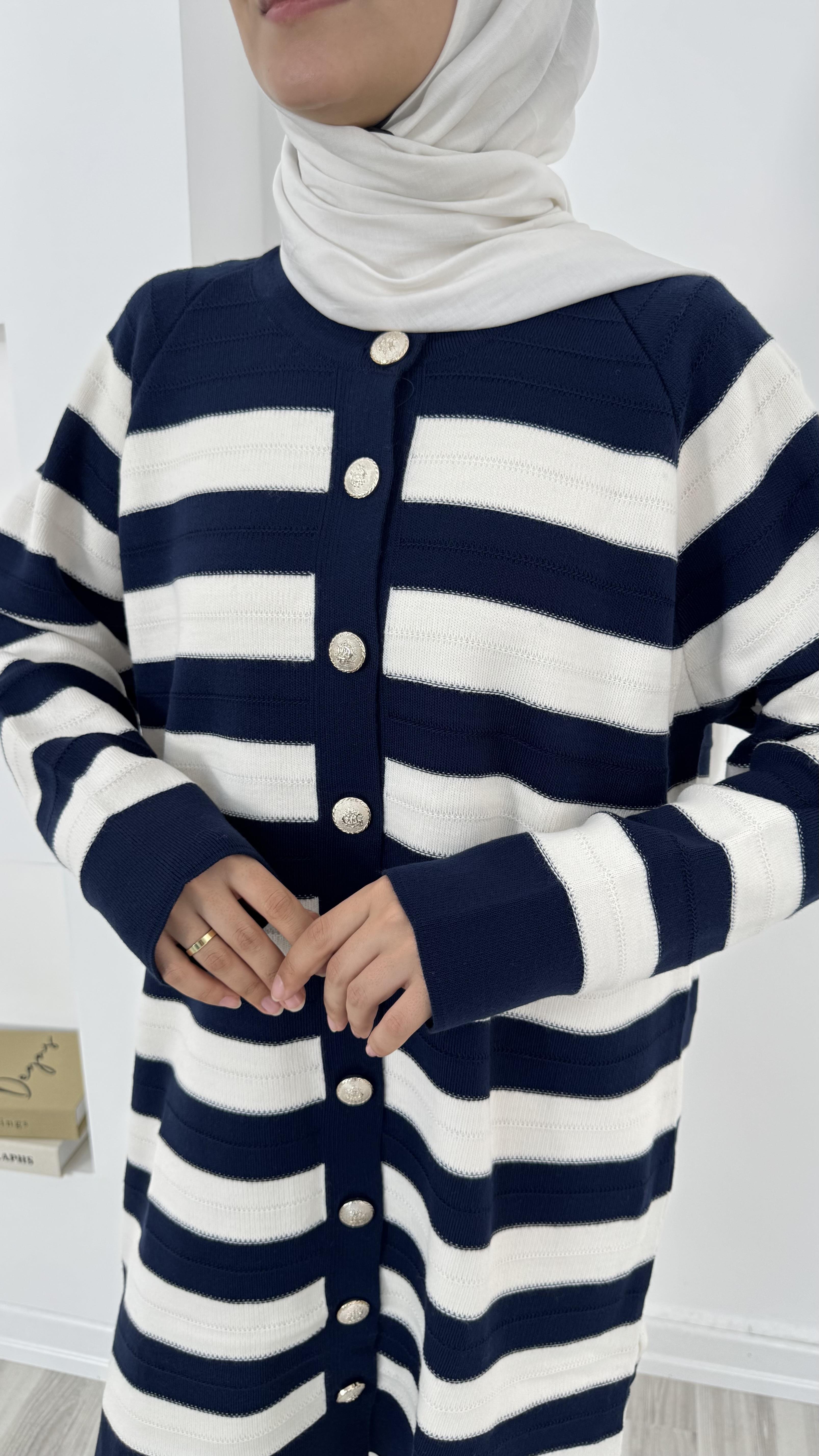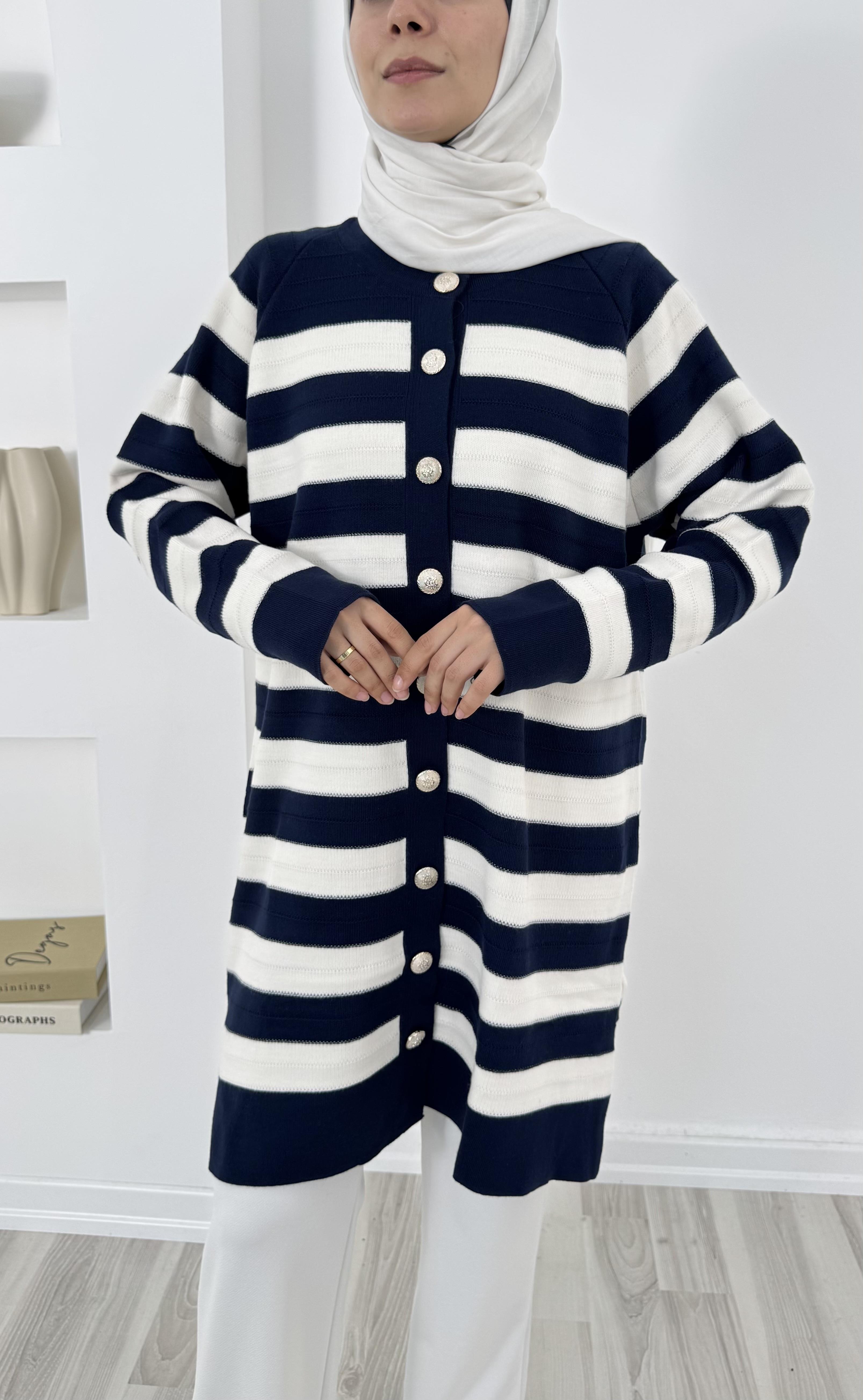 3210 çizgili triko düğmeli triko hırka lacivert (3210)