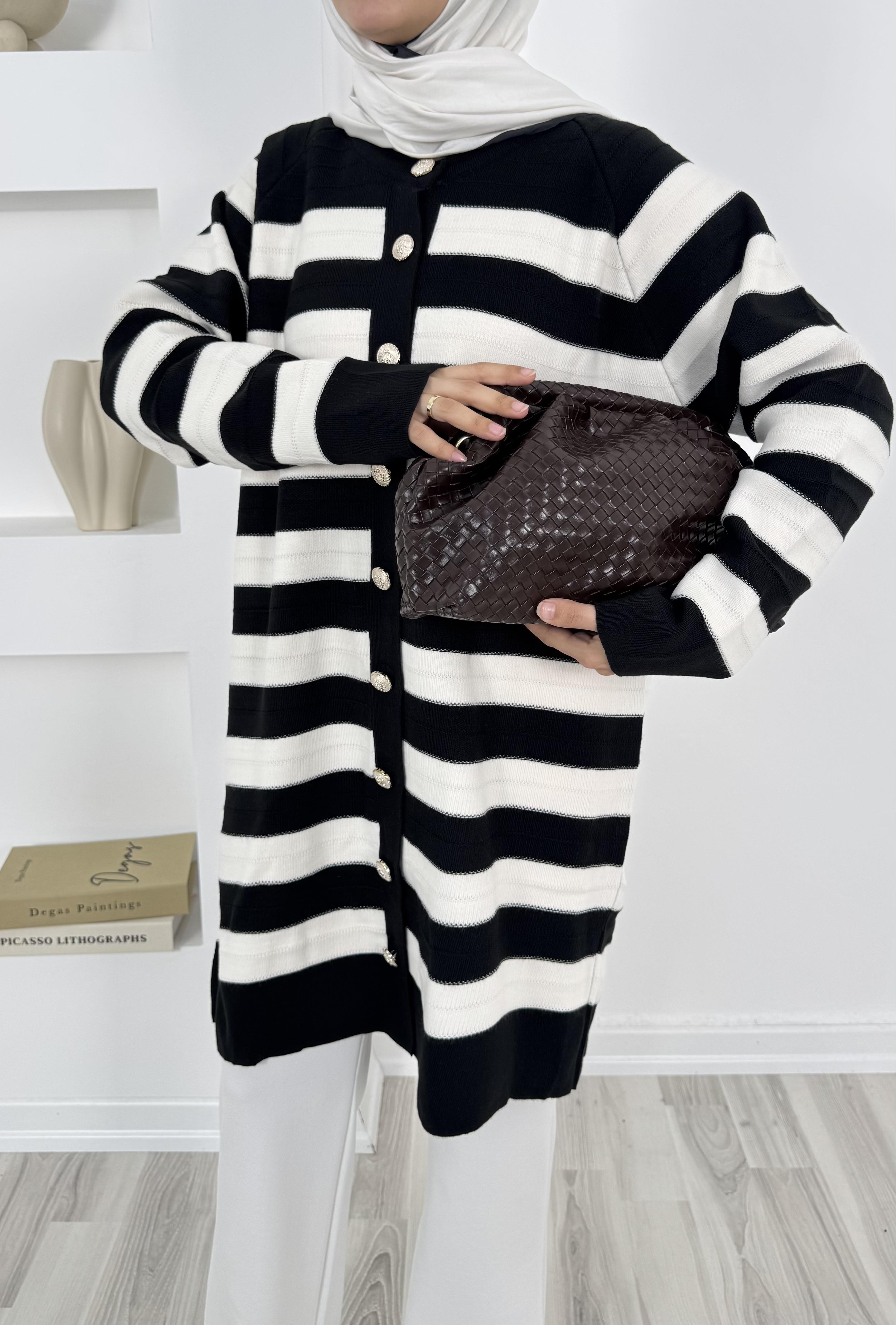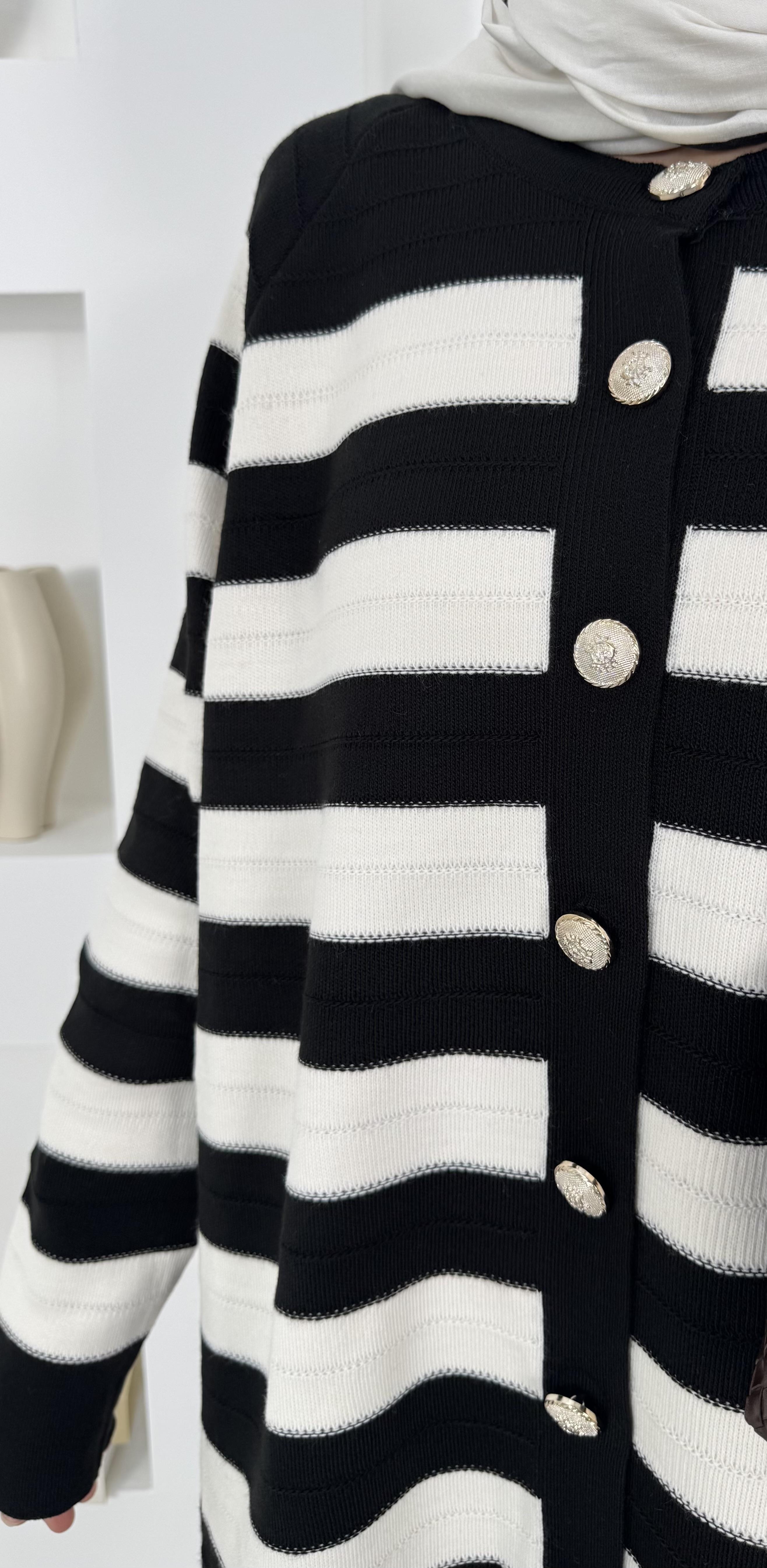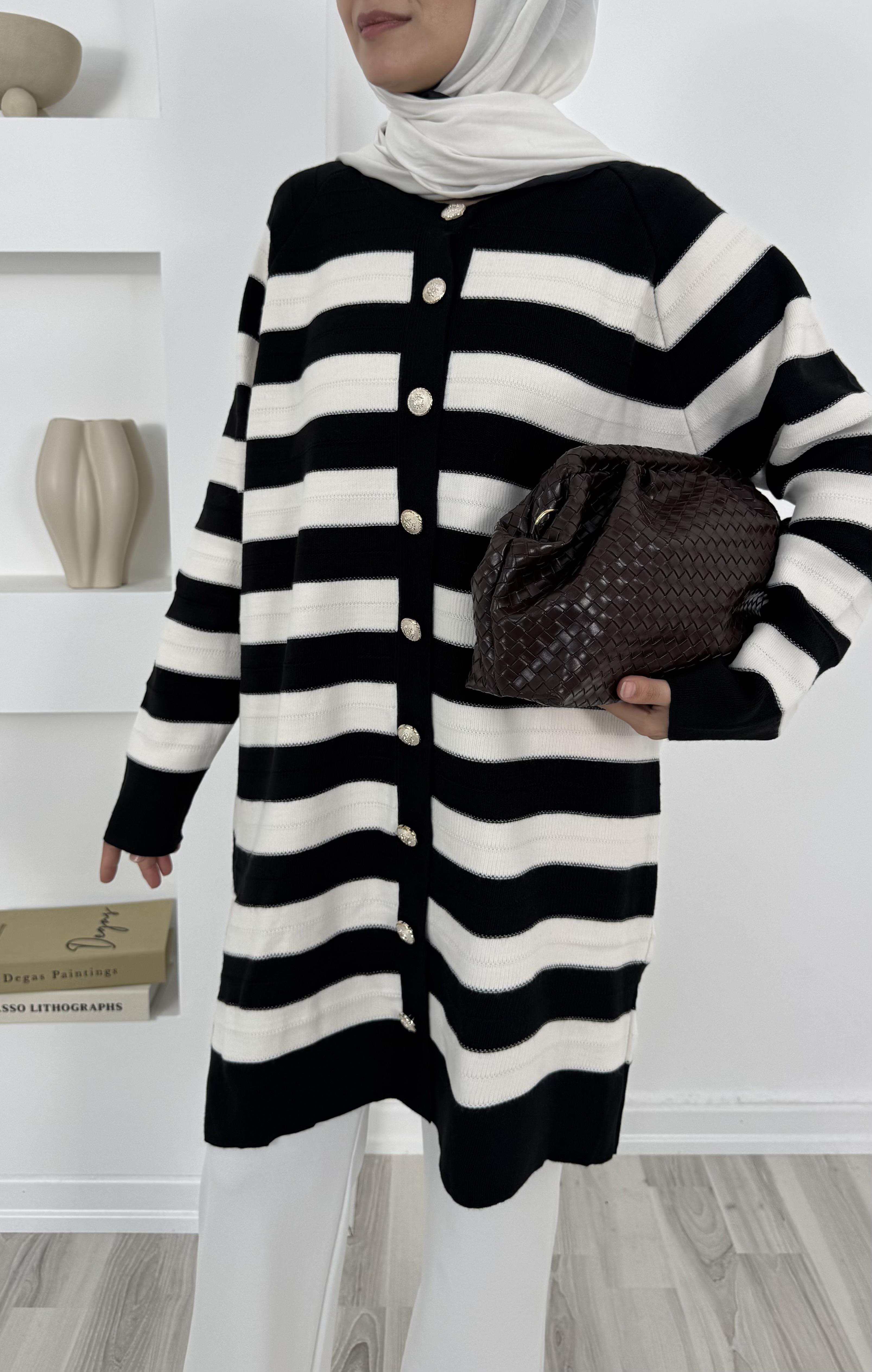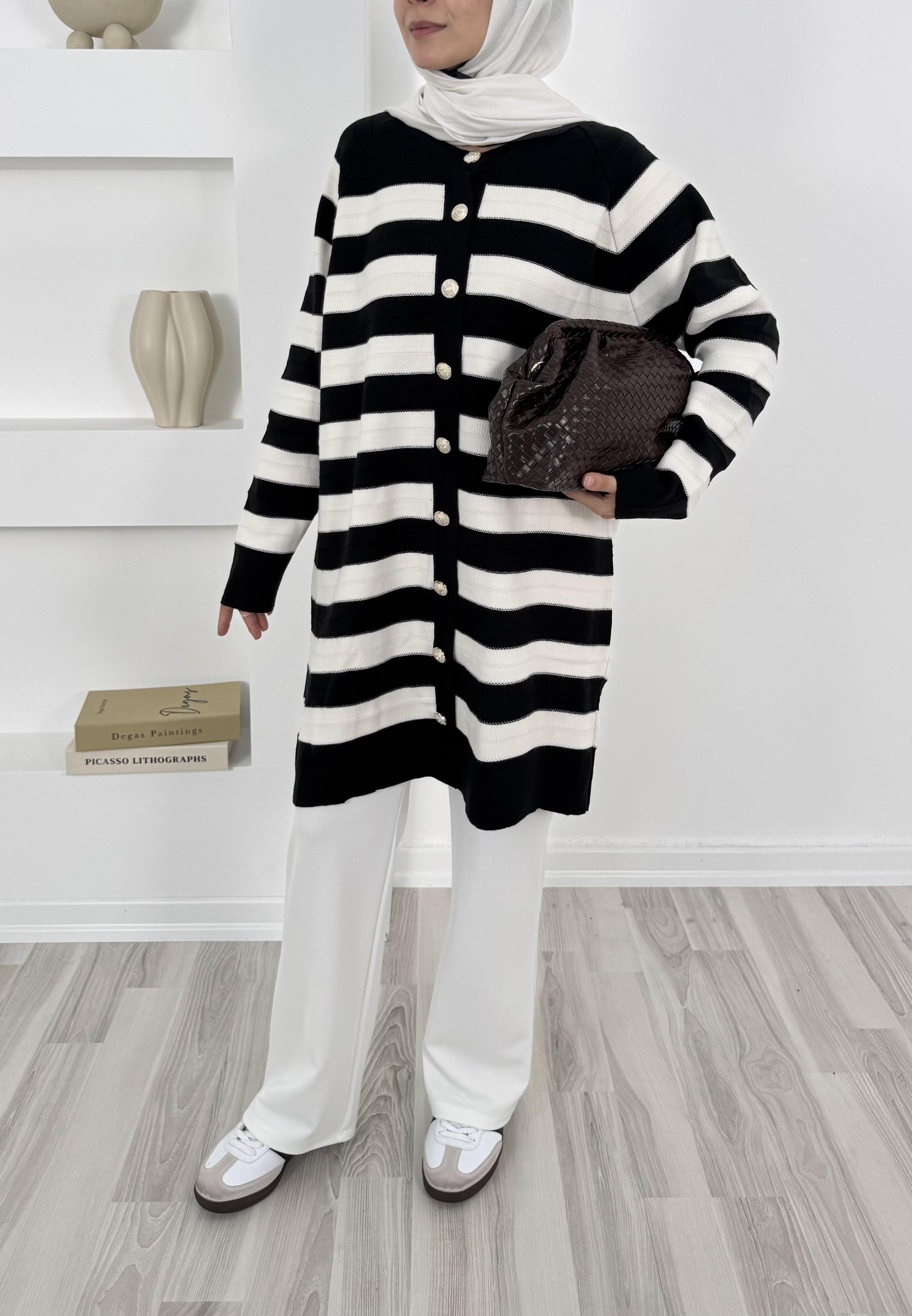 3210 çizgili triko düğmeli triko hırka siyah (3210)