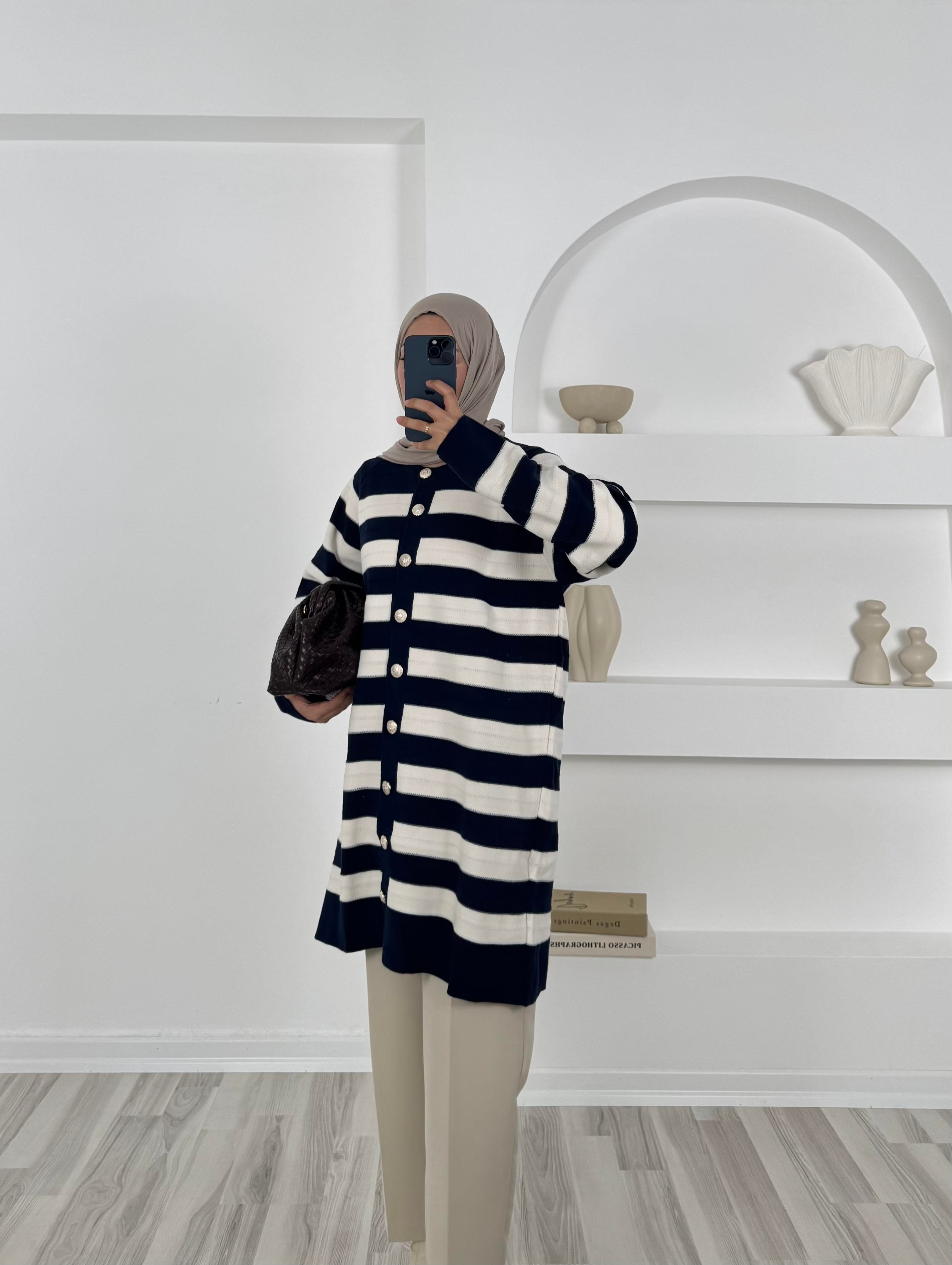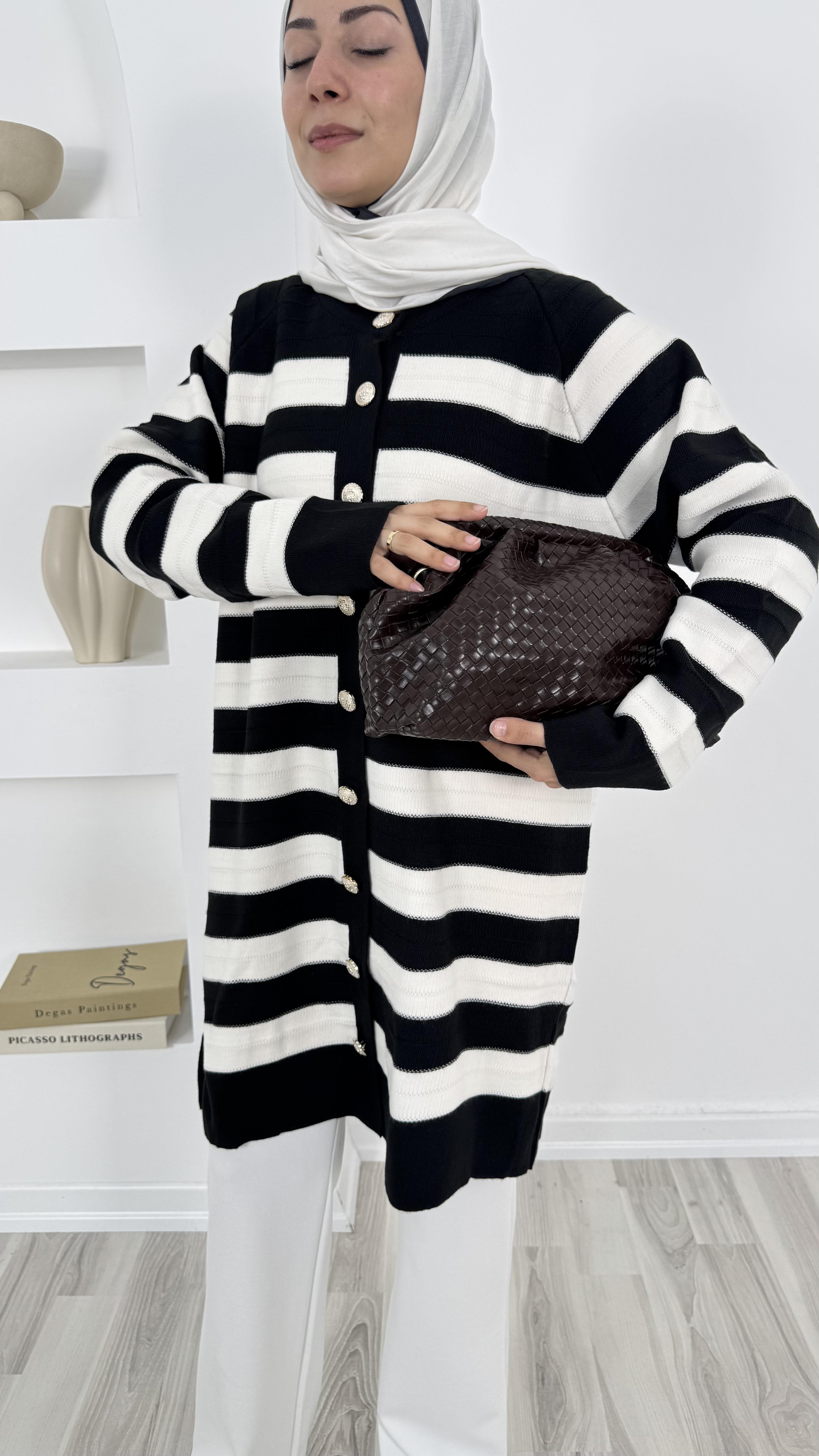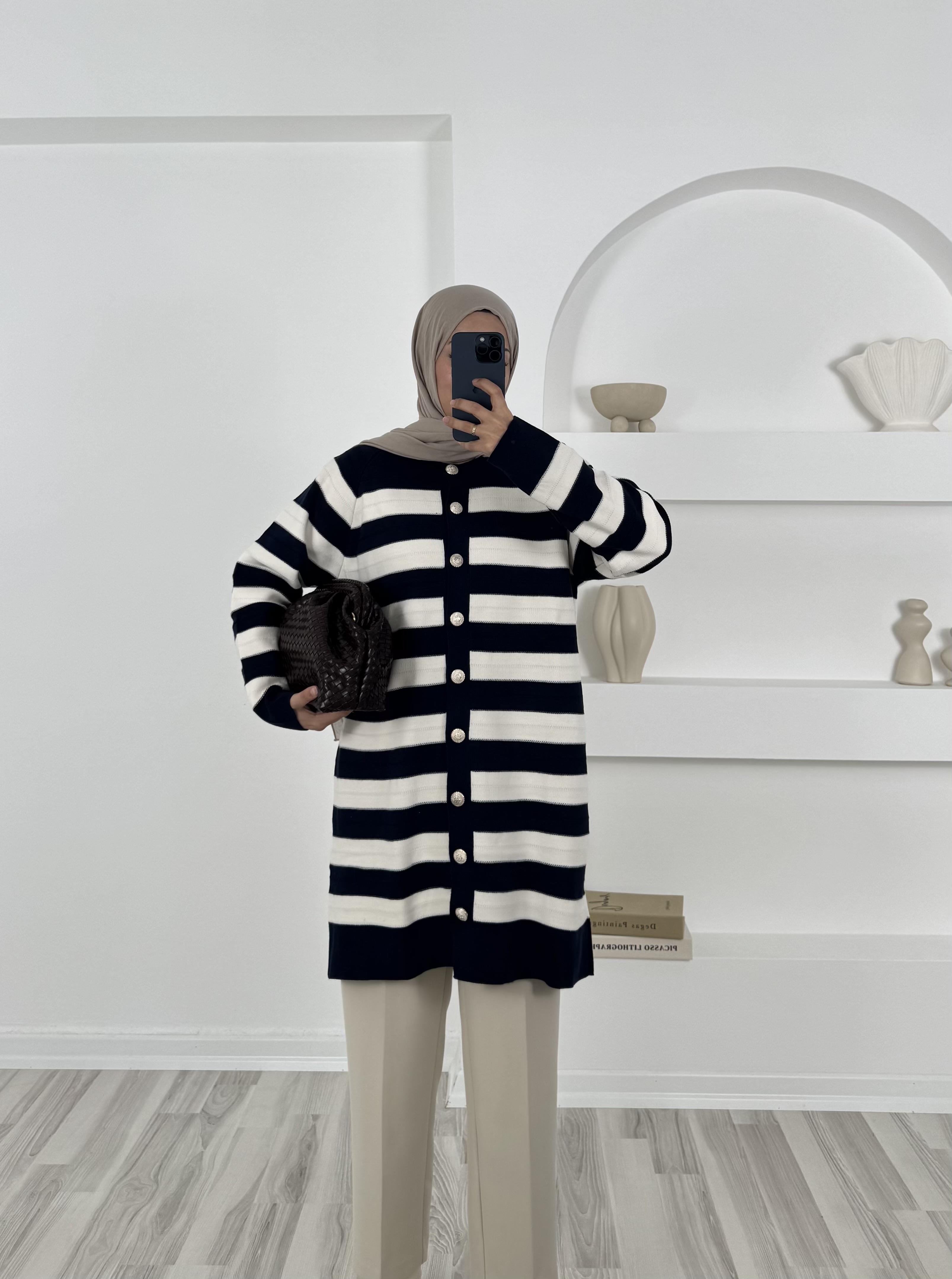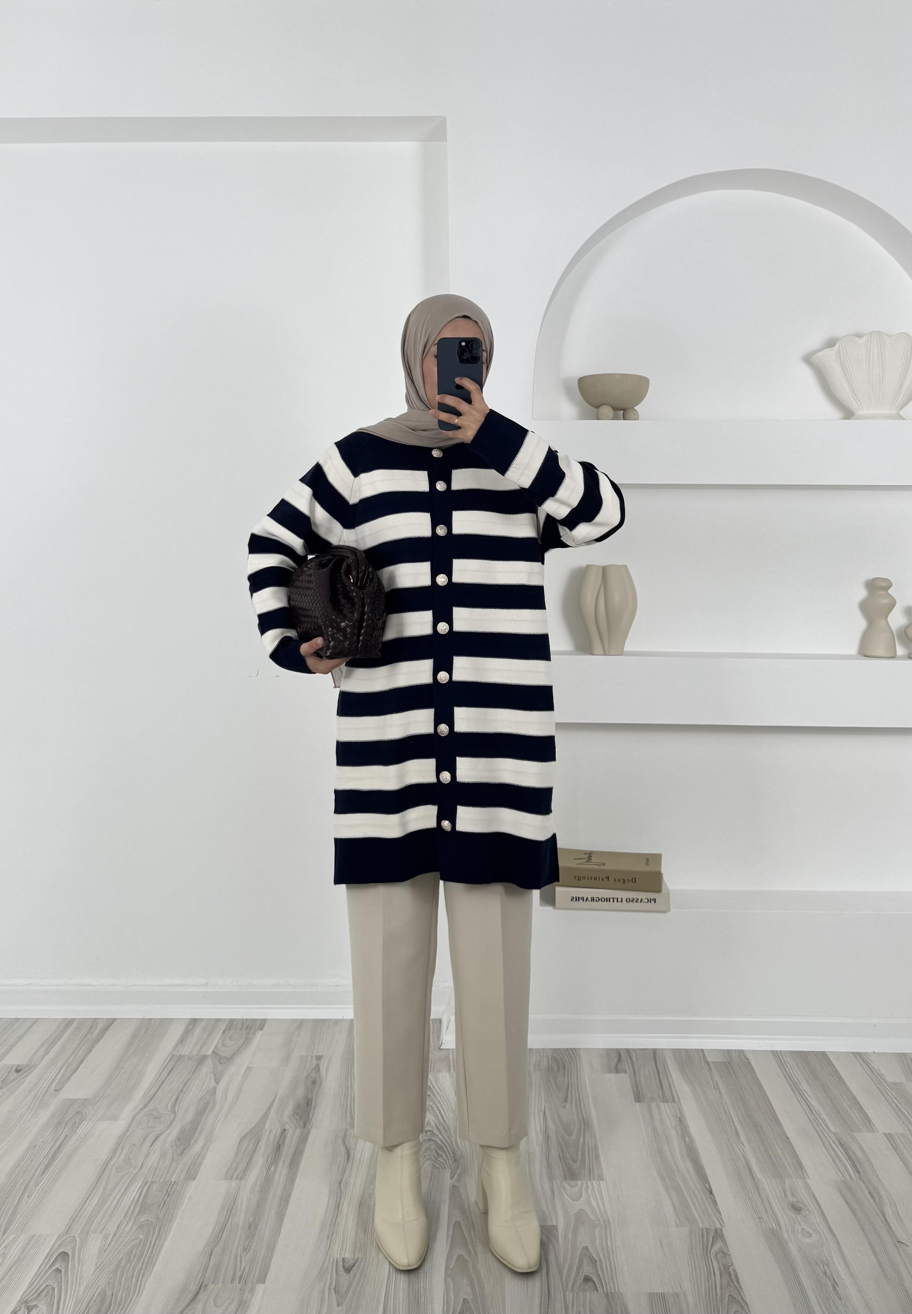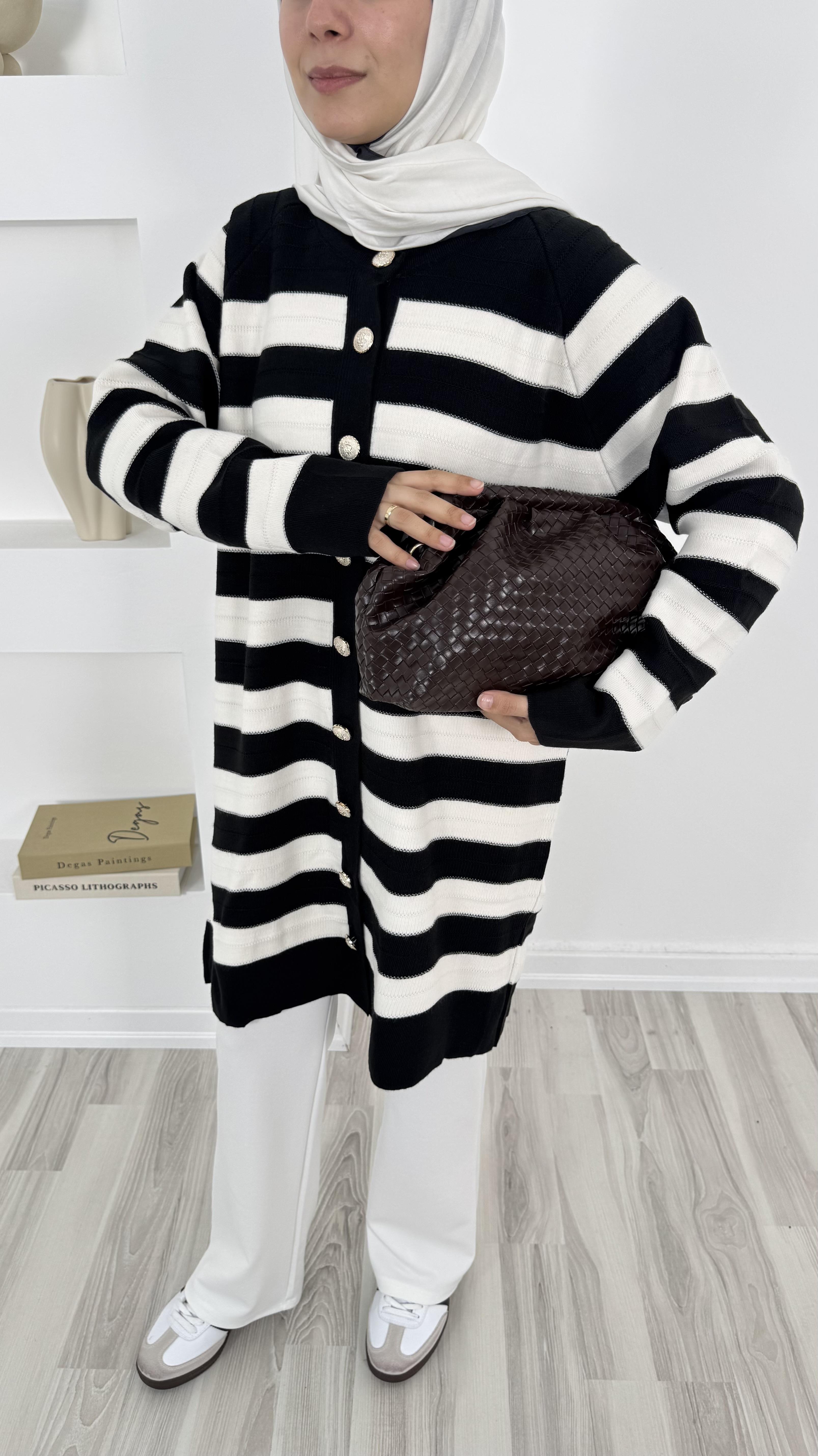 3210 çizgili triko düğmeli triko hırka siyah (3210)