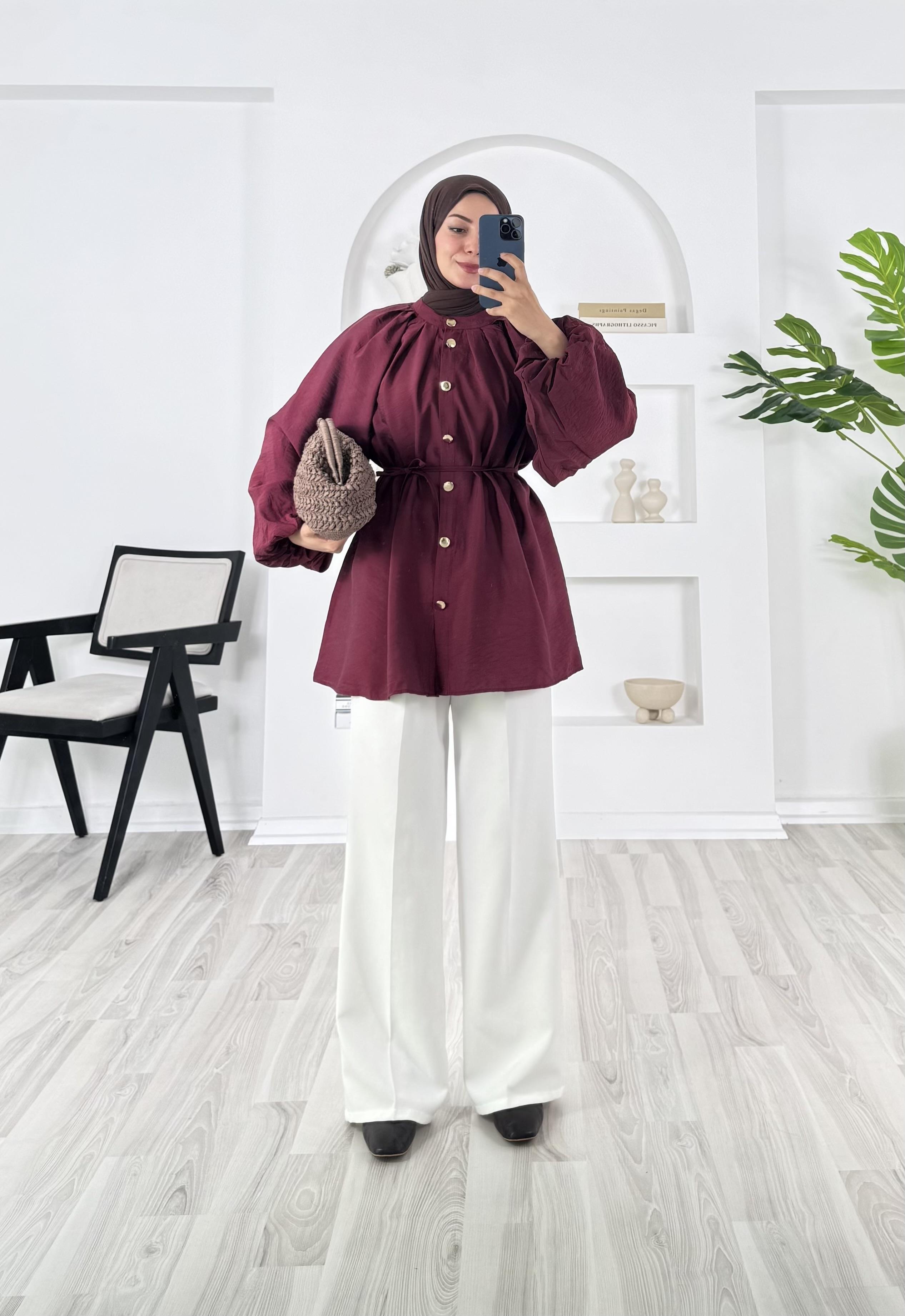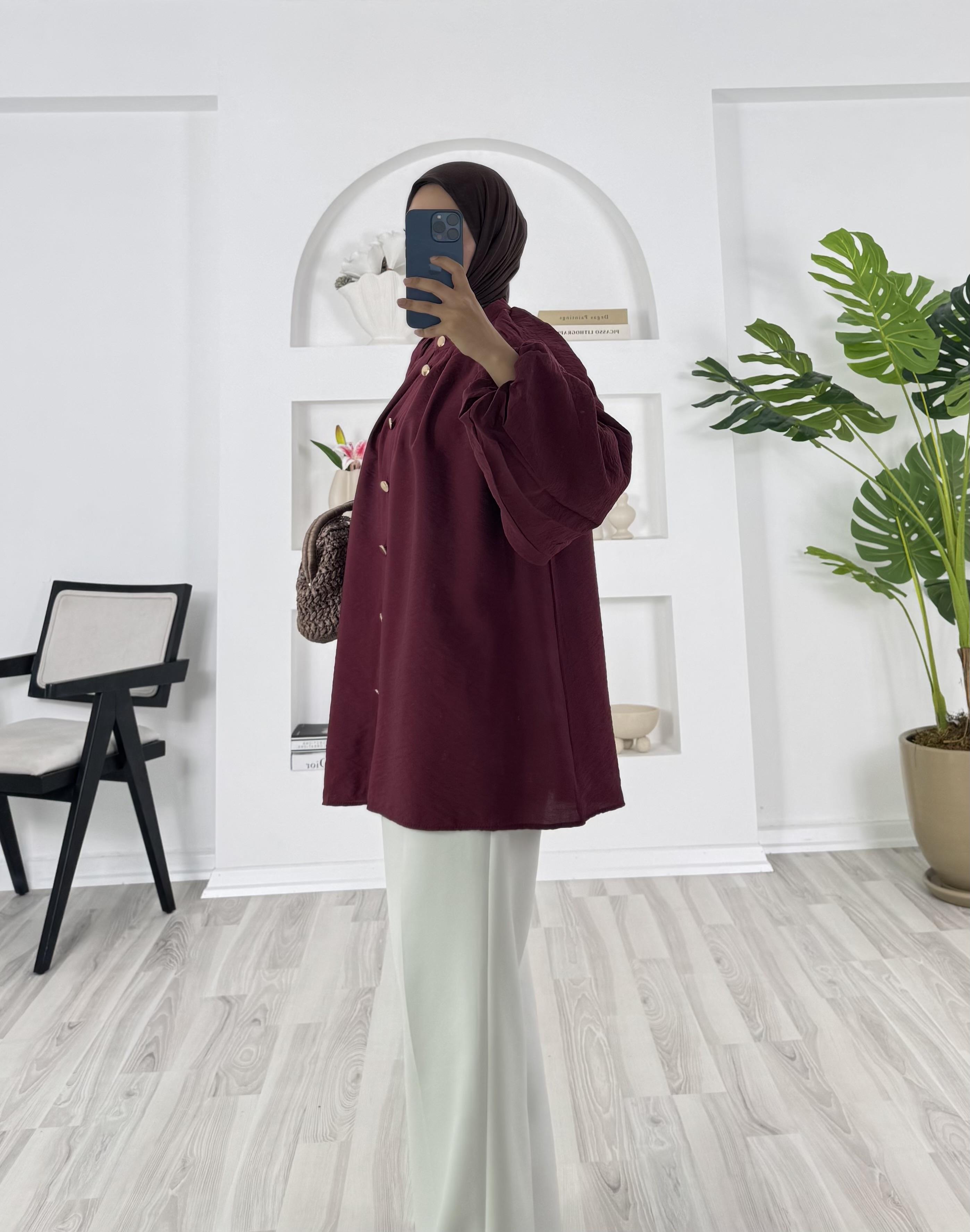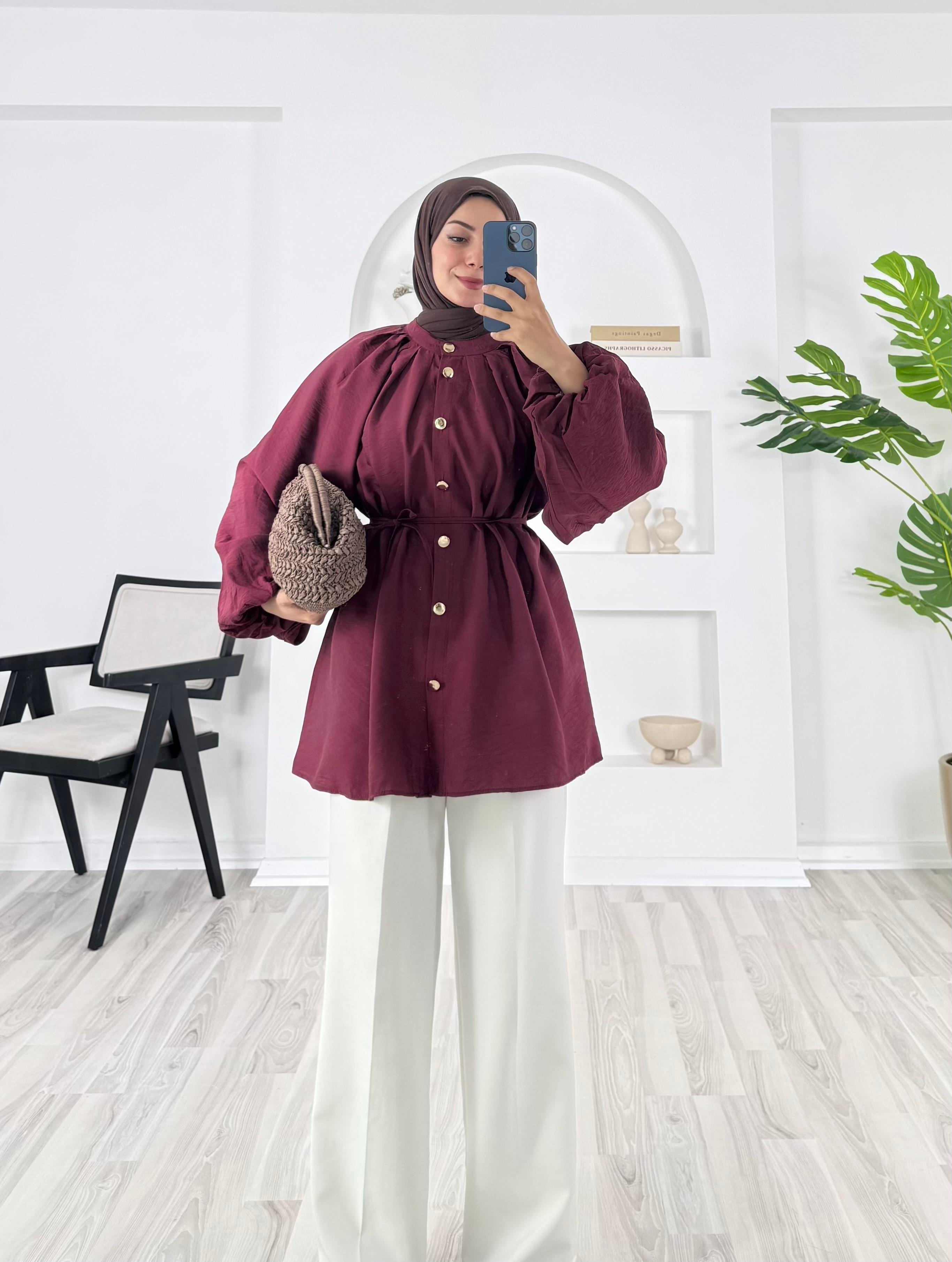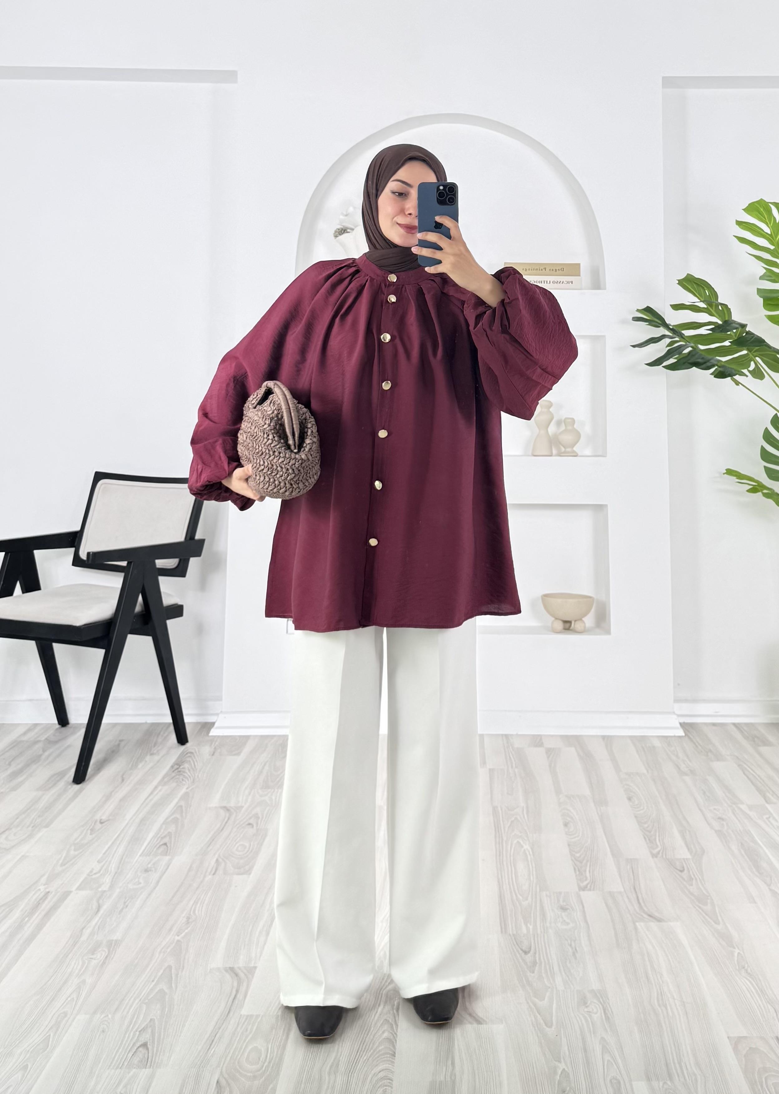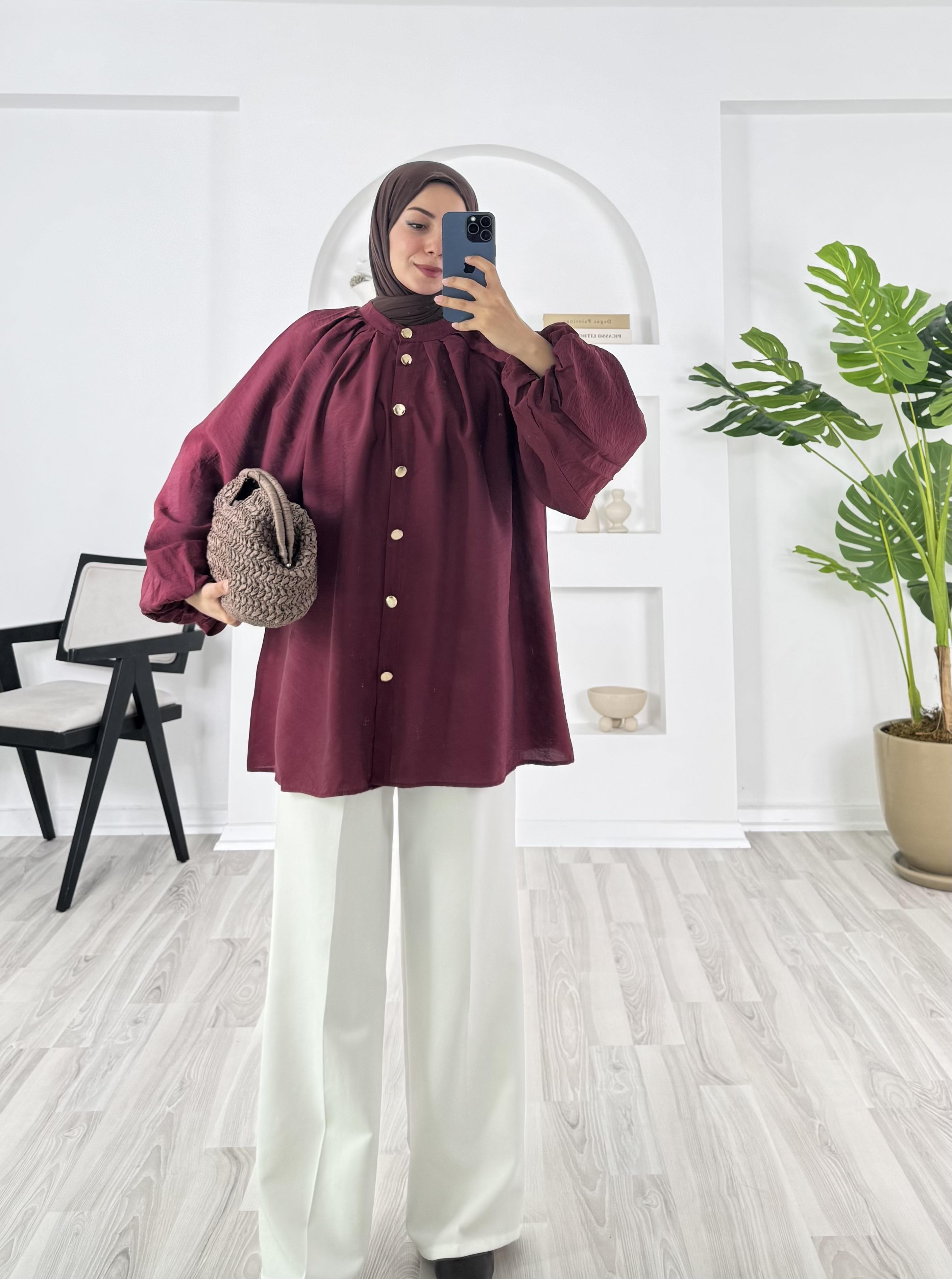 3219 - cupra kumaş balonkol salaş gömlek - bordo (3219)