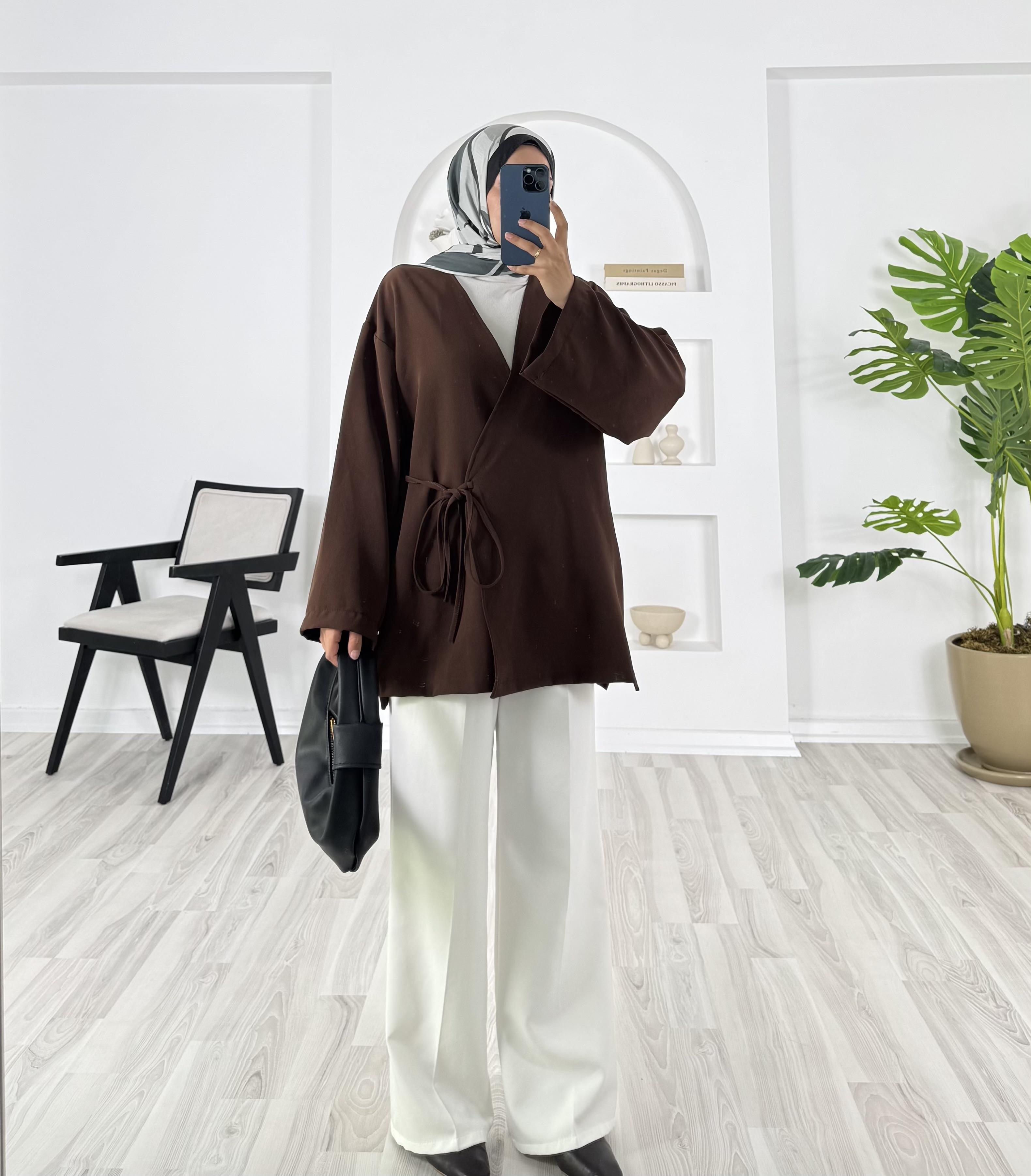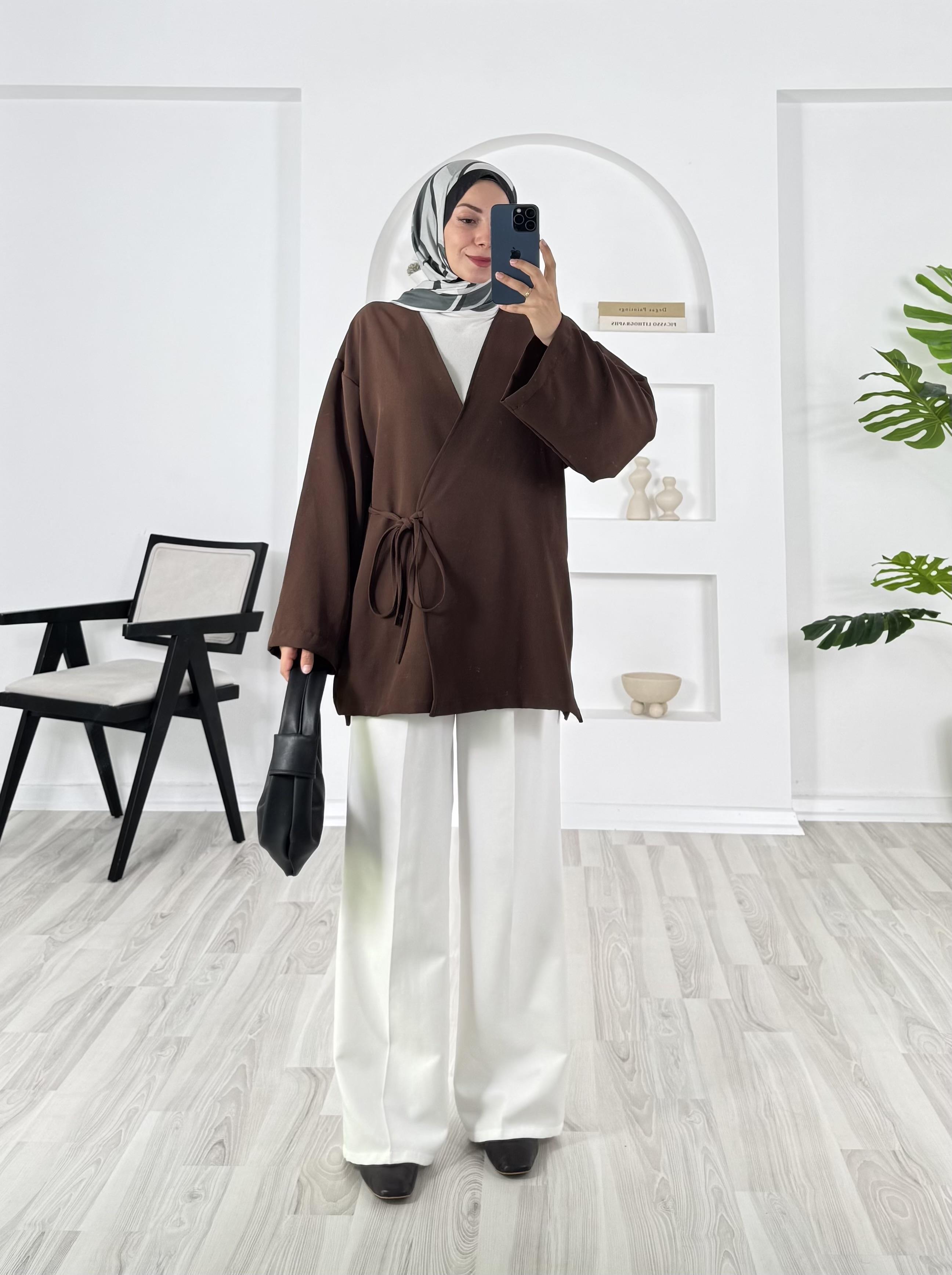 3260-dabıl krep kumaş-yanı yırtmaçlı kimono ceket-acı kahve (3260)