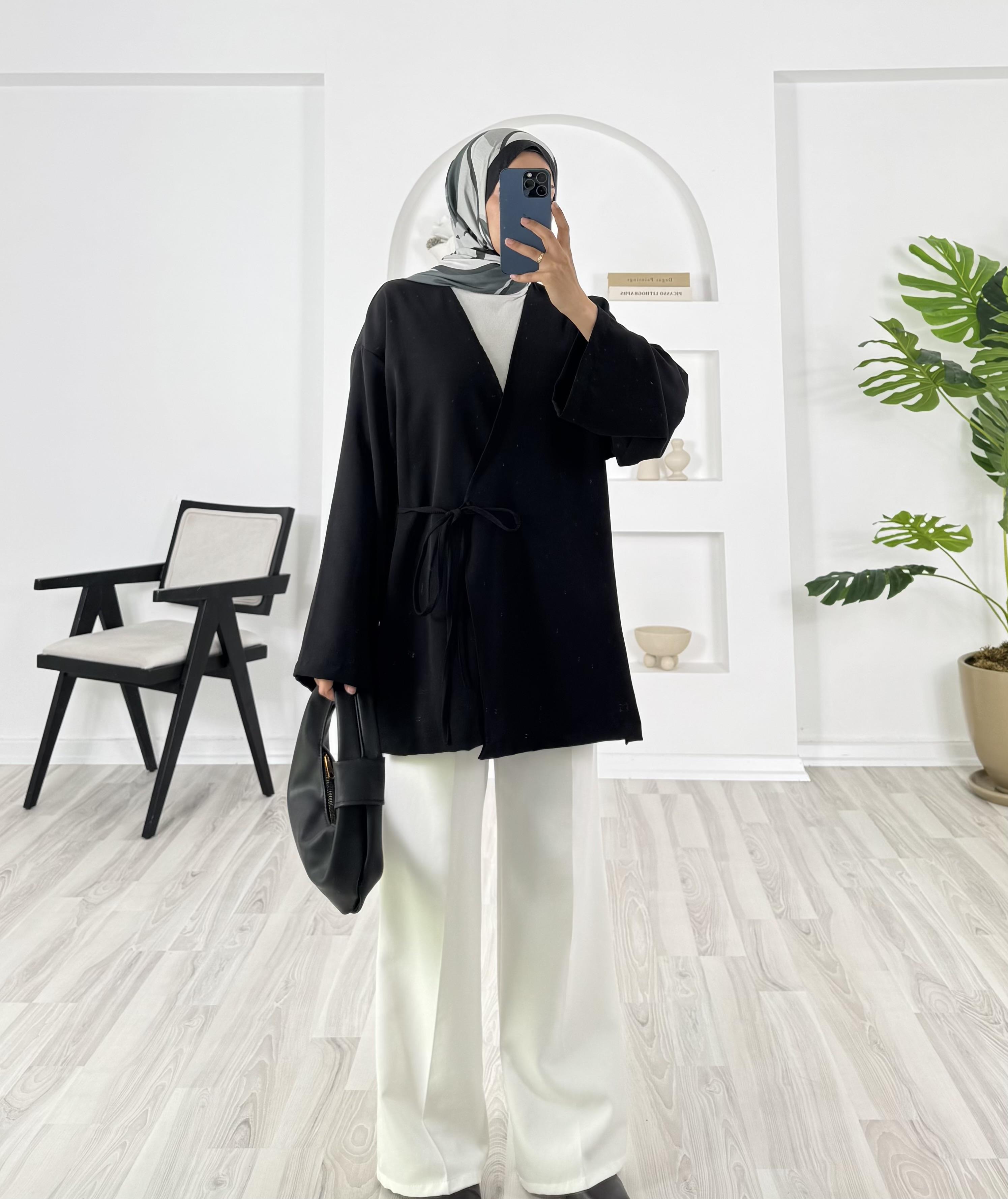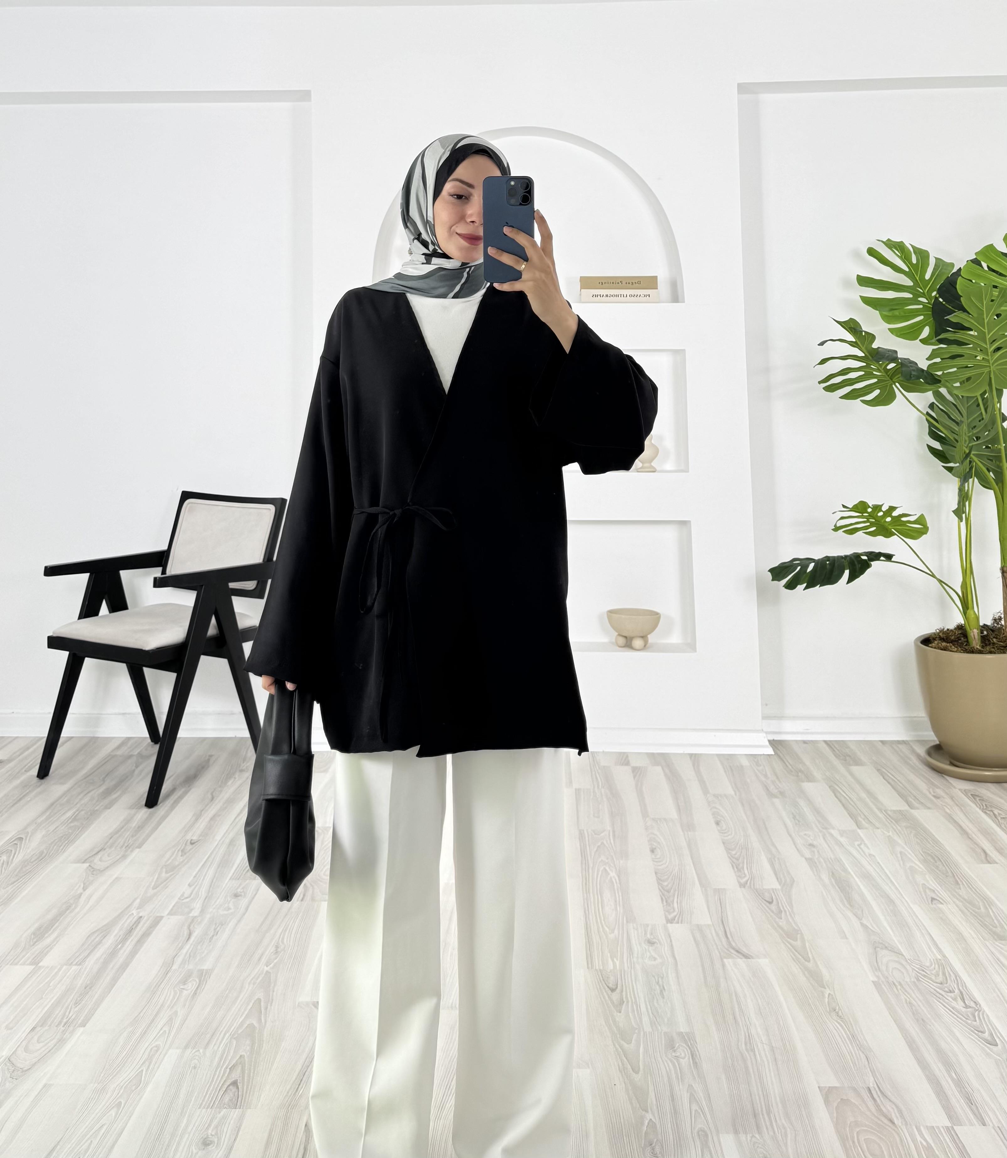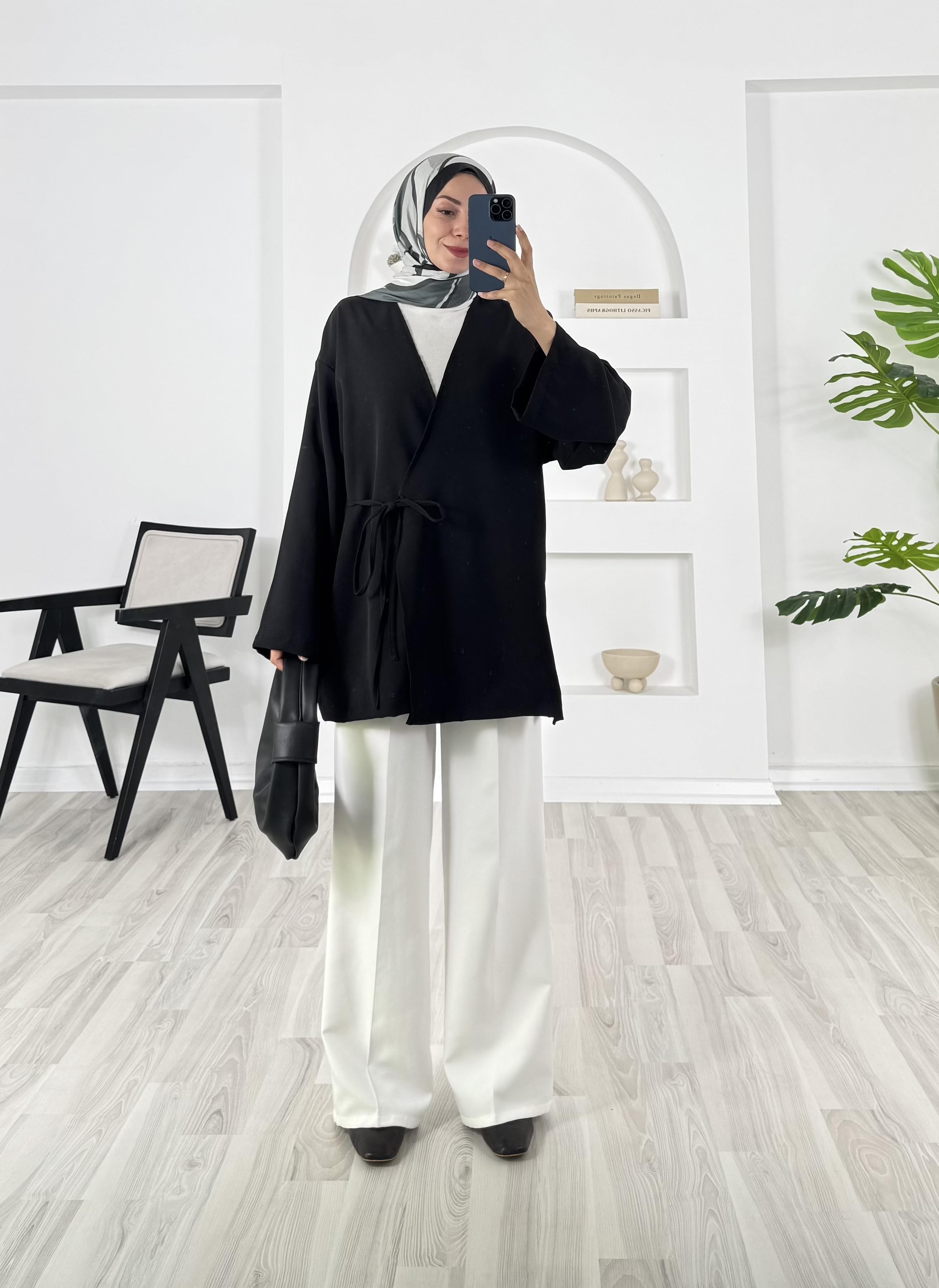 3260-dabıl krep kumaş-yanı yırtmaçlı kimono ceket-siyah (3260)