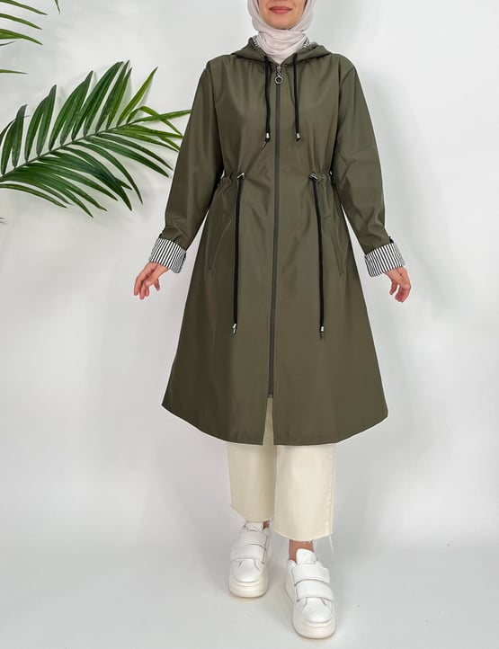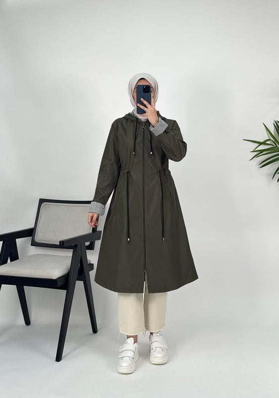 3268-bondit kumaş-içi desenli trenç-yeşil (3268)