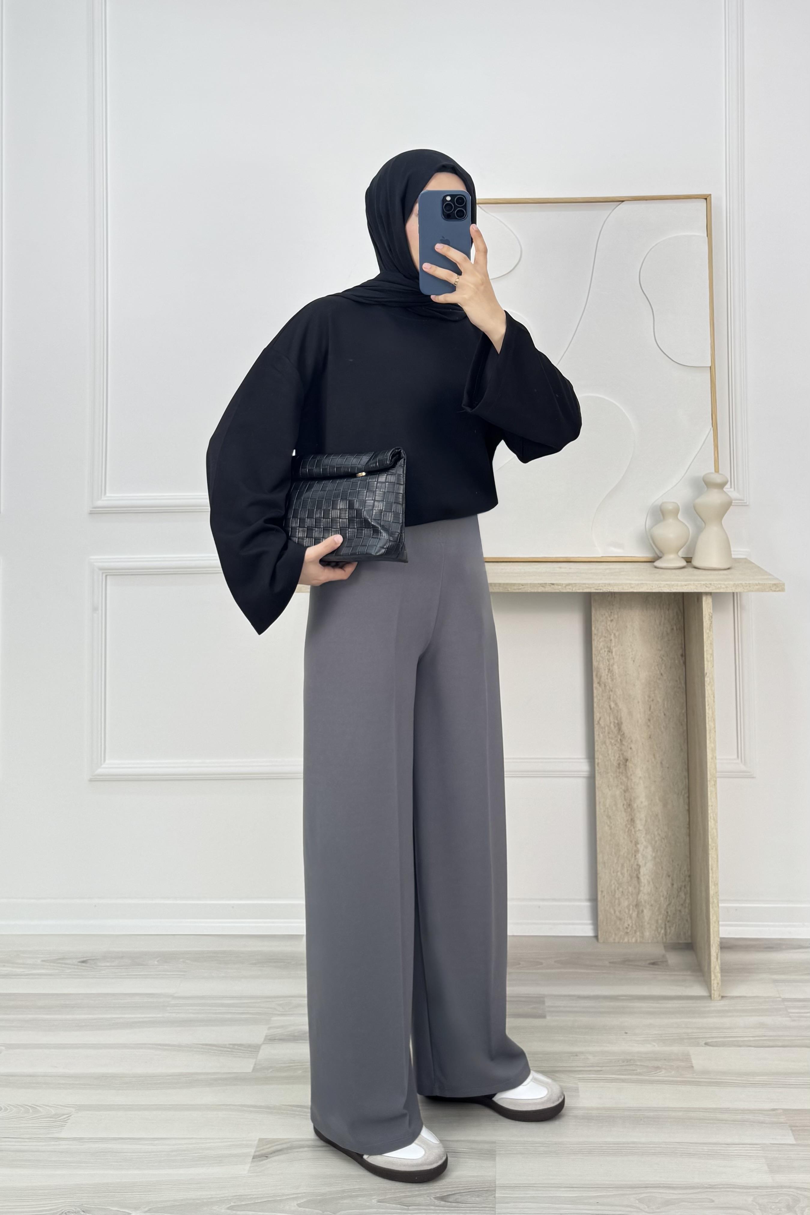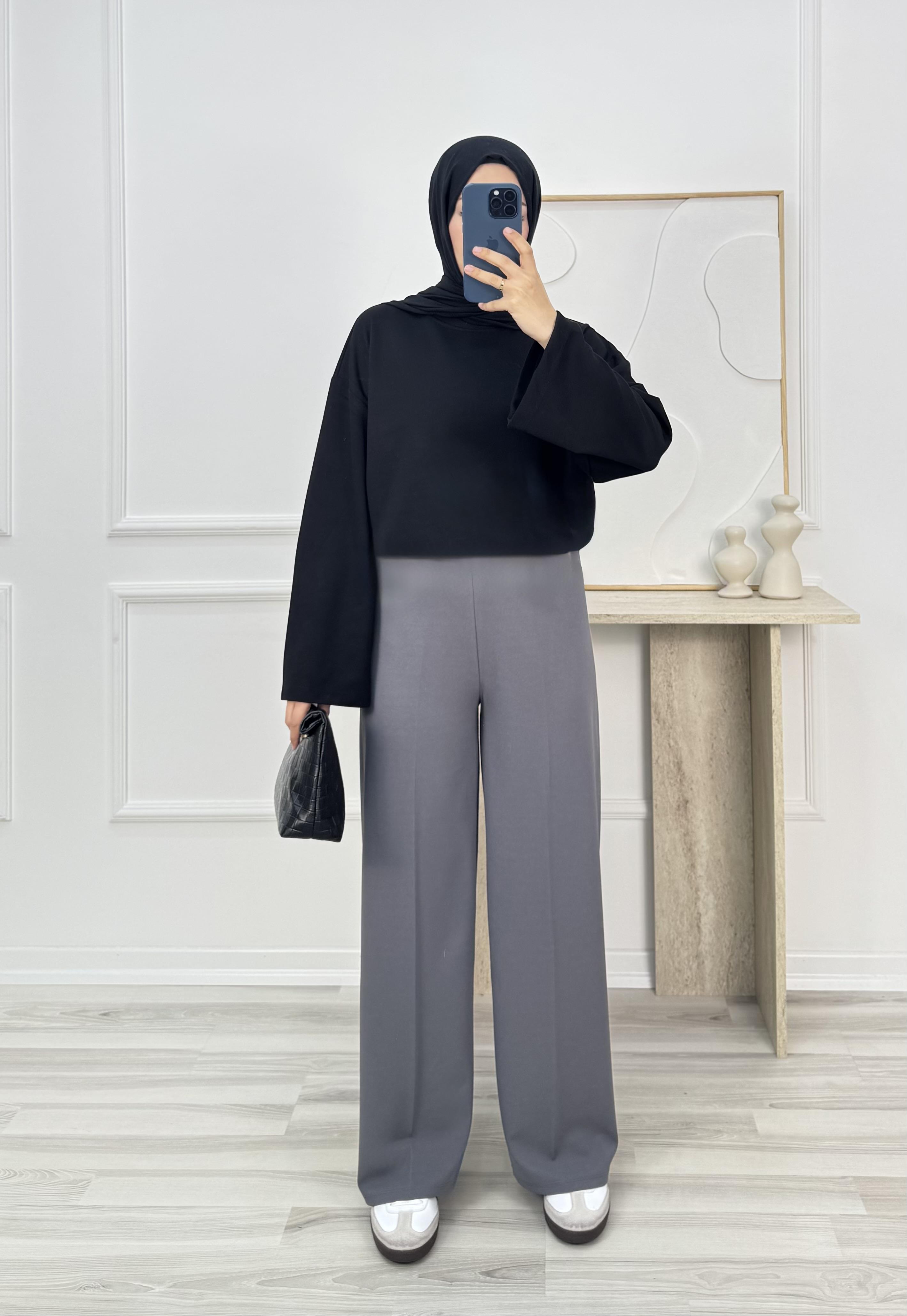 3278-sukuba krep kumaş-beli lastikli pantolon-açık gri (3278)