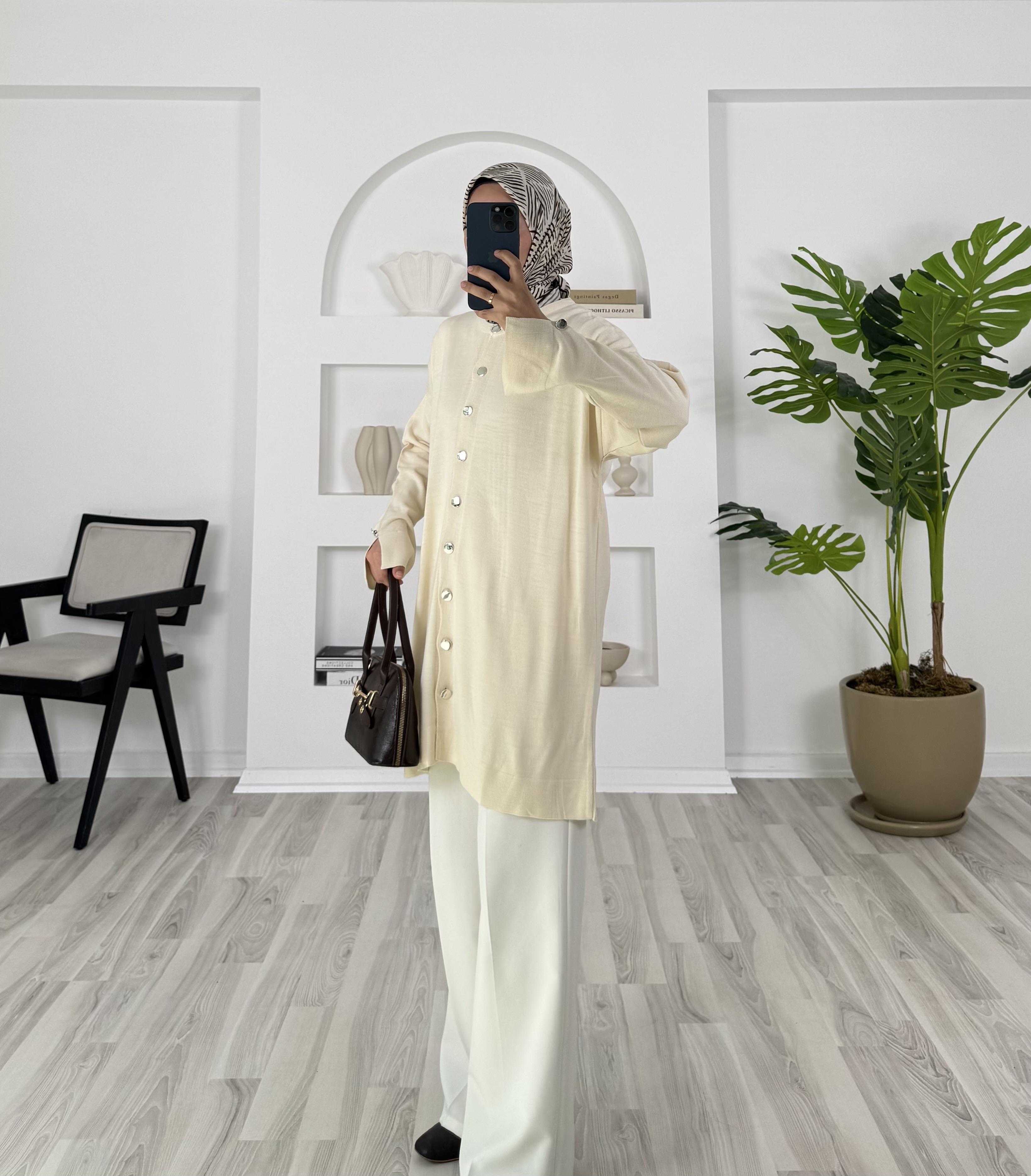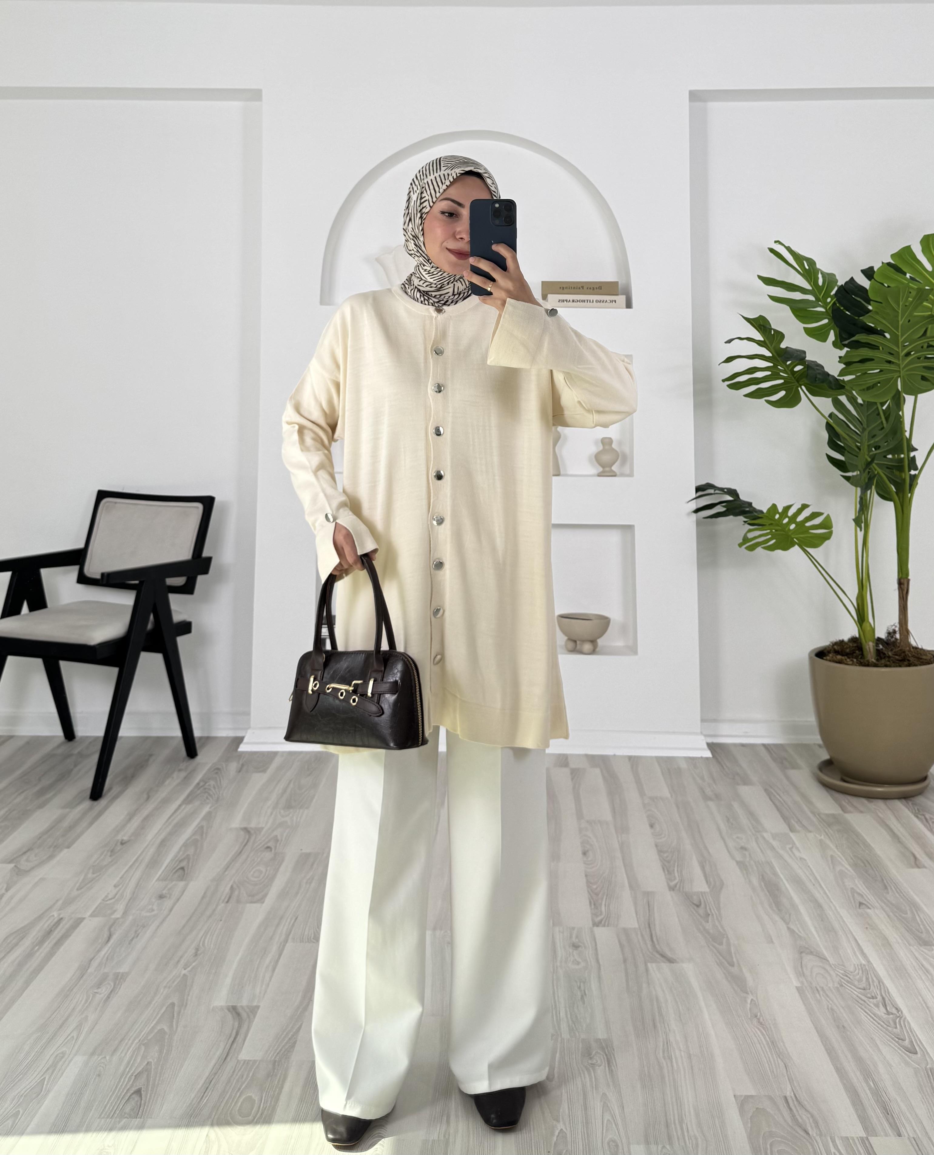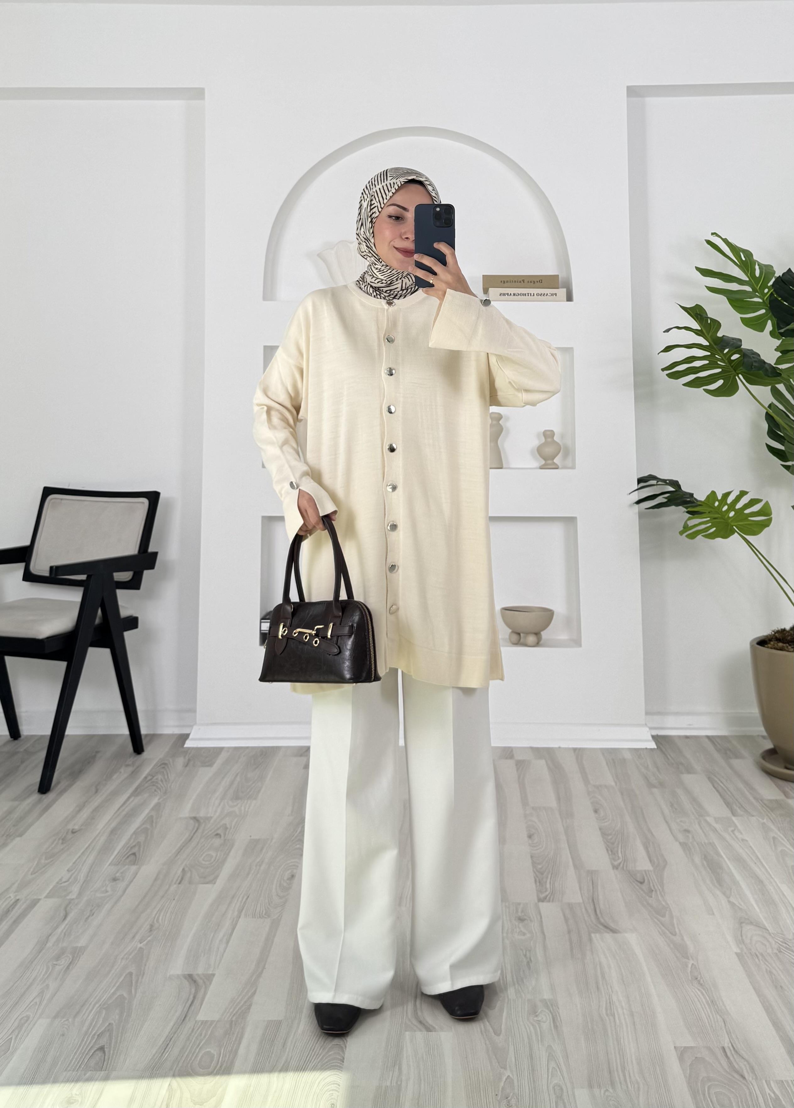 3427 -kolu dügme detalı triko hırka -beyaz (3427)