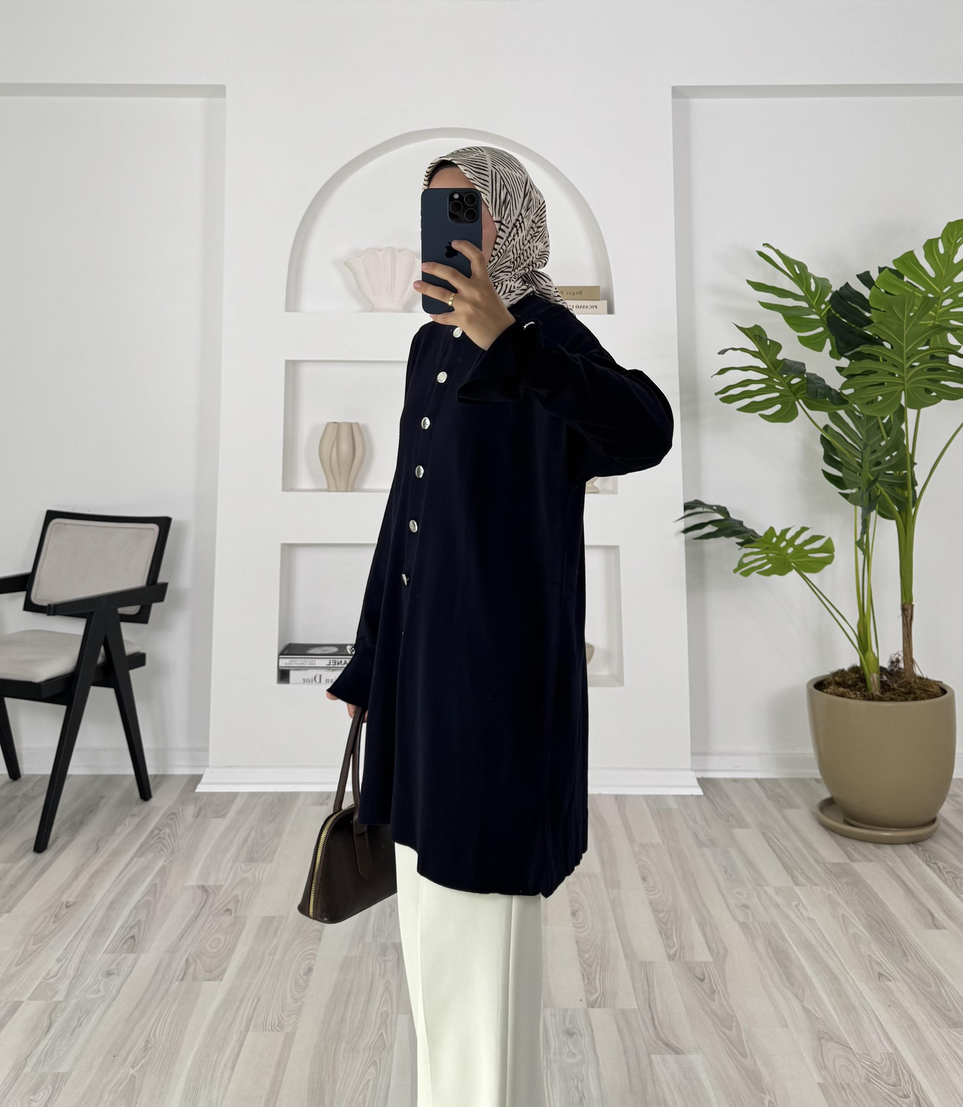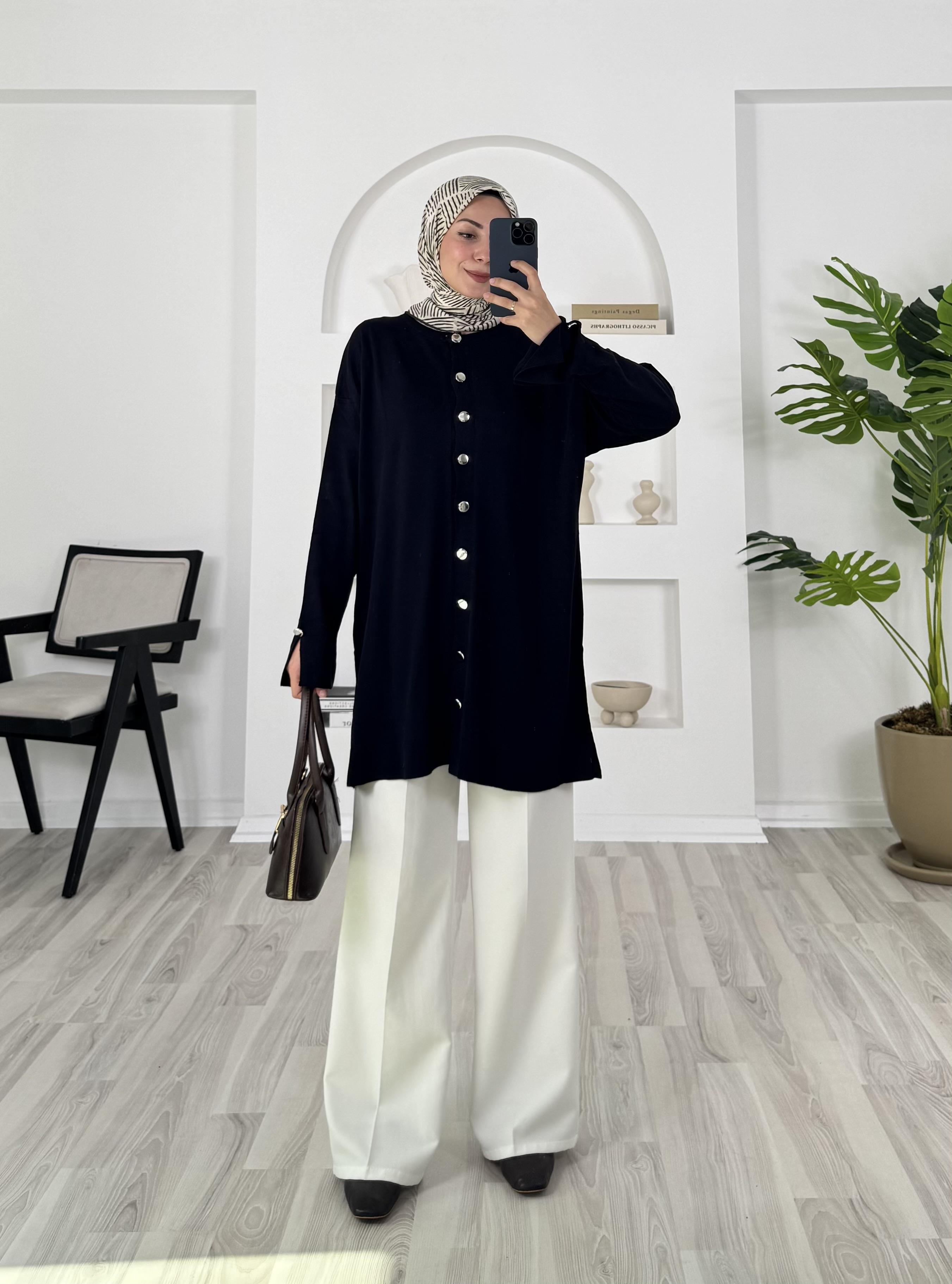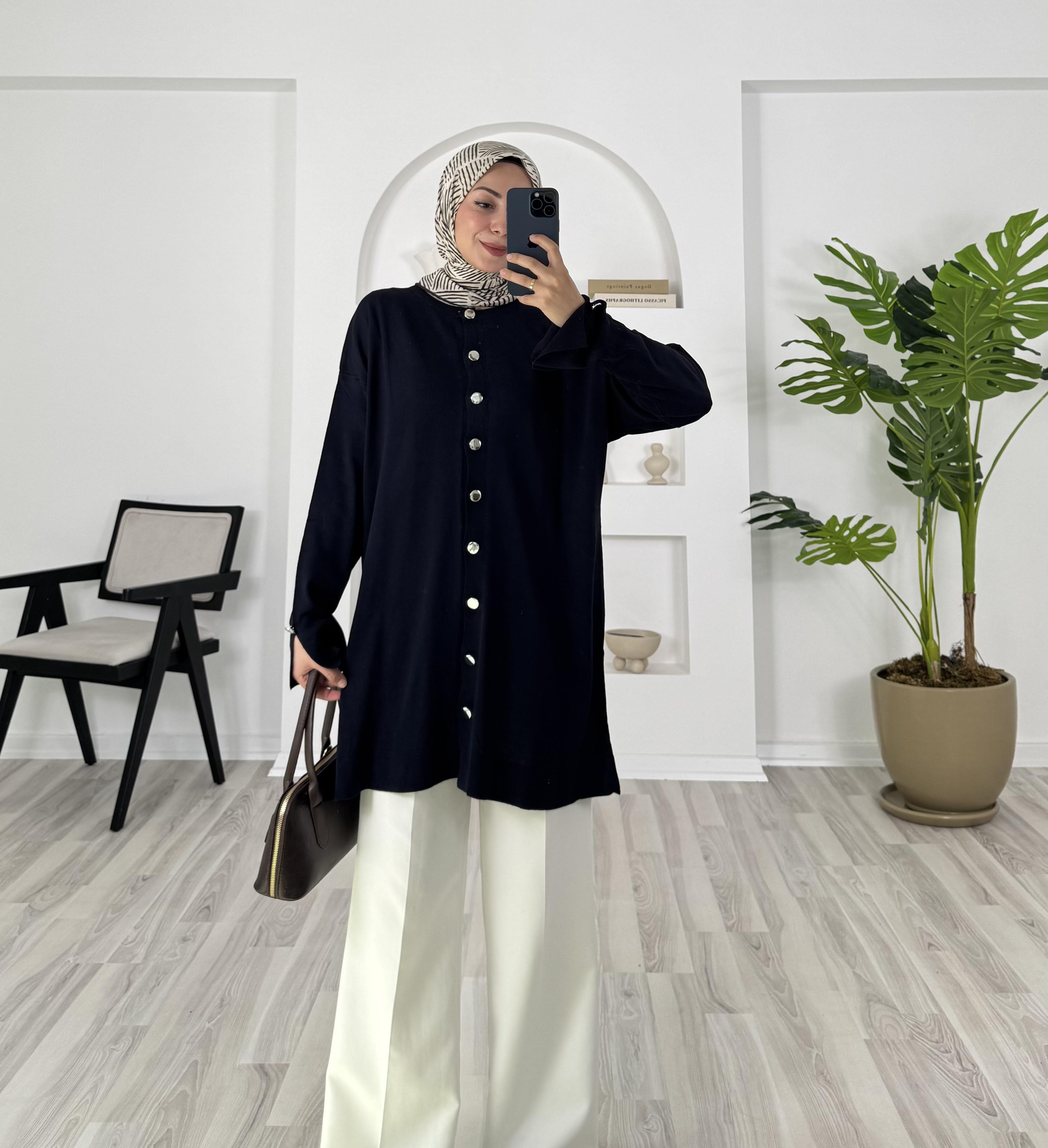 3427 -kolu dügme detalı triko hırka -lacivert (3427)