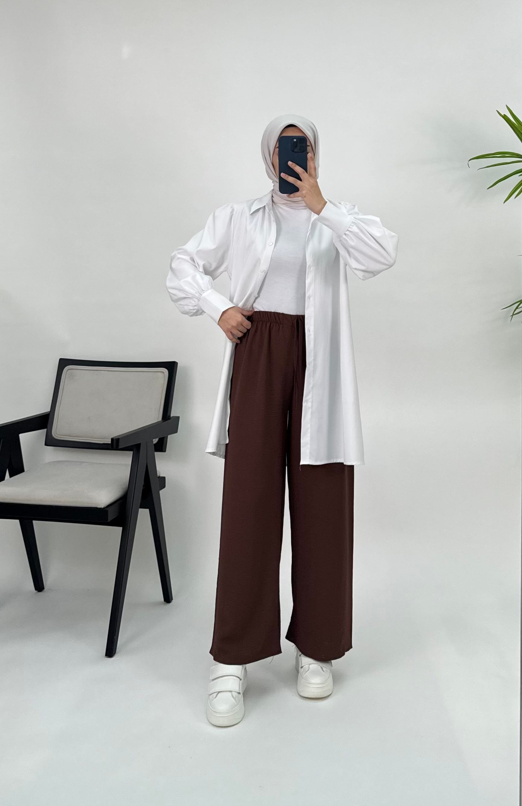 345-ayrobin kumaş-bel kısmı lastikli pantolon-acı kahve (345)