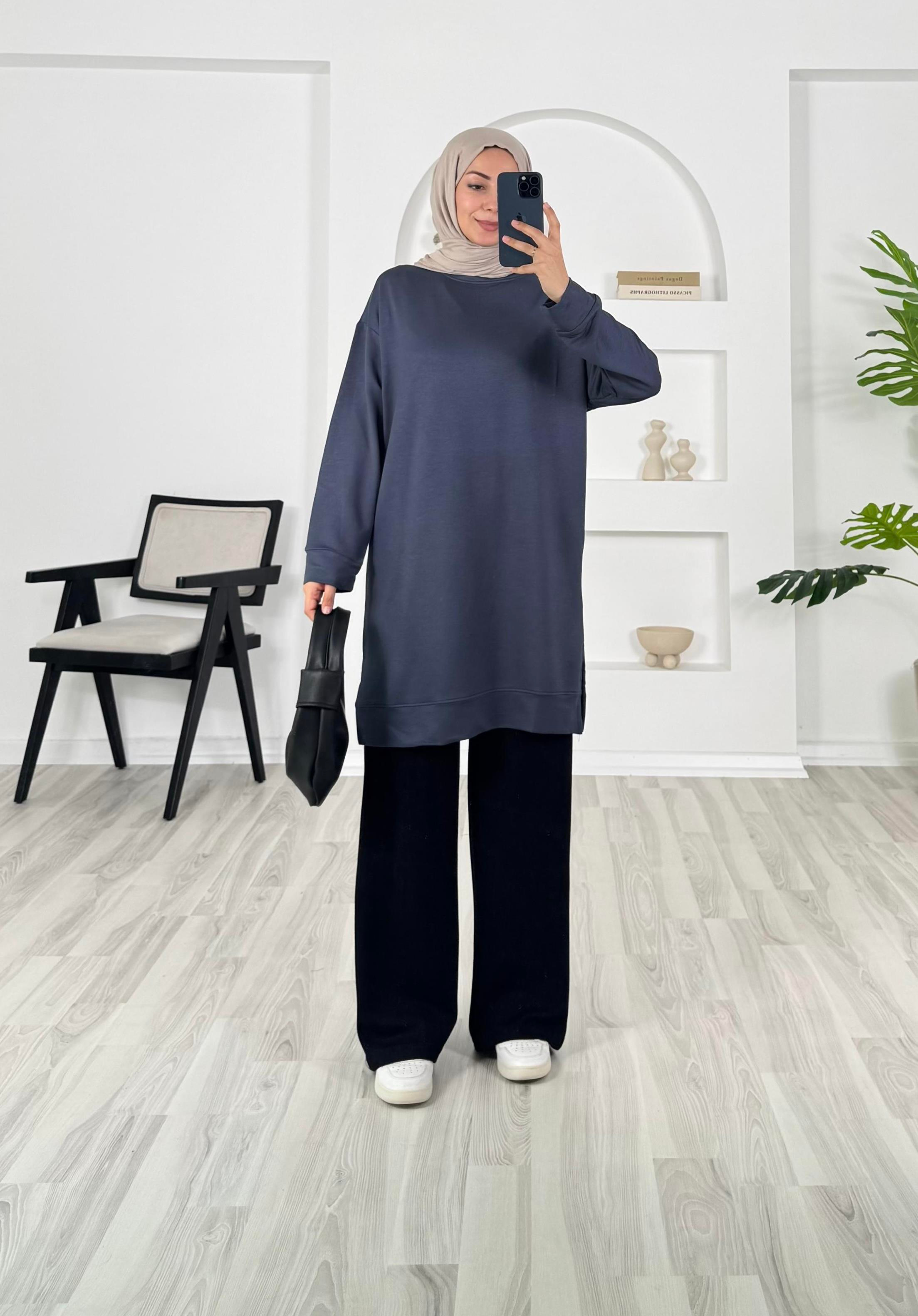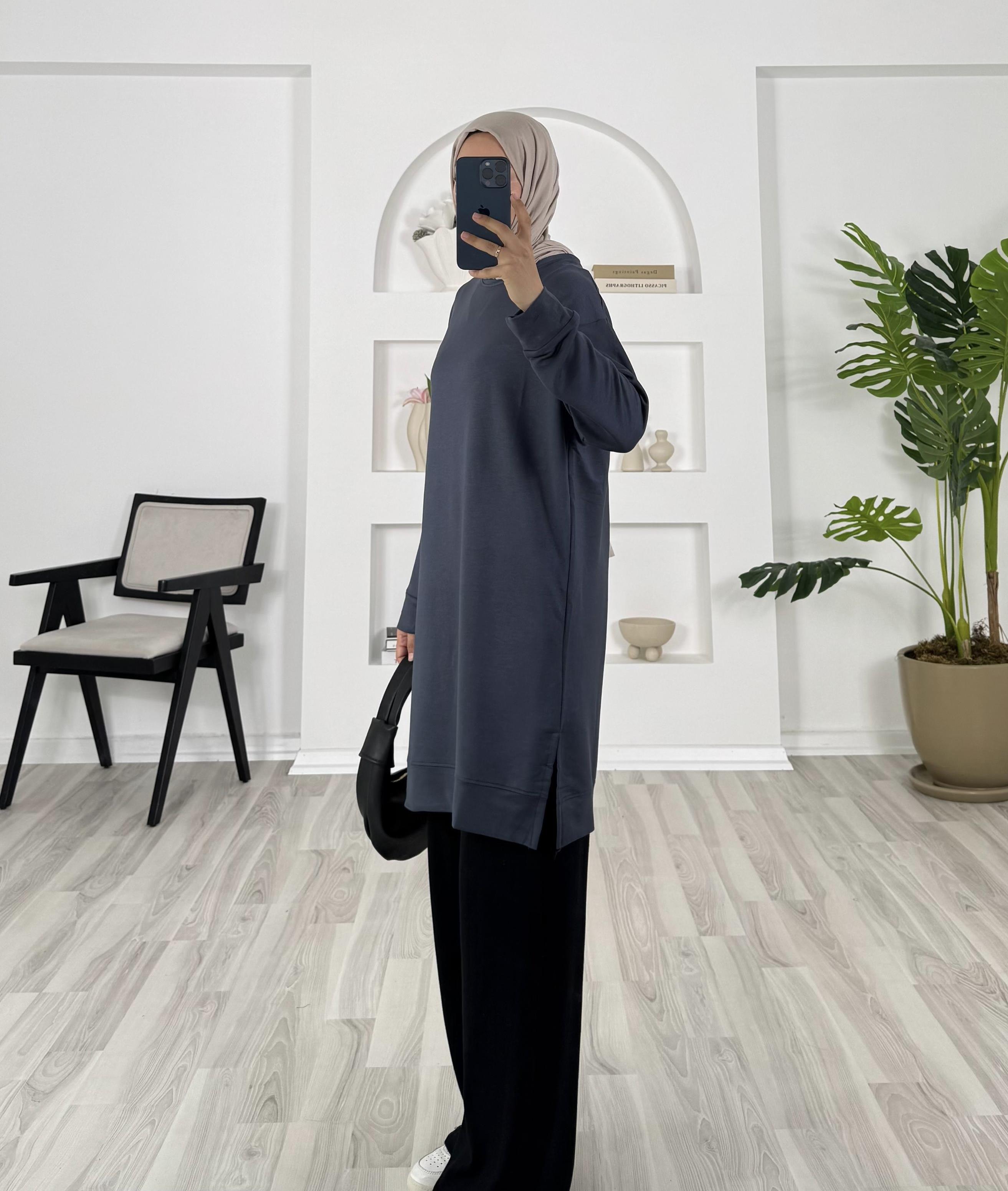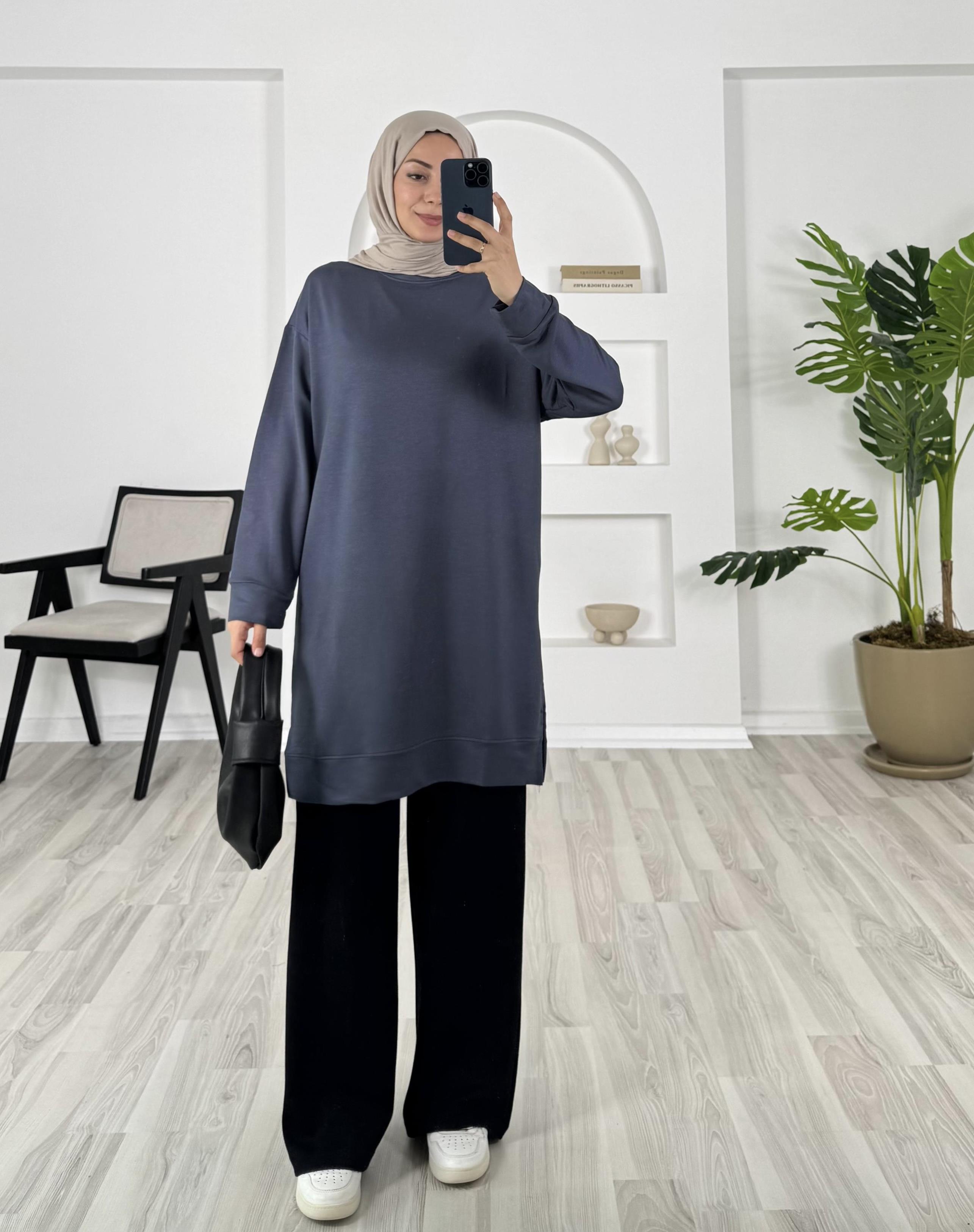 3622-kristal kumaş-yanları yırtmaçlı tunik-füme (3622)