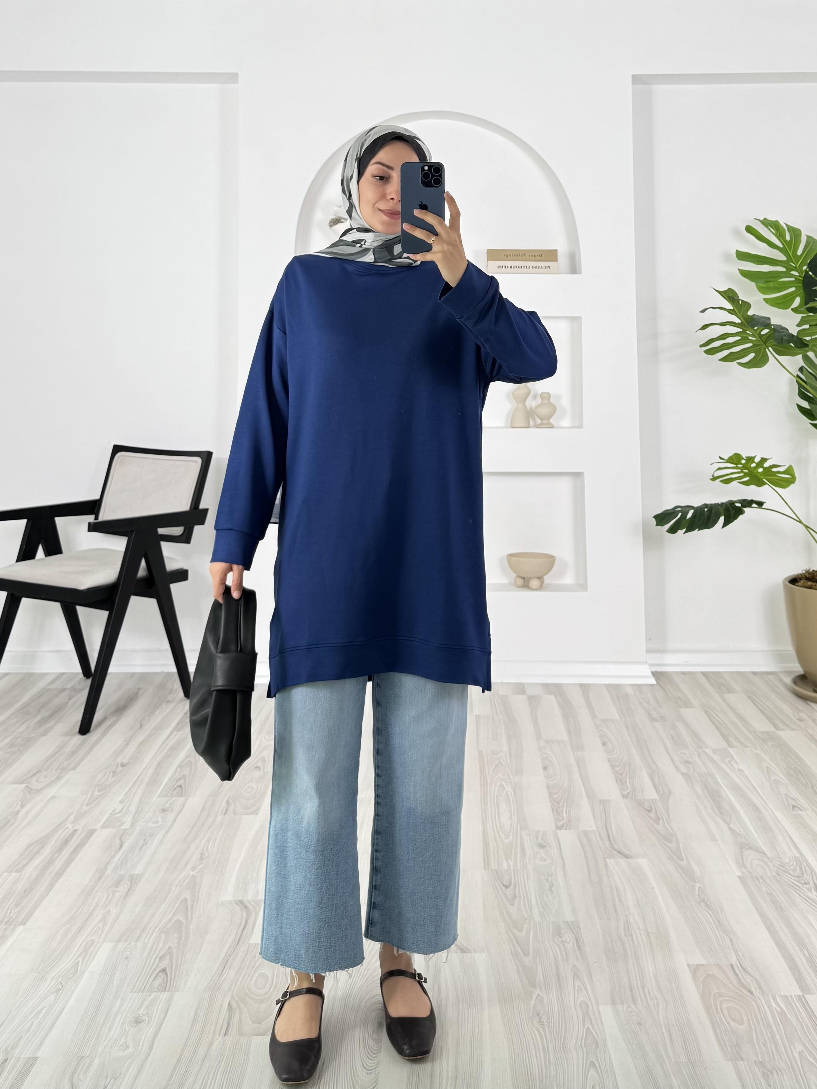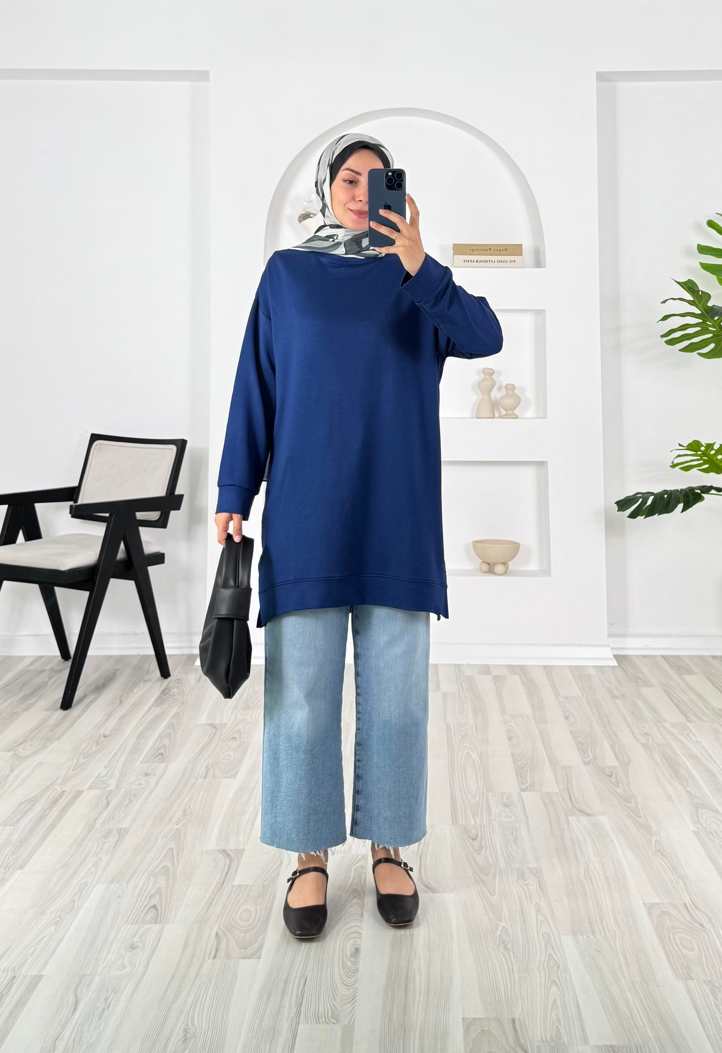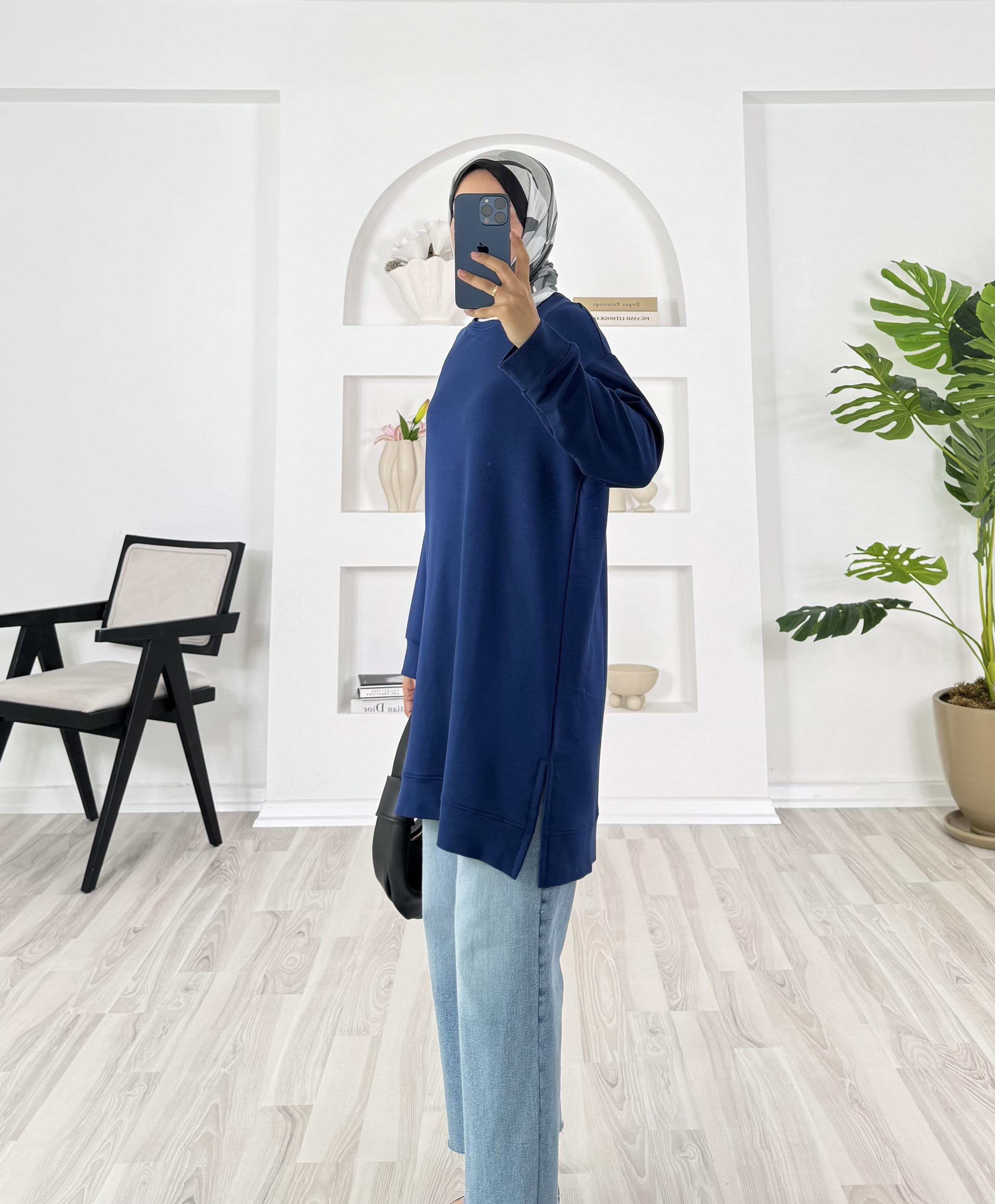 3622-kristal kumaş-yanları yırtmaçlı tunik-lacivert (3622)