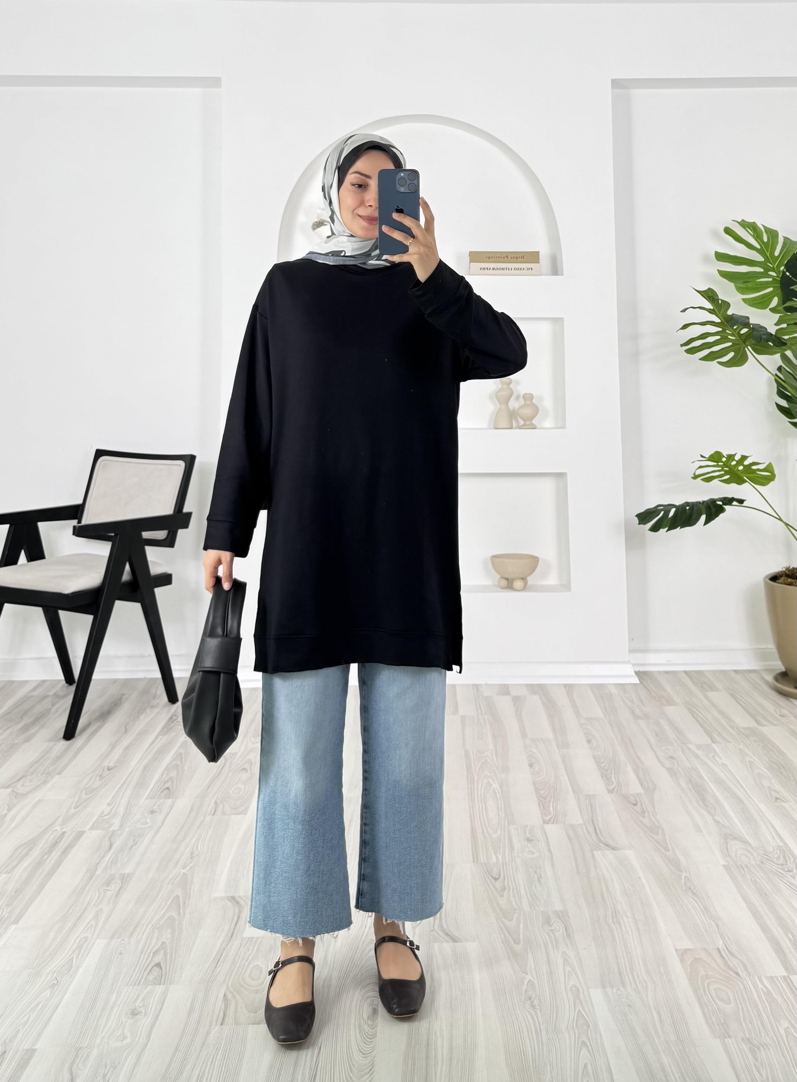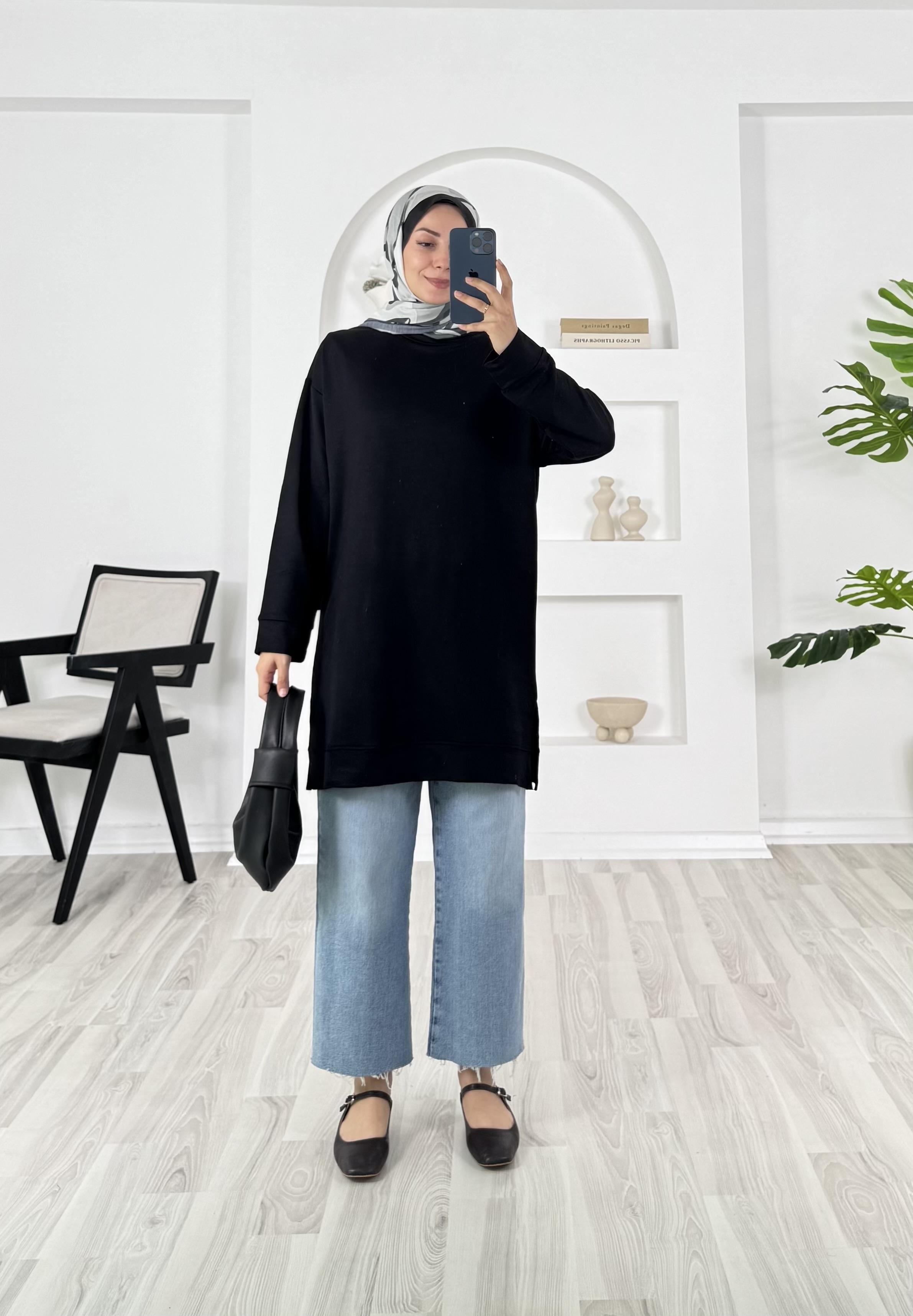 3622-kristal kumaş-yanları yırtmaçlı tunik-siyah (3622)