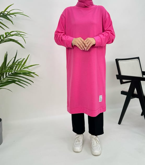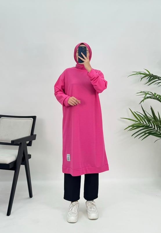 3871 K15+armalı diz altı tunik fuşya (3871)