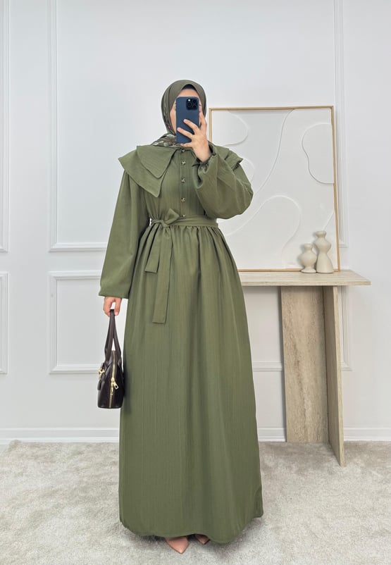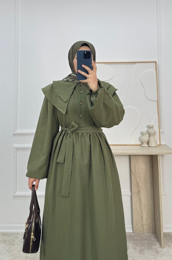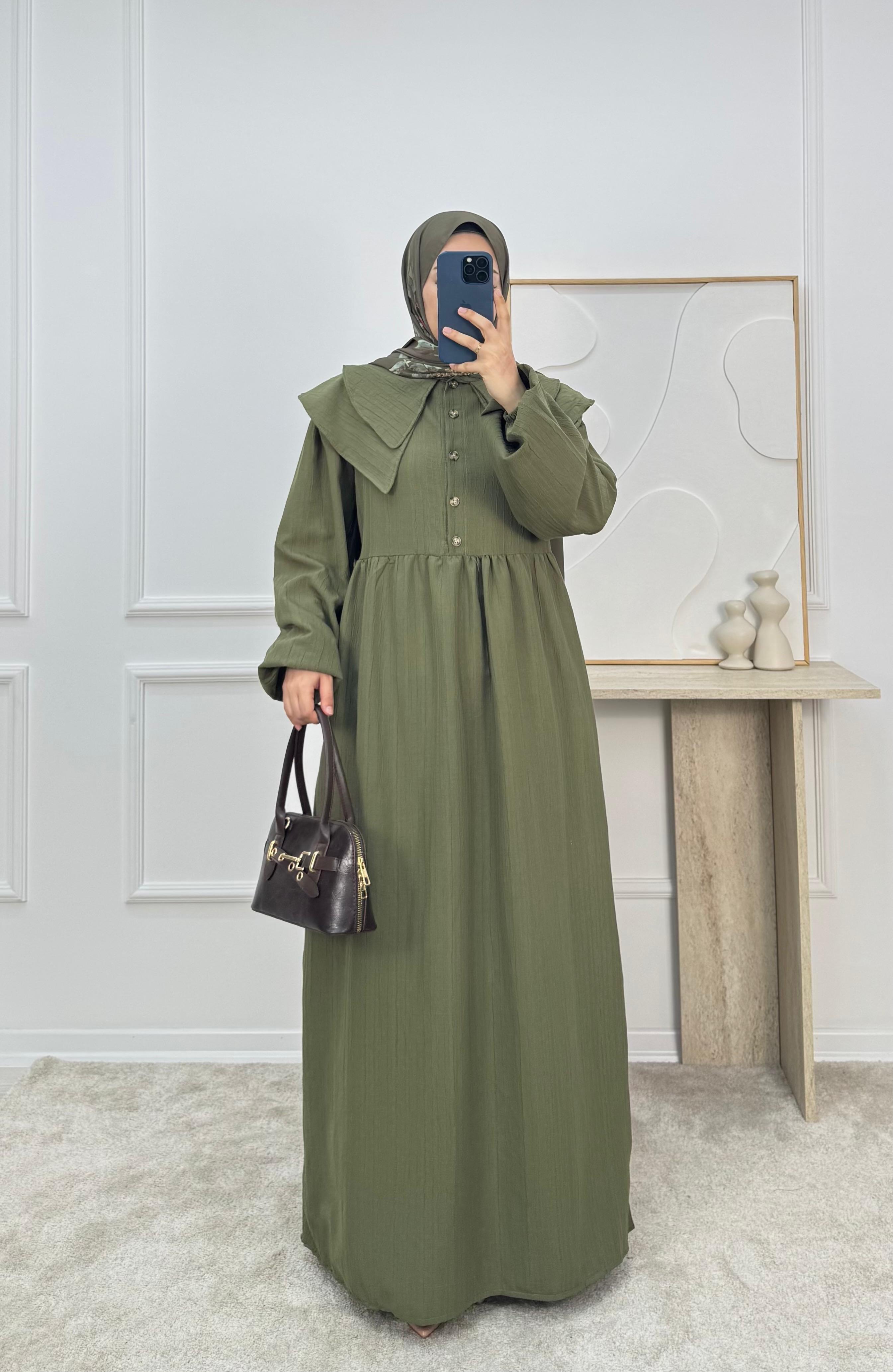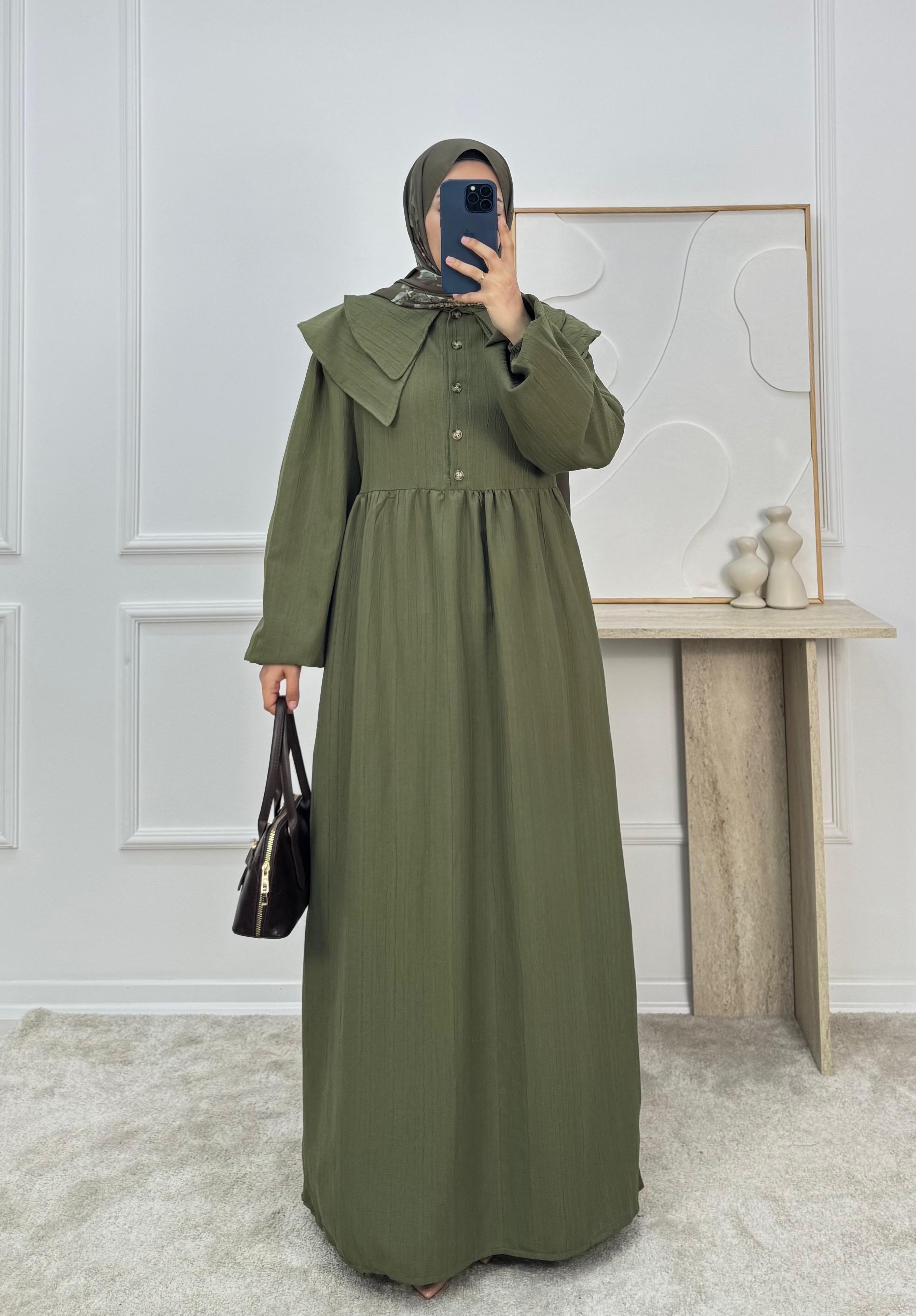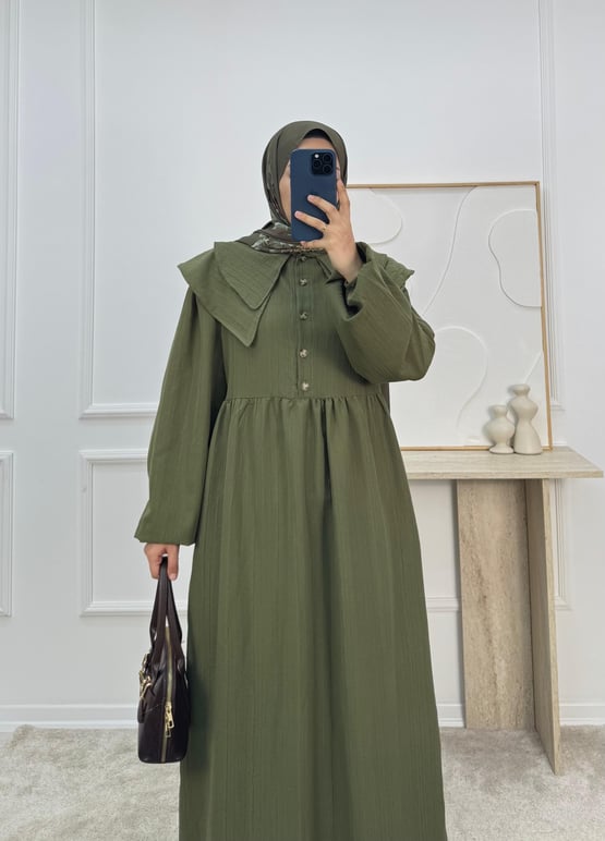4102-maya kumaş bebe yaka elbise-yeşil (4102)