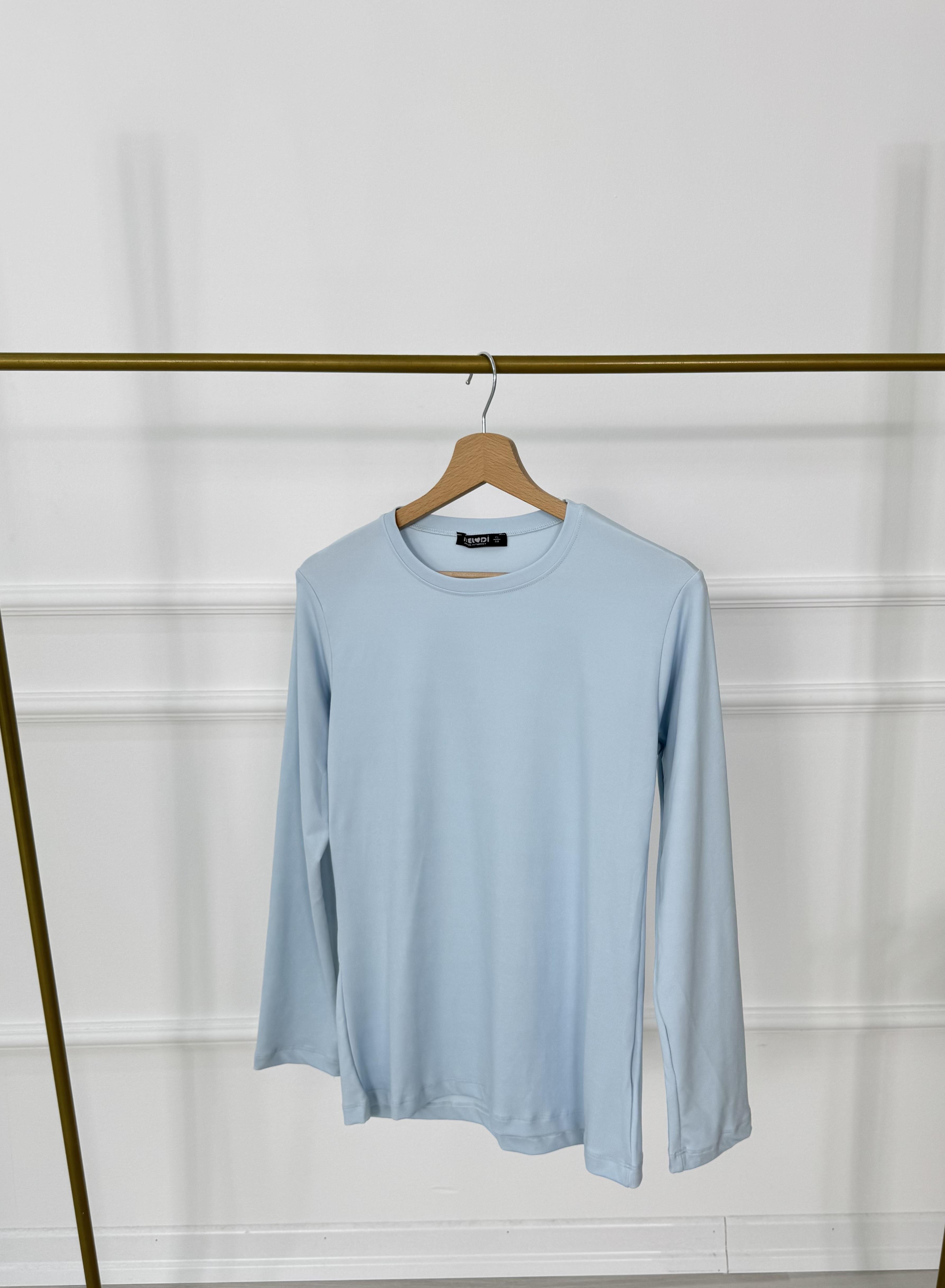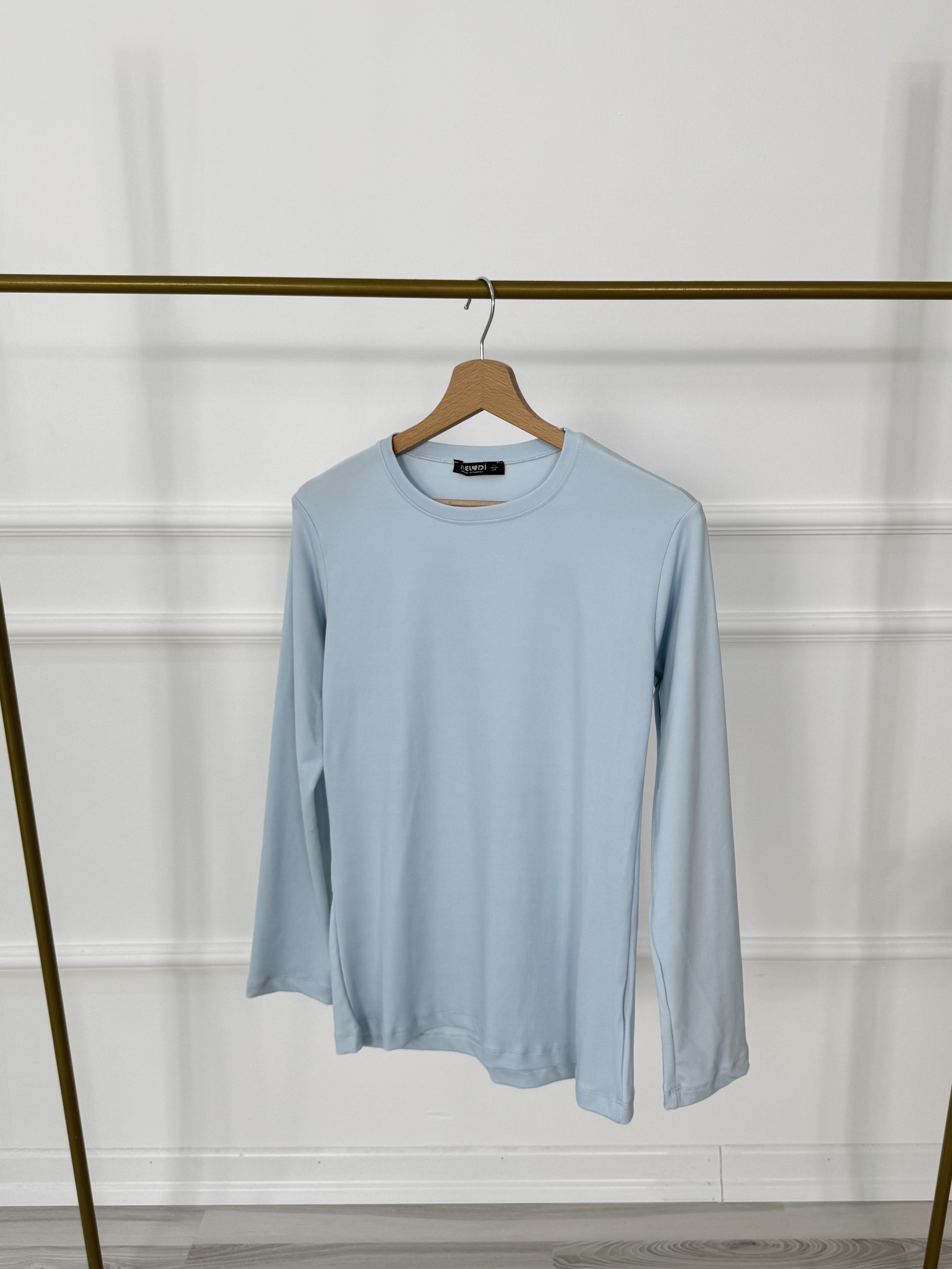 4205-polyemid kumaş-uzun kollu biye yakalı tunik-bebe mavisi (4205)
