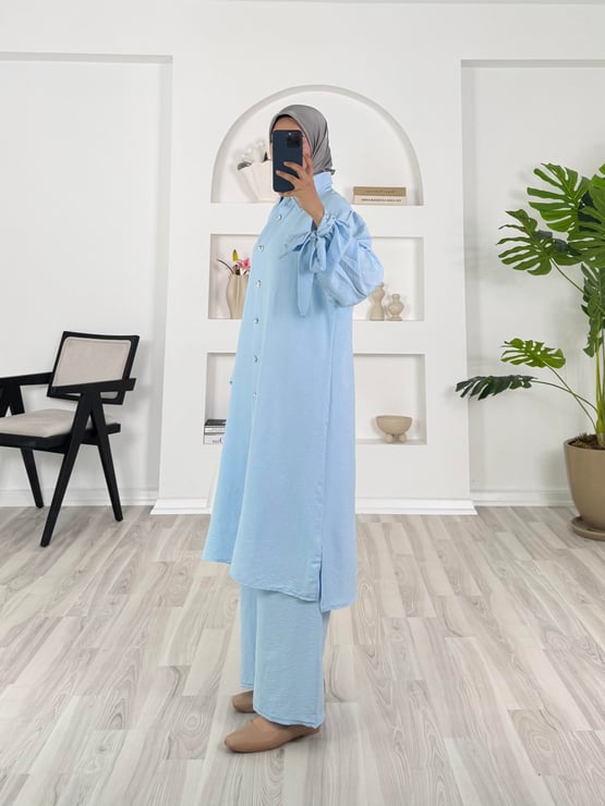 4269-pamuk ayrobin kumaş-yaka ve kol ucu boncuk detaylı pantolonlu takım-bebe mavisi (4269)